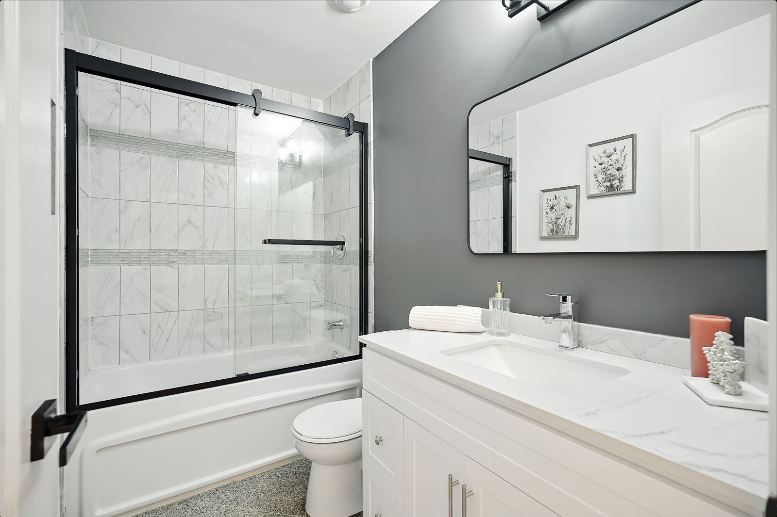 • Updated kitchen featuring quartz counters for a modern touch.
