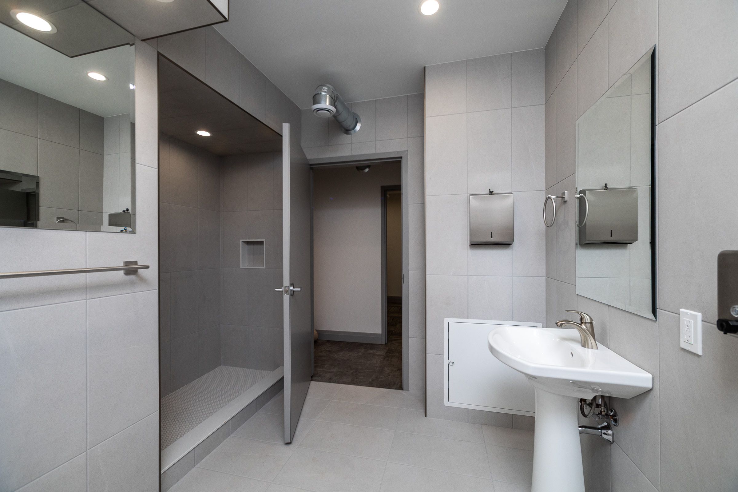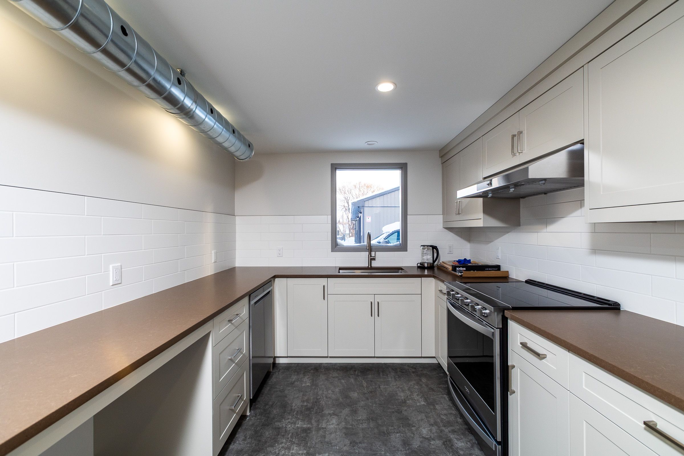 • Three private offices and a staff room with a full kitchen.