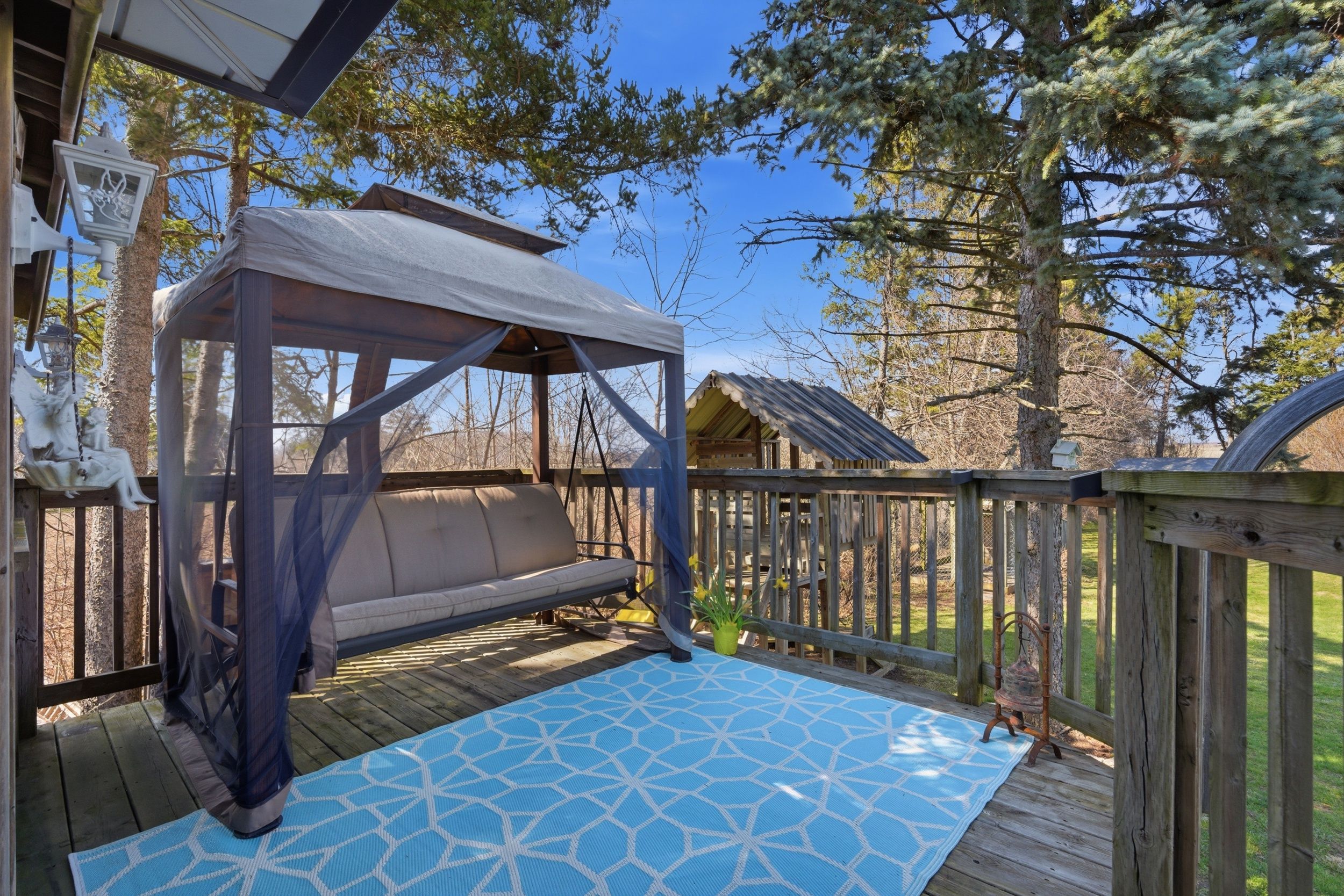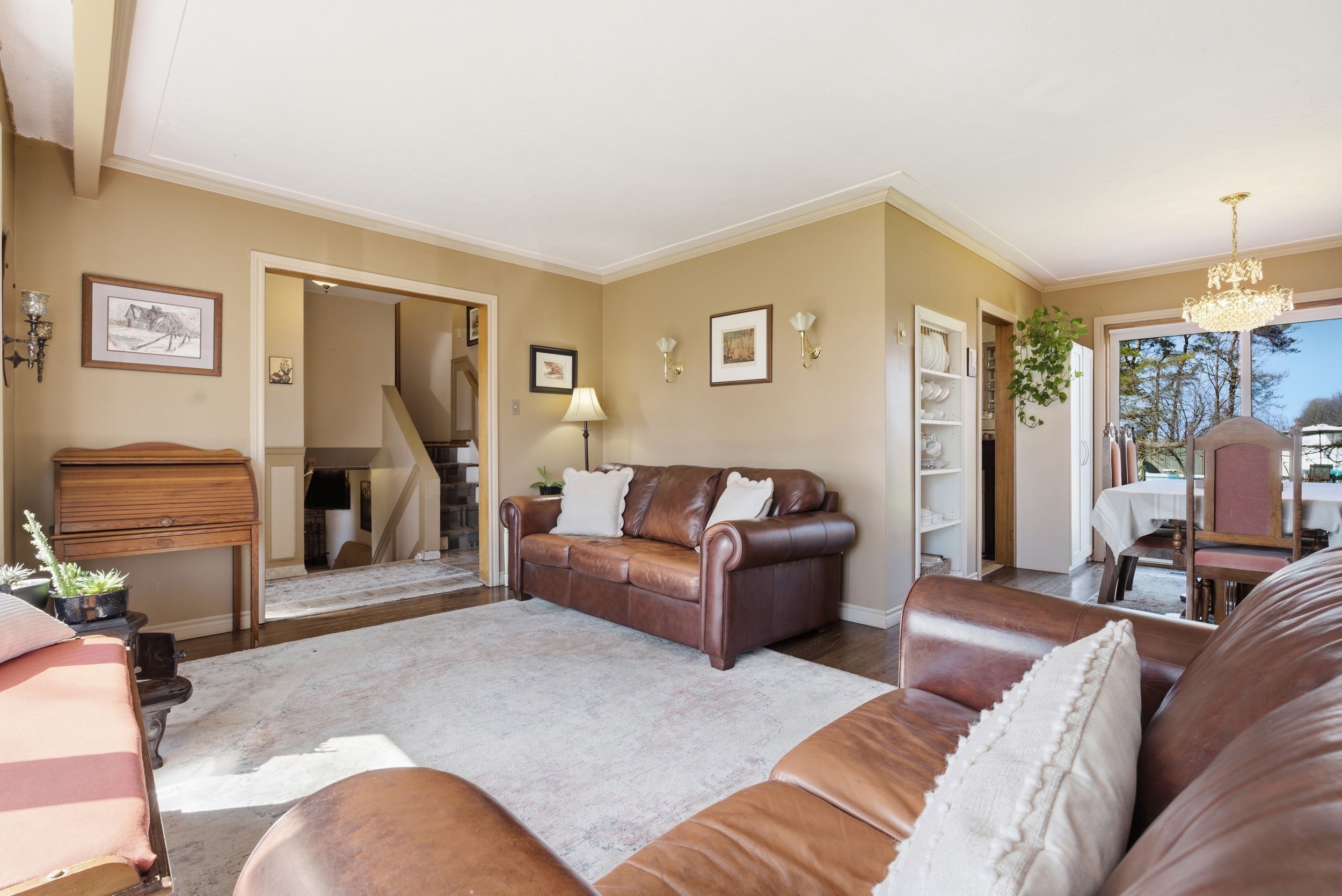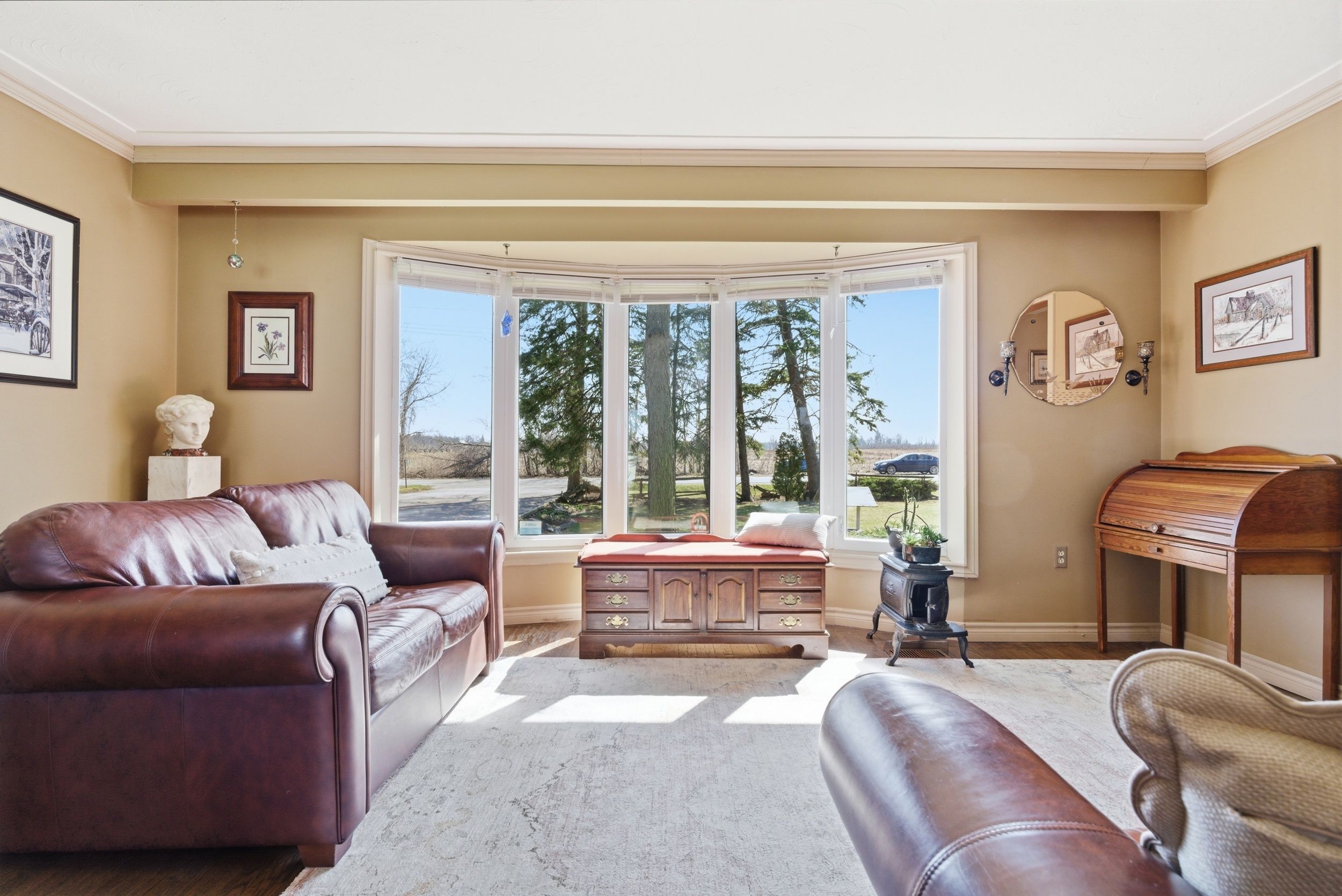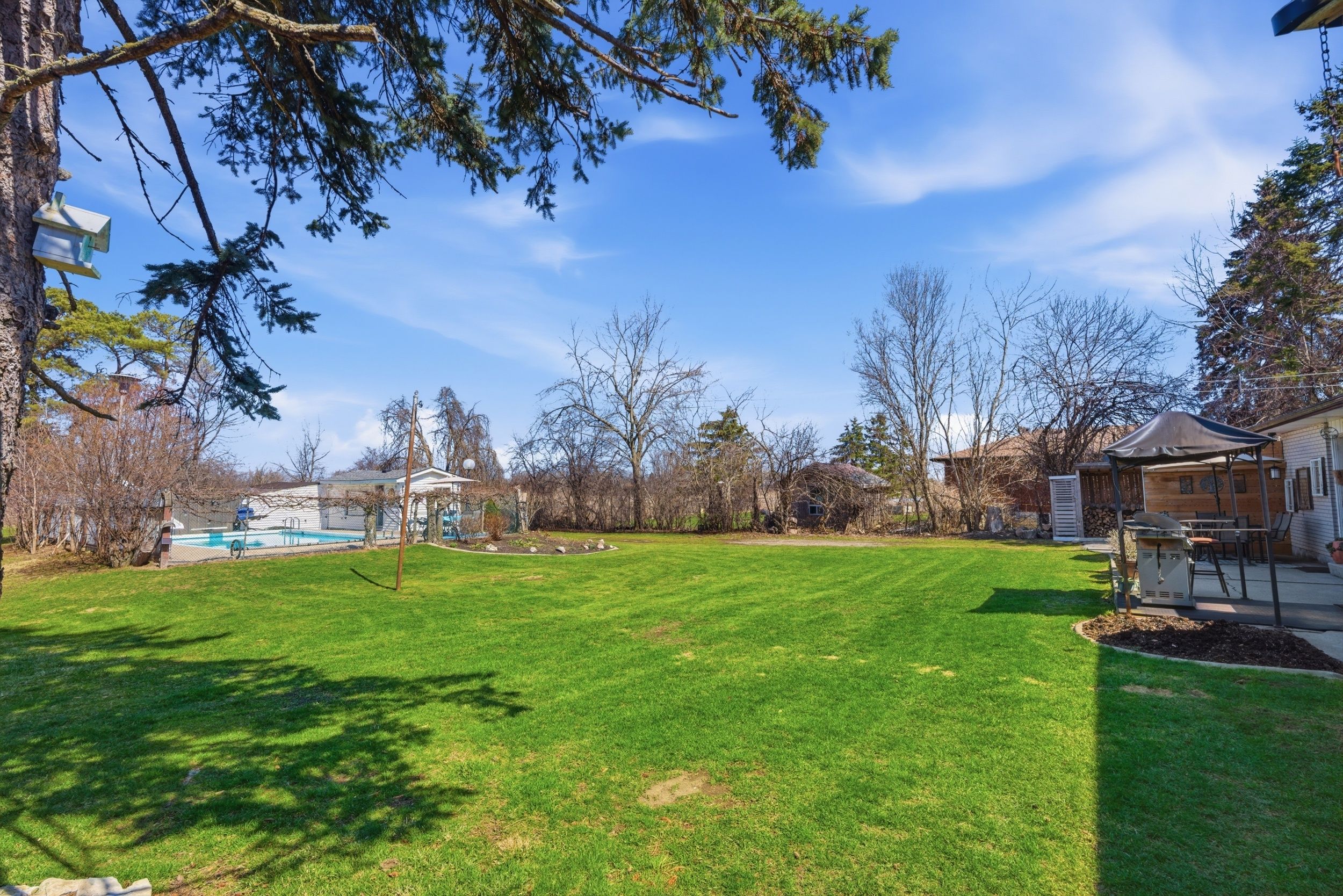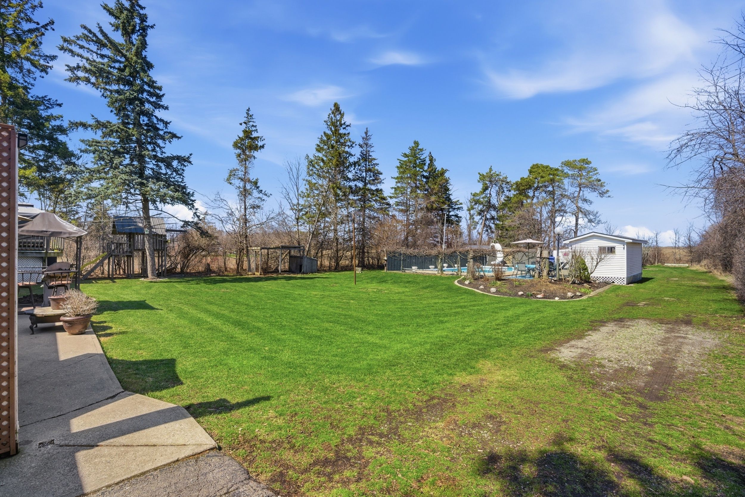 Tucked away in a peaceful rural setting, this well-maintained 3-bedroom, 1-bathroom home with garage sits on an impressive 100 x 300 ft lot, offering space, privacy, and endless potential. Proudly owned for over 30 years, the property has been carefully maintained throughout. Inside features original hardwood floors, a bright and functional layout, central a/c, central vacuum, and a cozy wood-burning fireplace in the basement. Other notable updates include a new roof on both the home and pool house (sept 2022), a new furnace (oct 2023), and newer windows throughout. The spacious primary bedroom offers a juliet balcony overlooking the expansive backyard. Outside, enjoy a paved driveway with basketball net, a large fenced in-ground pool, perennial gardens, children's play area, dog kennel, and a bonfire area at the rear. Drive-through access to the back of the property provides excellent storage flexibility. Conveniently located close to schools, shopping, and amenities, this is a rare opportunity to enjoy peaceful rural living with room to grow