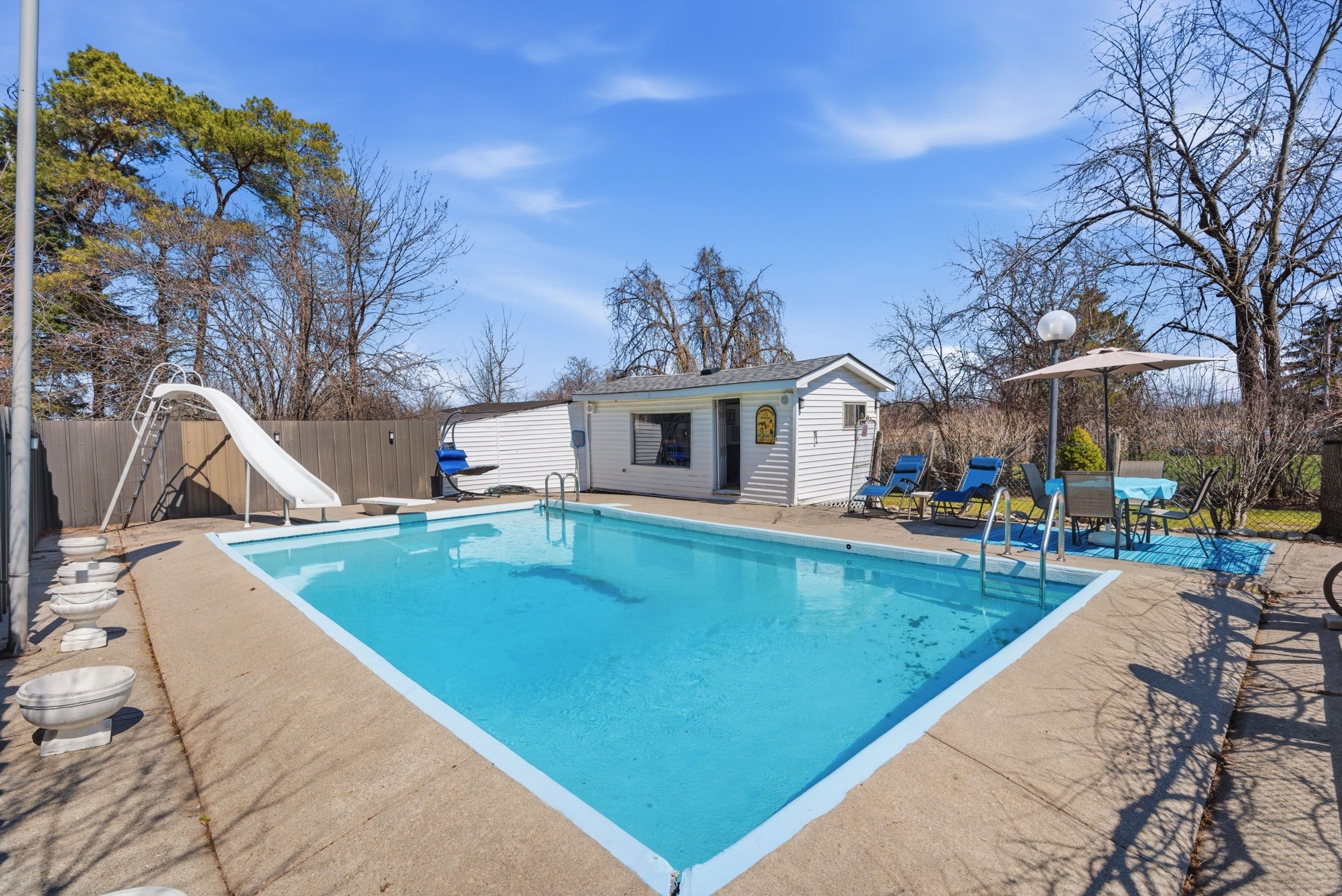 • Large fenced in-ground pool, perfect for summer fun and relaxation.