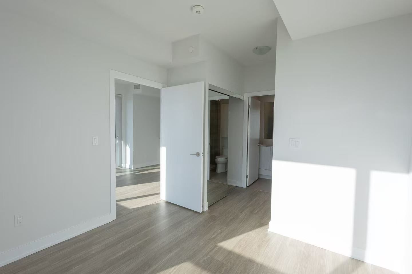 Almost brand new building! Shared two-bedroom, two-bathroom condo in the square one shopping centre area. This is a quiet corner unit filled with natural sunlight in a new 2025 building. The master bedroom, featuring a private ensuite bathroom, is for the tenant's exclusive use. The room comes fully furnished with a bed, mattress, desk, and chair. (photos were taken previously; the room is now furnished.)master bedroom: $1,500/month available now, second bedroom: $1,450/month available june 1. Key deposit: $200 conveniently located just an 8-minute walk to square one and close to all amenities, including transit, shops, and restaurants.