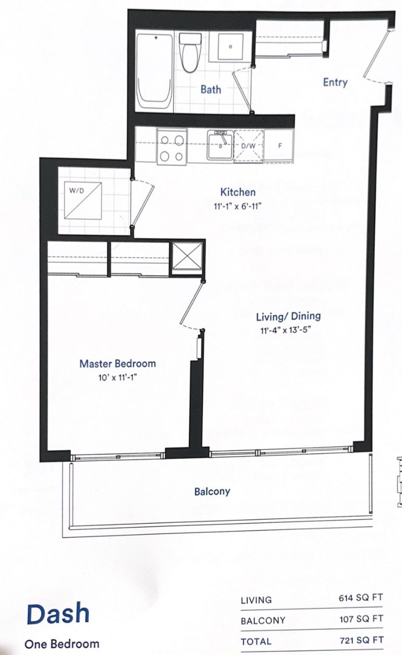Available january 1st 2026, this modern and spacious 1-bedroom, 1-bath condo offers 614 sq. Ft. Of interior space plus a generous 107 sq. Ft. Balcony. The layout is thoughtfully designed and filled with natural light, enhanced by 9-foot ceilings throughout. The open-concept kitchen flows seamlessly into an oversized living and dining area-ideal for entertaining or enjoying everyday living with ease. The bedroom is impressively sized and sits next to a full 4-piece bathroom, with in-suite laundry for added convenience. One parking space is included. Tenant to pay utilities.