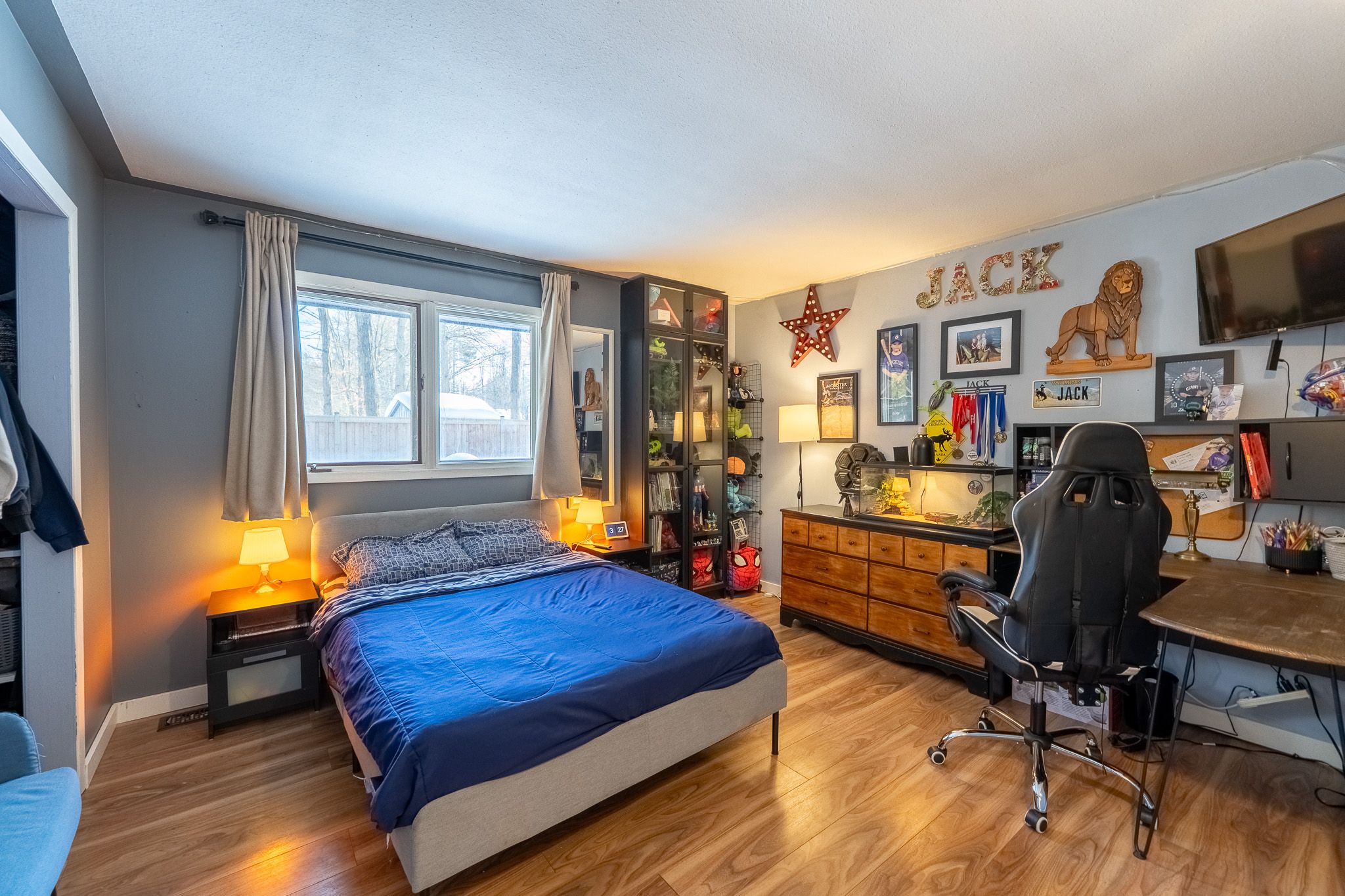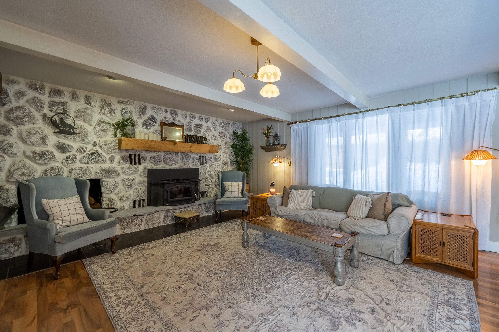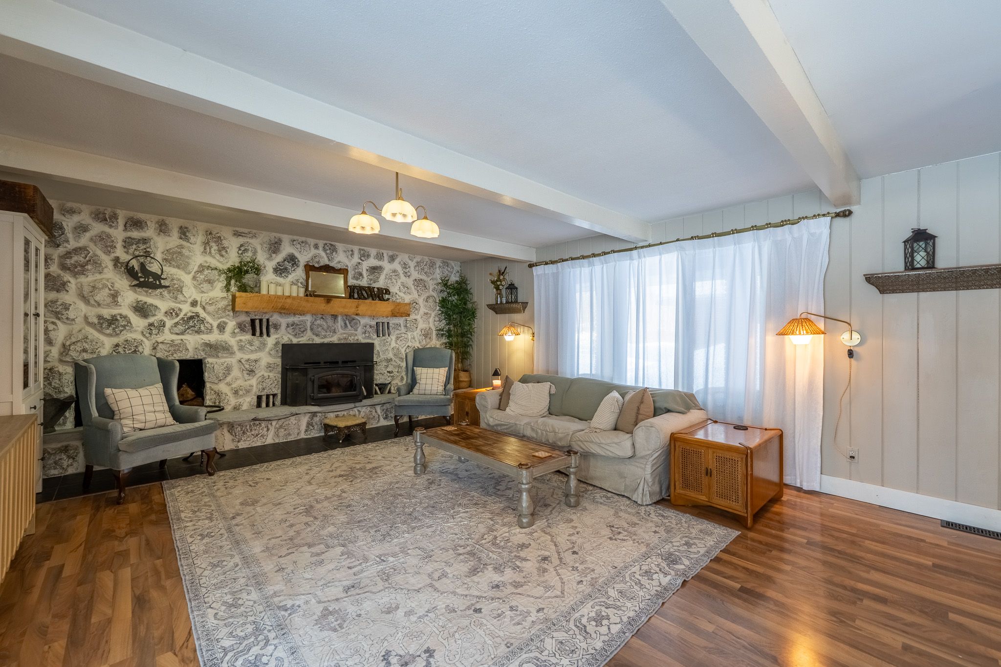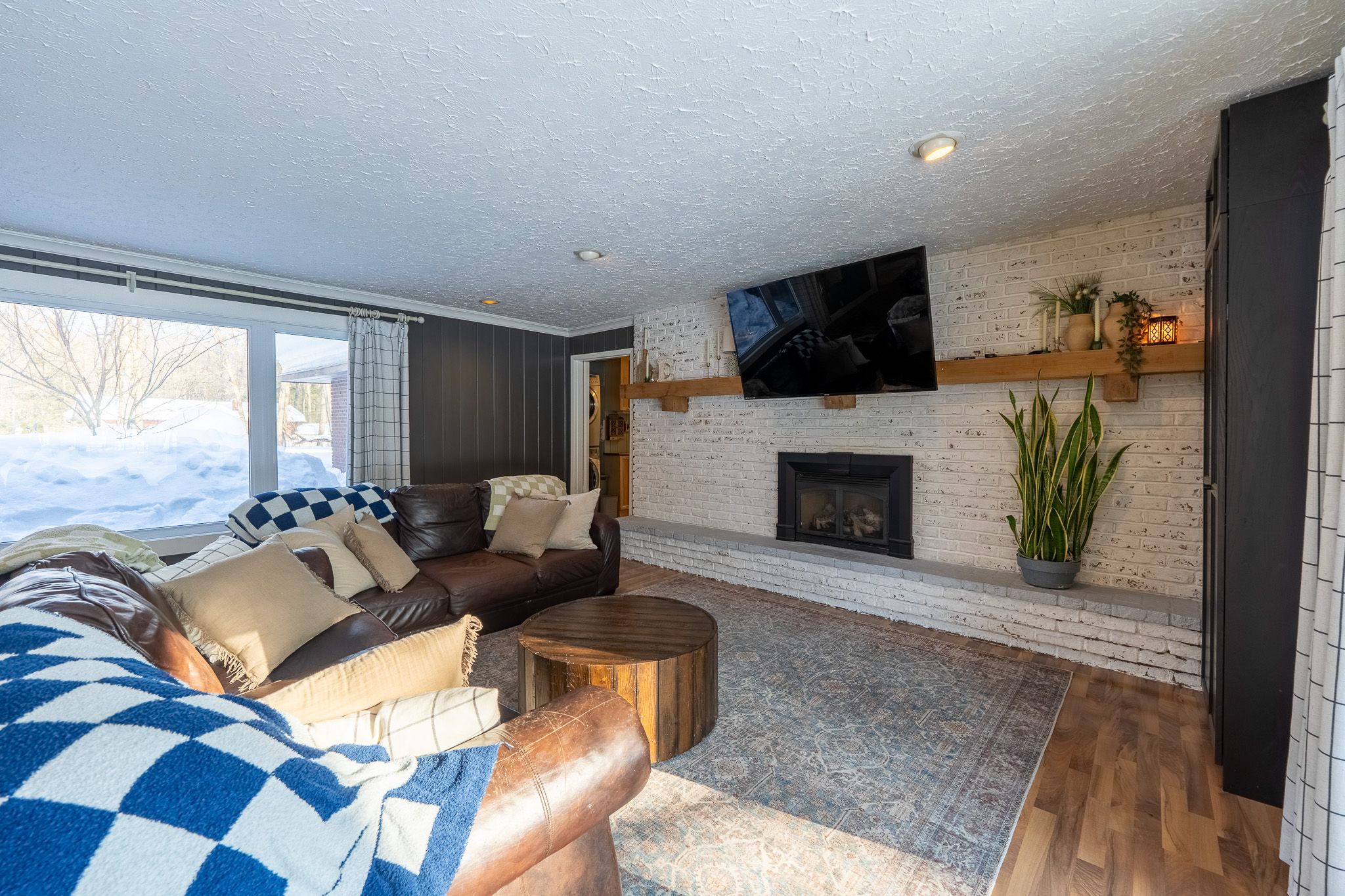 Tucked well back from the road this classic 1970's brick ranch offers nearly 2 acres of privacy in the heart of the highly sought-after marchmont/bass lake community. With over 2,700 sq. Ft. Of thoughtfully designed main floor living, this home was built for families who value space, connection, & comfort. From the moment you arrive, the covered arched entry & private unistone courtyard set the tone. Step inside to bright, welcoming foyers at both the front & rear of the home - practical for busy family life & ideal for entertaining. A convenient 2-pc powder rm & walk-in pantry/storage closet add everyday functionality. At the centre of the home, the open-concept kitchen, dining, & family rooms create a natural gathering place. The kitchen offers generous cabinetry, granite counters, stainless appliances, & ample prep space, all flowing seamlessly into the dining area & family room. The woodstove anchors the space, adding warmth & charm, while large windows draw in natural light. When it's time to unwind, the separate living room offers a quieter retreat, complete with oversized windows front & back & a cozy gas fireplace. The layout thoughtfully separates the living spaces from the private bedroom wing featuring 4 spacious bedrooms, incl. A primary suite tucked at the rear of the home w/a walk-through closet, private 4-pc ensuite & walkout to unistone patio. A fully renovated 5-pc bathrm w/dble vanity, & main floor laundry add convenience where families need it most. Full basement under 1/2 the home w/rec. Rm. W/gas fp, storage/utility rm. W/direct walk up access to the side yard. Backing onto township-owned open space, the yard feels endless; perfect for kids & pets! Detached 35'5" x 27' oversized double garage (with newly built roof) provides exceptional storage and workspace flexibility. 2 gas furnaces & central air units recently replaced. Minutes to amenities, in an excellent school district, & within one of severn's most desirable areas.