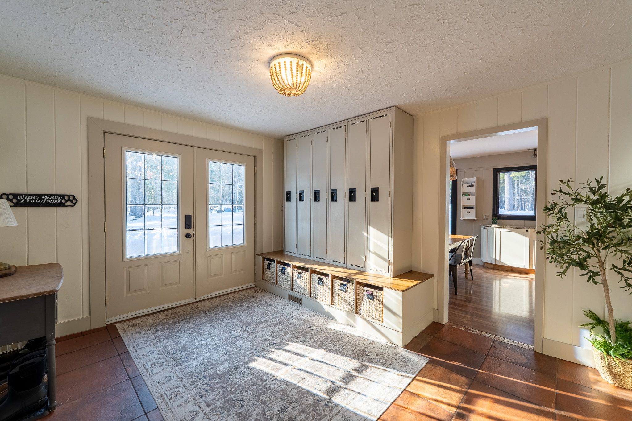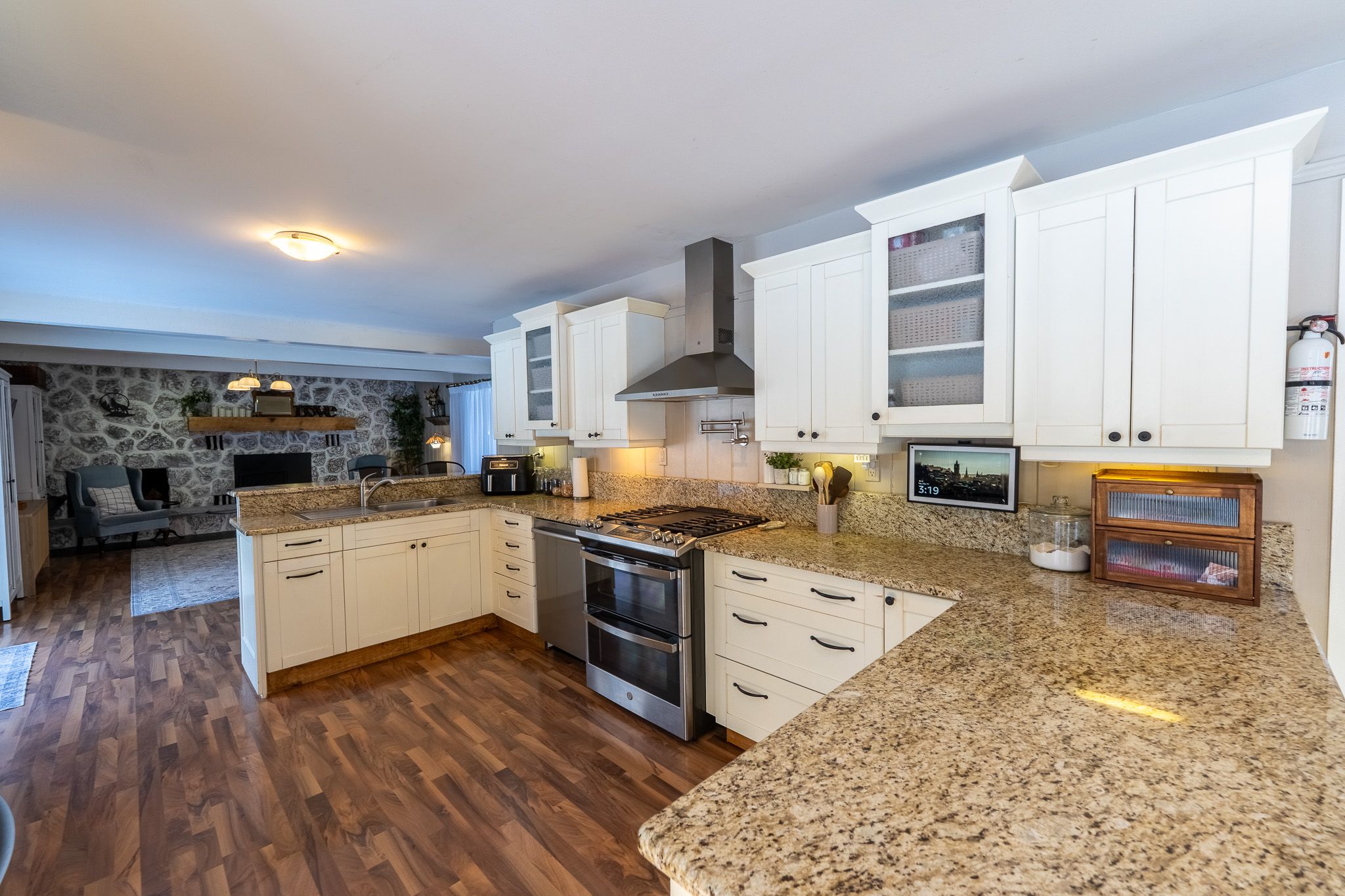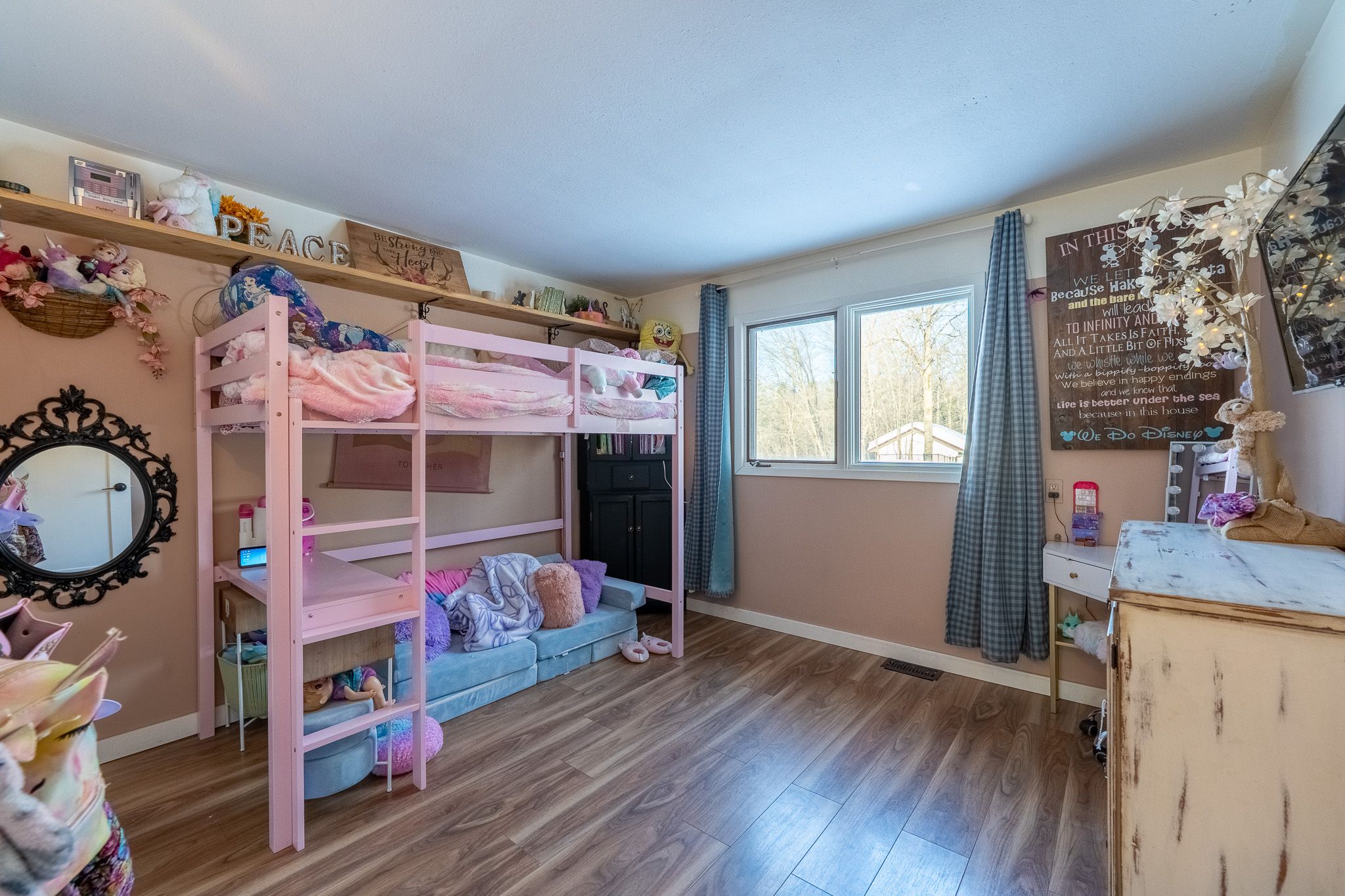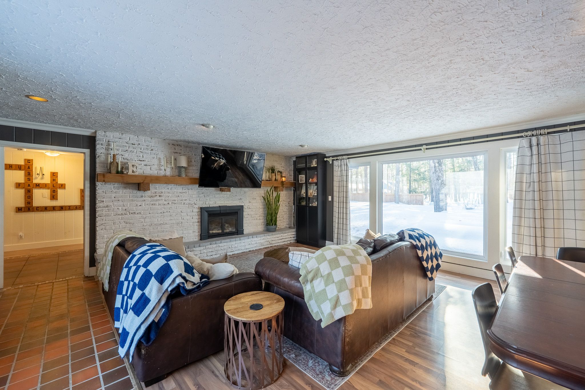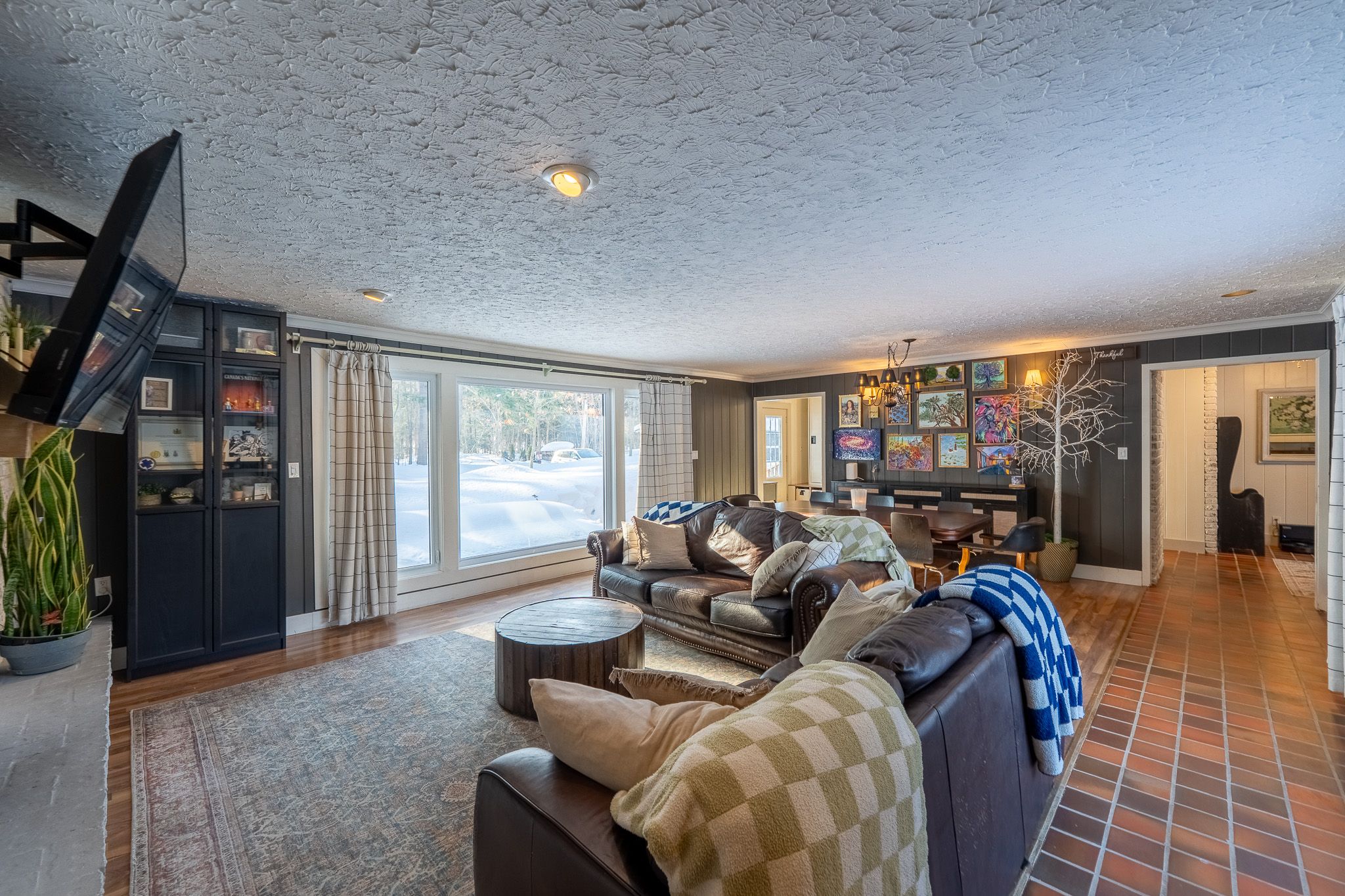 Tucked well back from the road this classic 1970's brick ranch offers nearly 2 acres of privacy in the heart of the highly sought-after marchmont/bass lake community. With over 2,700 sq. Ft. Of thoughtfully designed main floor living, this home was built for families who value space, connection, & comfort. From the moment you arrive, the covered arched entry & private unistone courtyard set the tone. Step inside to bright, welcoming foyers at both the front & rear of the home - practical for busy family life & ideal for entertaining. A convenient 2-pc powder rm & walk-in pantry/storage closet add everyday functionality. At the centre of the home, the open-concept kitchen, dining, & family rooms create a natural gathering place. The kitchen offers generous cabinetry, granite counters, stainless appliances, & ample prep space, all flowing seamlessly into the dining area & family room. The woodstove anchors the space, adding warmth & charm, while large windows draw in natural light. When it's time to unwind, the separate living room offers a quieter retreat, complete with oversized windows front & back & a cozy gas fireplace. The layout thoughtfully separates the living spaces from the private bedroom wing featuring 4 spacious bedrooms, incl. A primary suite tucked at the rear of the home w/a walk-through closet, private 4-pc ensuite & walkout to unistone patio. A fully renovated 5-pc bathrm w/dble vanity, & main floor laundry add convenience where families need it most. Full basement under 1/2 the home w/rec. Rm. W/gas fp, storage/utility rm. W/direct walk up access to the side yard. Backing onto township-owned open space, the yard feels endless; perfect for kids & pets! Detached 35'5" x 27' oversized double garage (with newly built roof) provides exceptional storage and workspace flexibility. 2 gas furnaces & central air units recently replaced. Minutes to amenities, in an excellent school district, & within one of severn's most desirable areas.