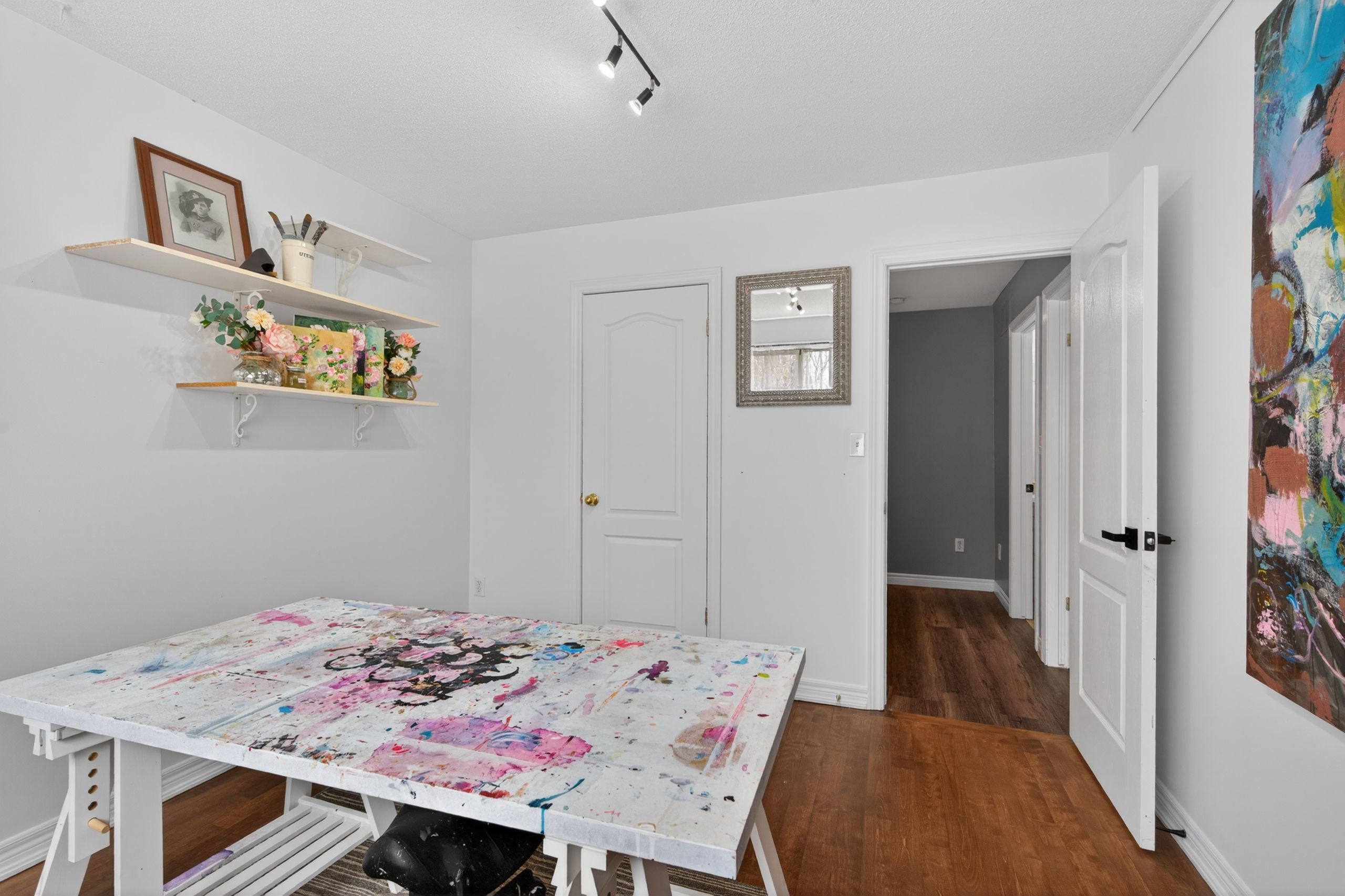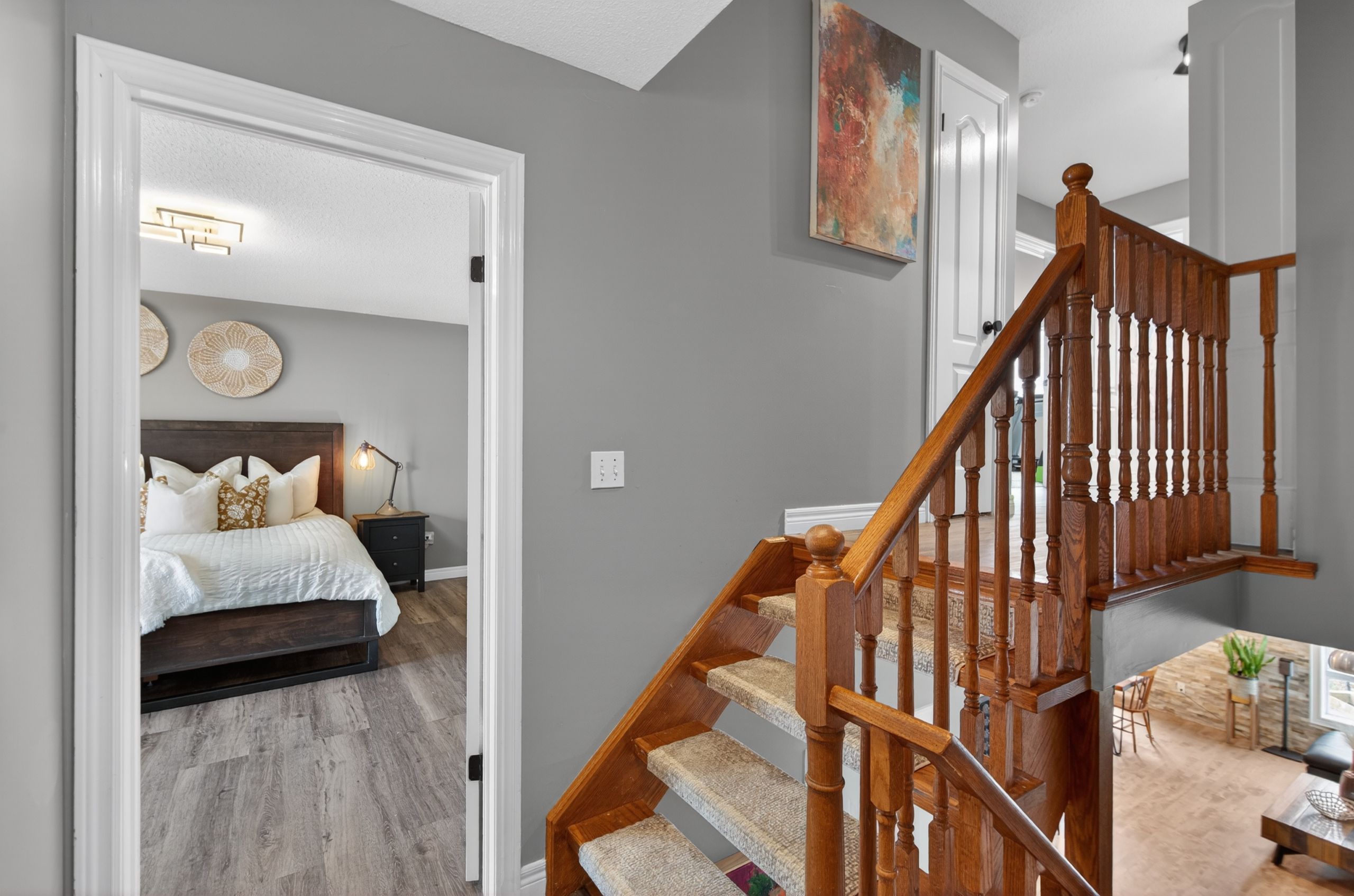 Fully freehold. Upgraded. Millcroft. Ravine lot. A winning combination you don't see every day in townhomes. This particular home on medland has a lot to offer in one of the most sought-after neighbourhoods in the city! Starting with the double wide parking with space for 4 cars. More parking in the garage with a bonus walk-up storage platform. Inside the layout flows nicely. The open stairs, big windows, and size makes it feel open, bright, and inviting. The main floor balcony brings outdoor living and bbqing to your kitchen and living area. The primary bedroom is uniquely on its own level with a walk-in closet that has an extra storage nook for luggage, and a new ensuite bathroom. The lower level has a walk-out to a very private and newly landscaped yard that's fully fenced and backing onto the ravine. Bedroom level laundry, 4 total bathrooms, 3 full bedrooms, and added inclusions like the sony projector, screen and built-in speakers are lovely additions. But what really sets this home apart is the long list of meaningful upgrades; refinished & stained wood floors, smoothed ceiling and added pot lights, carpet runners, updated powder room with new vanity, majority of the house painted, custom closet-by-design, new vanity and faucet in 4-pc bathroom all in 2025. Luxury loose lay vinyl, added pot lights in basement, full ensuite renovation, updated laundry suite with new lg appliances, fully landscaped yard all in 2024. Wifi garage door and exterior lighting with app control. This place has it all. And it's all in one of the most prestigious neighbourhoods in town. With added value being in the top school catchments, convenient commuting access, and a short walk to beautiful parks. It's turn-key and ready for you to enjoy.