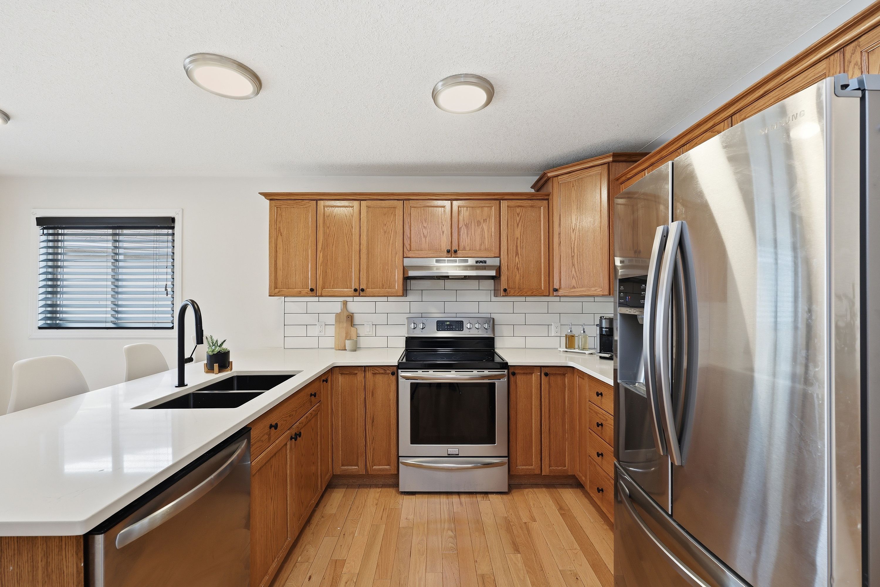 • Bright open concept main floor with stylish eat-in kitchen and new quartz countertops.