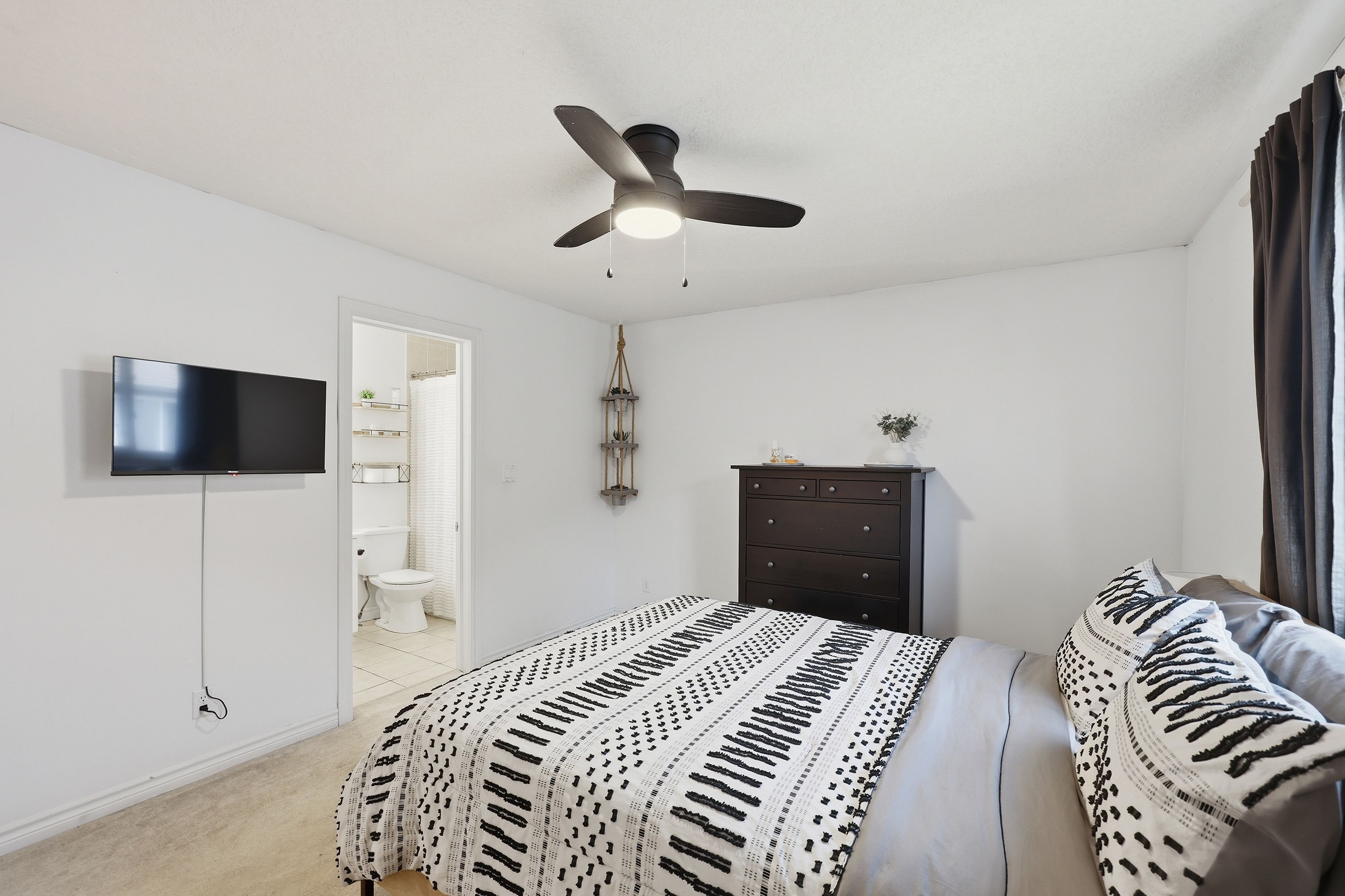 Beautifully updated 3 bedroom bungalow in the sought after lyndenwood neighbourhood, just minutes to parks, playgrounds, costco, and all west-end amenities. Bright, open concept main floor featuring a stylish eat-in kitchen with new quartz countertops, updated light fixtures, and patio doors leading to an extended deck with gas bbq hookup - perfect for entertaining. The primary bedroom offers an updated ensuite, while two additional bedrooms and a stylishly updated full bathroom complete the main level. The finished lower level provides a spacious family room - ideal for movie nights, kids' play space, or a games and craft area - along with an additional bedroom, laundry, bathroom rough-in, and ample storage. Enjoy long summer evenings in your fully fenced, landscaped yard, while permanent outdoor lighting adds effortless, year-round curb appeal. Don't miss this opportunity - book your showing today!