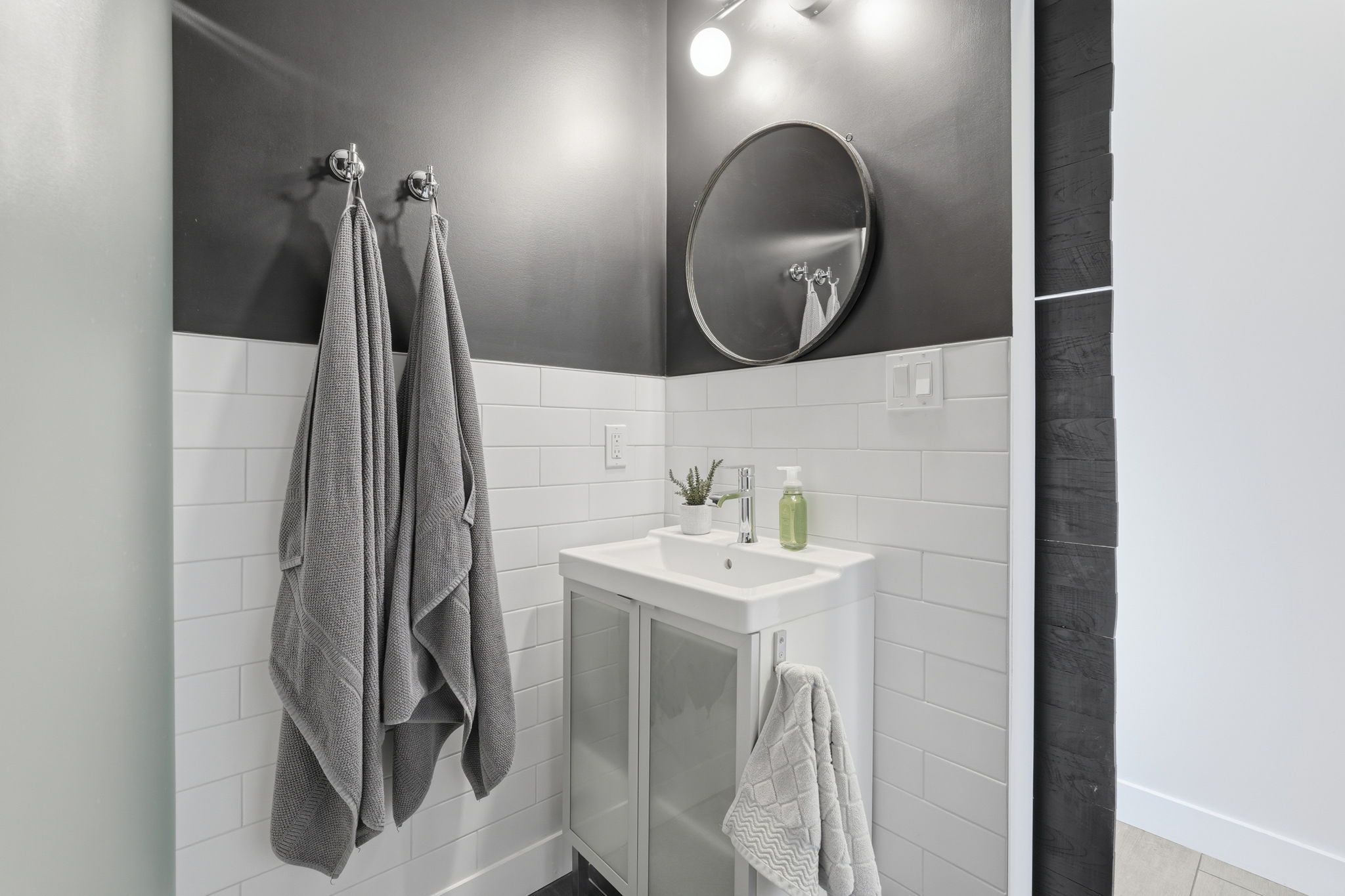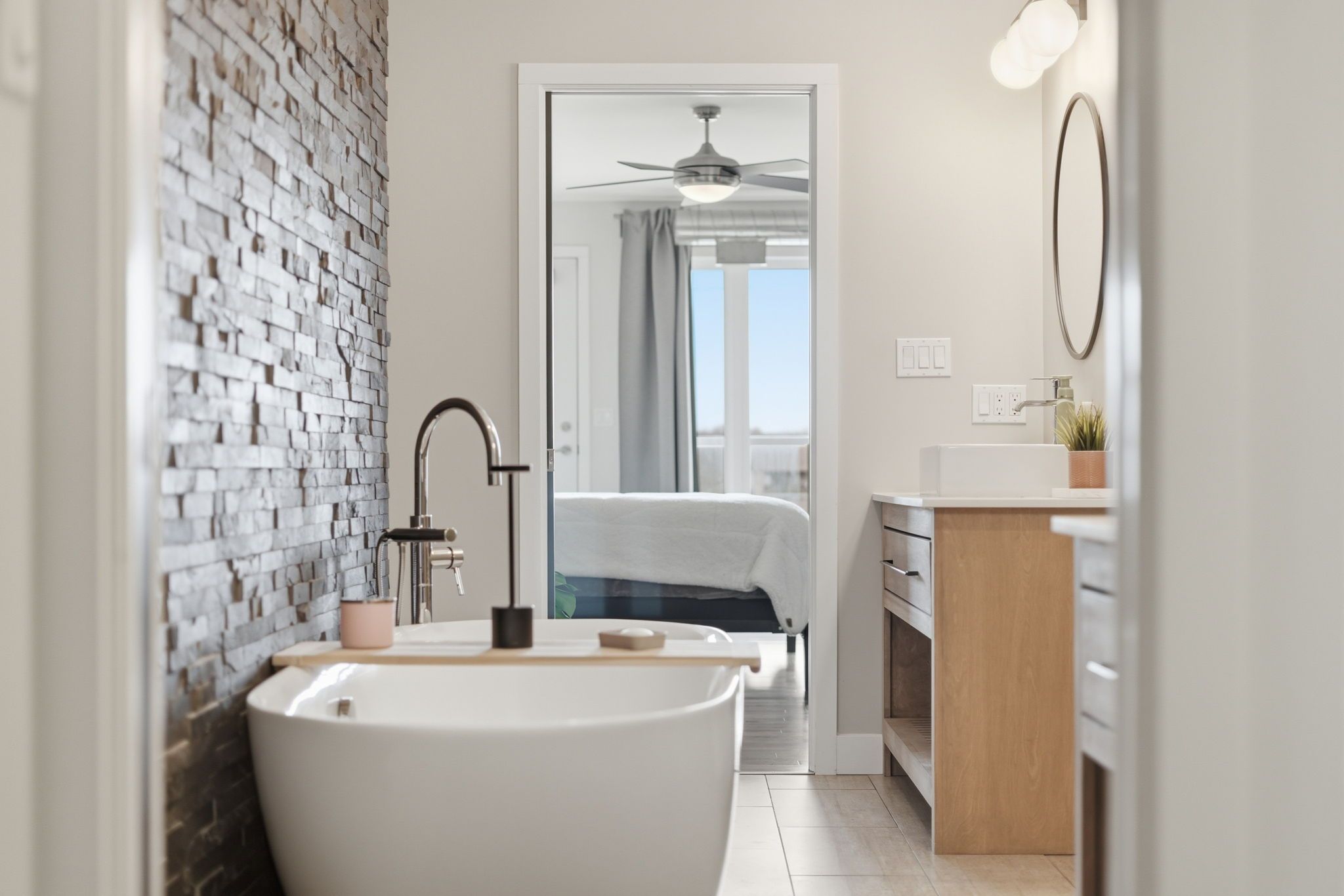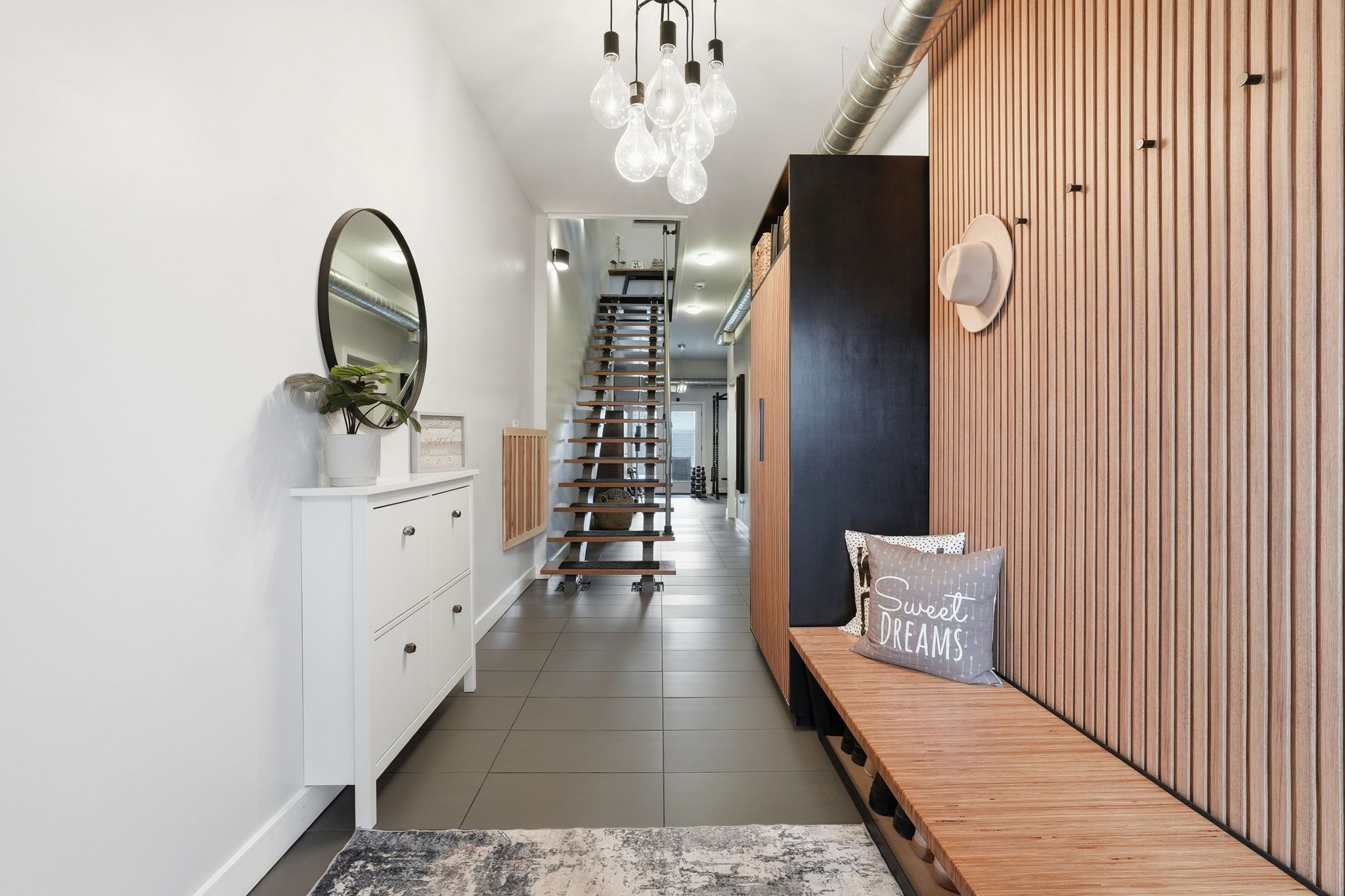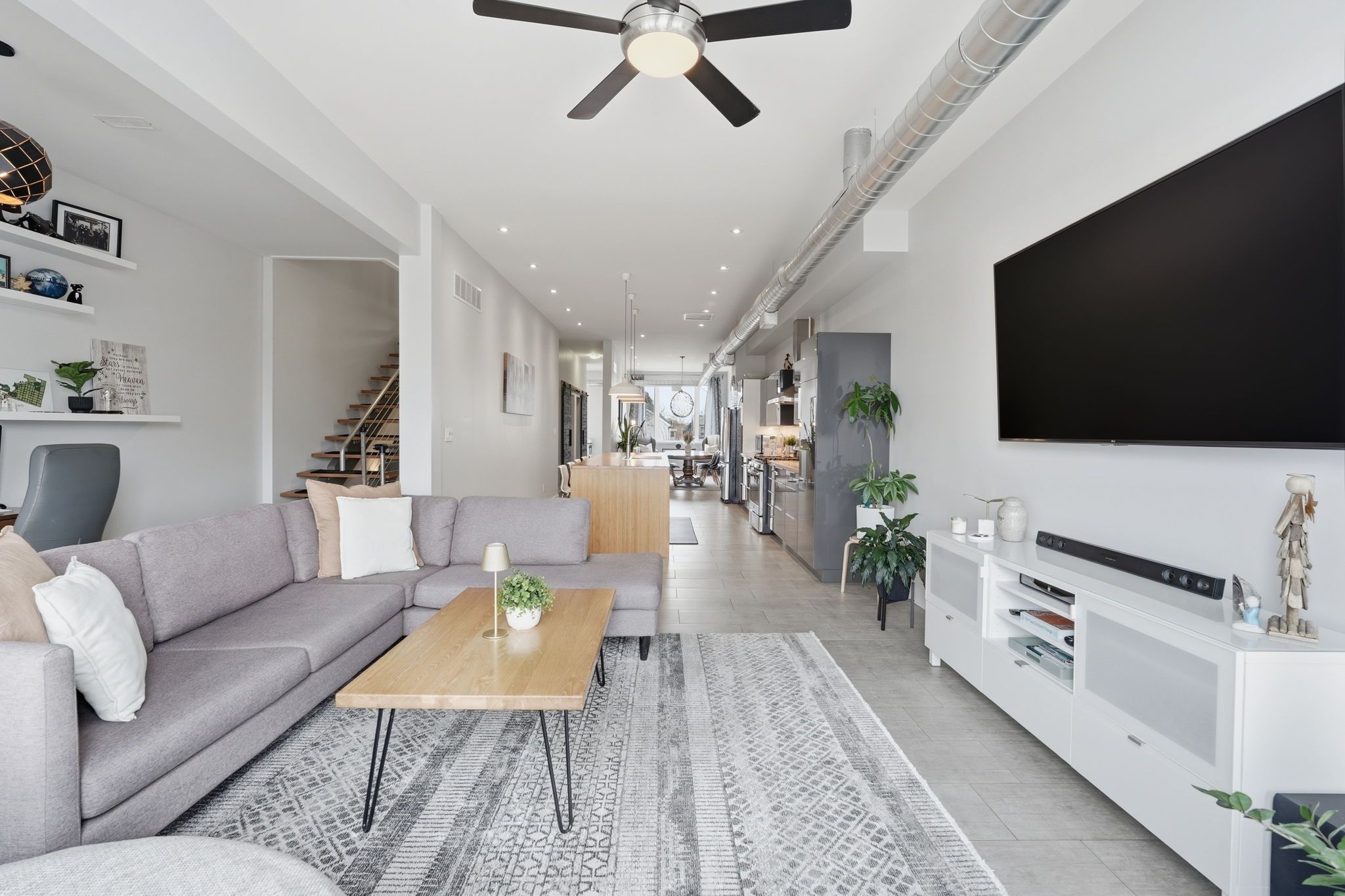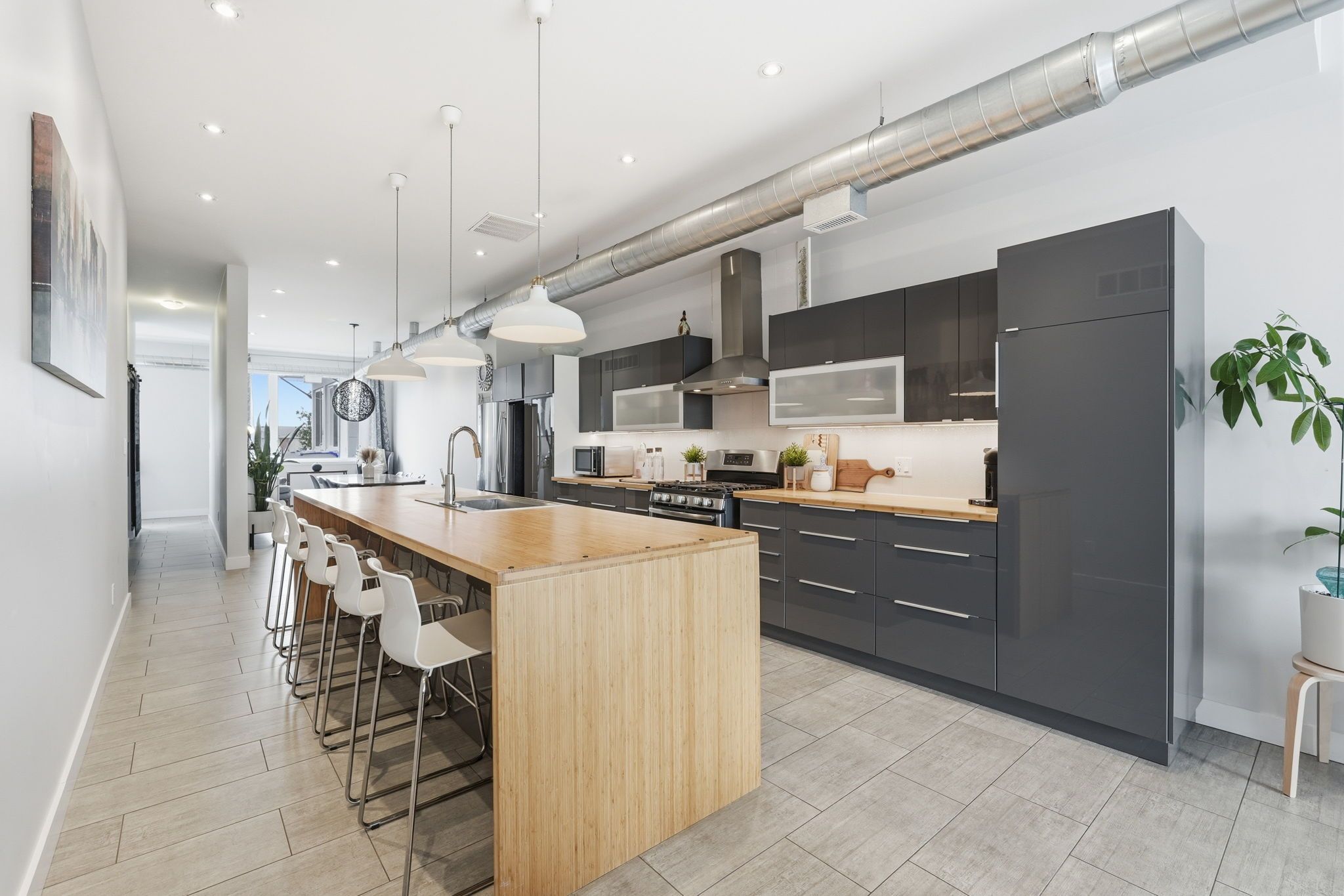 • Open-concept spaces and exposed accents create a spacious feel throughout.