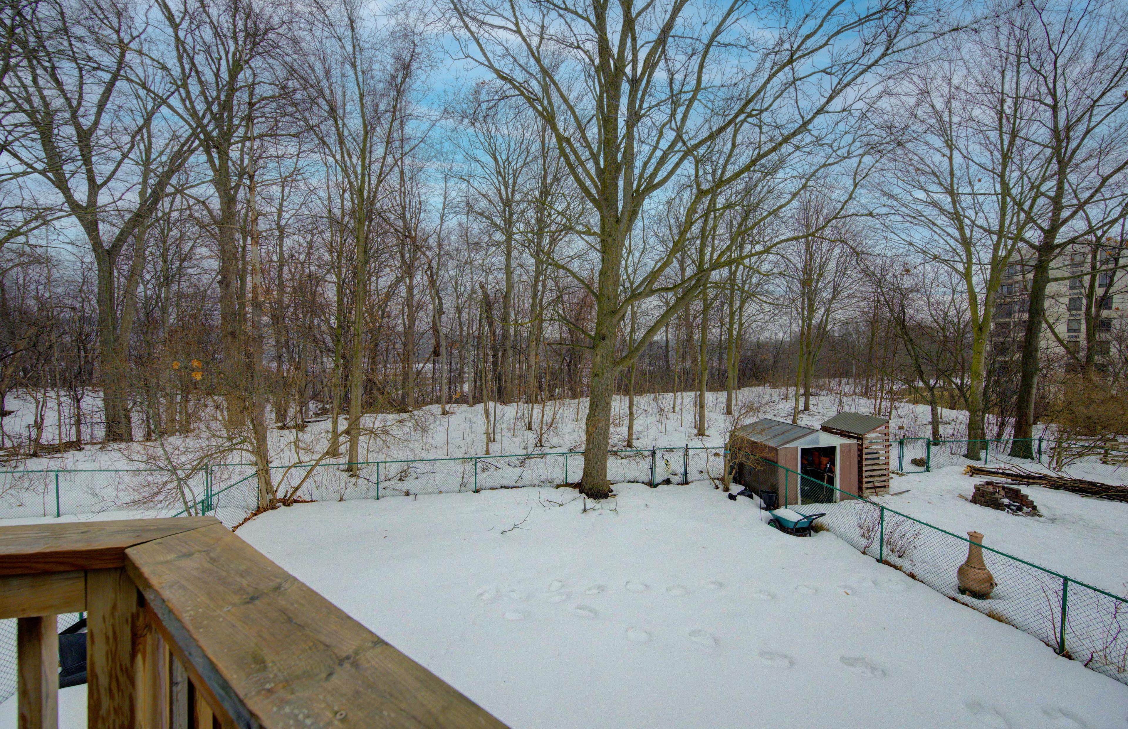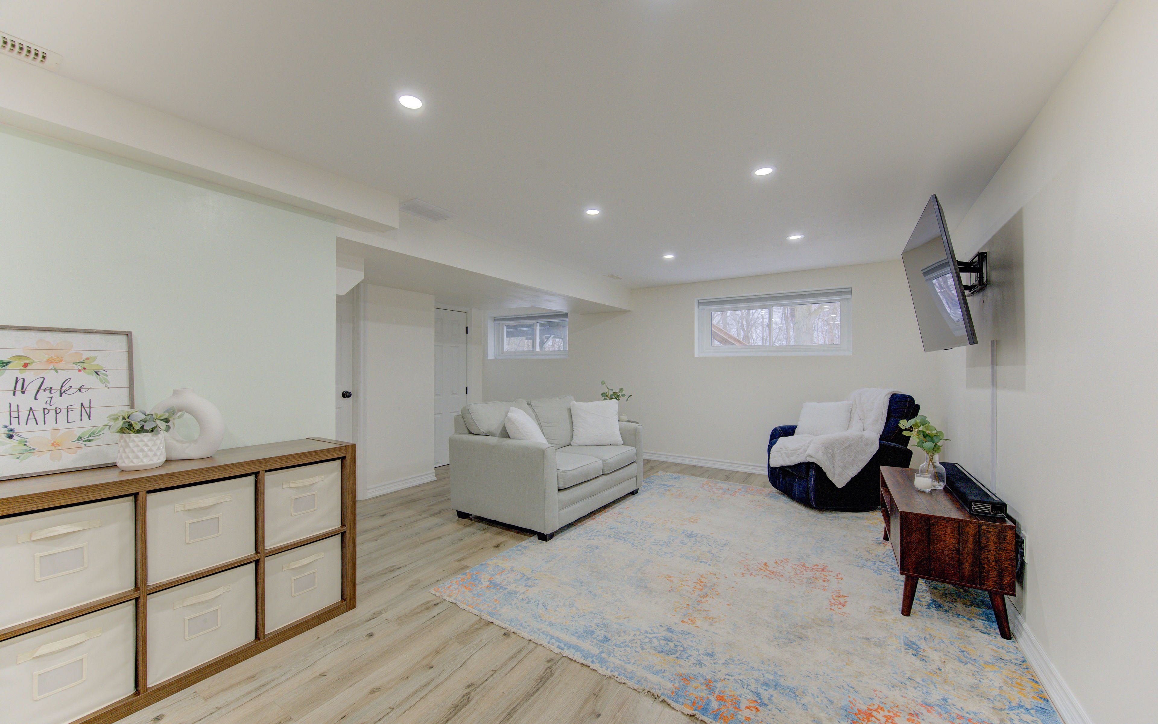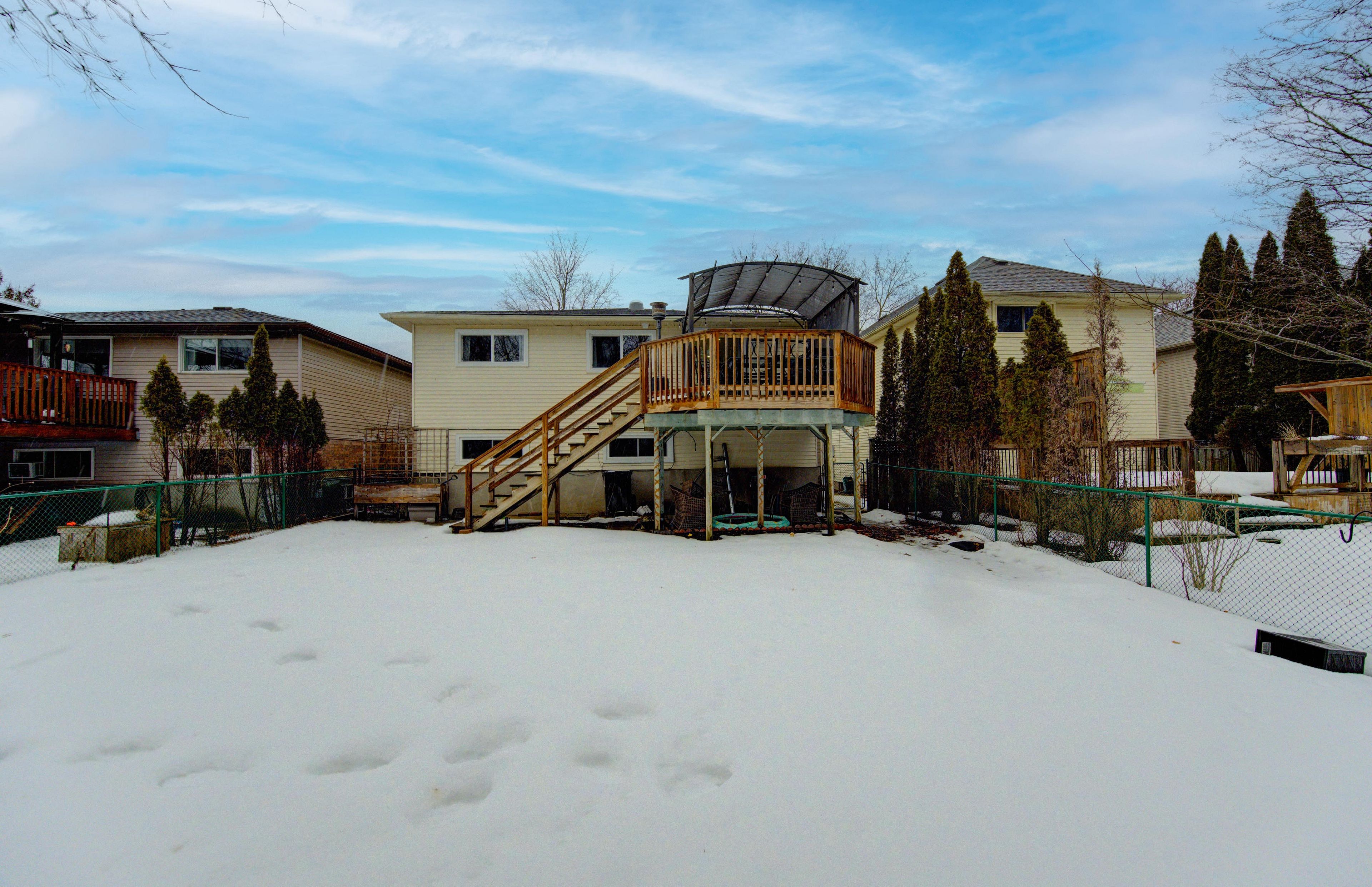 Welcome home to 414 woods lane, an elegant and spacious raised bungalow located in a family-friendly neighbourhood, just a short walk to parkway public school. With nearly 1900 sqft of finished living space, including a fully finished basement with a separate entrance from the garage, this move-in ready home offers excellent flexibility for families or multi-generational living. The main floor includes a bright living room and a beautifully updated eat-in kitchen with quartz countertops, ro system and ceramic backsplash, plus walkout to the back deck (2019) with a gas bbq line. This level also features 3 bedrooms and a modern 4 piece bath. Neutral decor, large windows and carpet-free living create a bright, welcoming feel throughout the home. The finished basement adds additional living space, including a comfortable family room with a gas fireplace, a 2 piece bath, a potential 4th bedroom or office, and plenty of storage. This home sits on a private lot with no rear neighbours. Outside you'll also find a single-car garage with an updated garage door (2018) and driveway, plus a rough-in and slab ready for a hot tub. Notable updates include roof (2018), furnace, air conditioner and water softener (2017), main flooring (2021), basement flooring (2019), windows (2019/2021), pot lighting, two sun tunnels/skylights, along with neutral decor and paint throughout. Located close to parks, walking trails, restaurants, shopping, schools, and public transit. Commuters will appreciate the convenient access to highway 401, just a 5 min drive away!