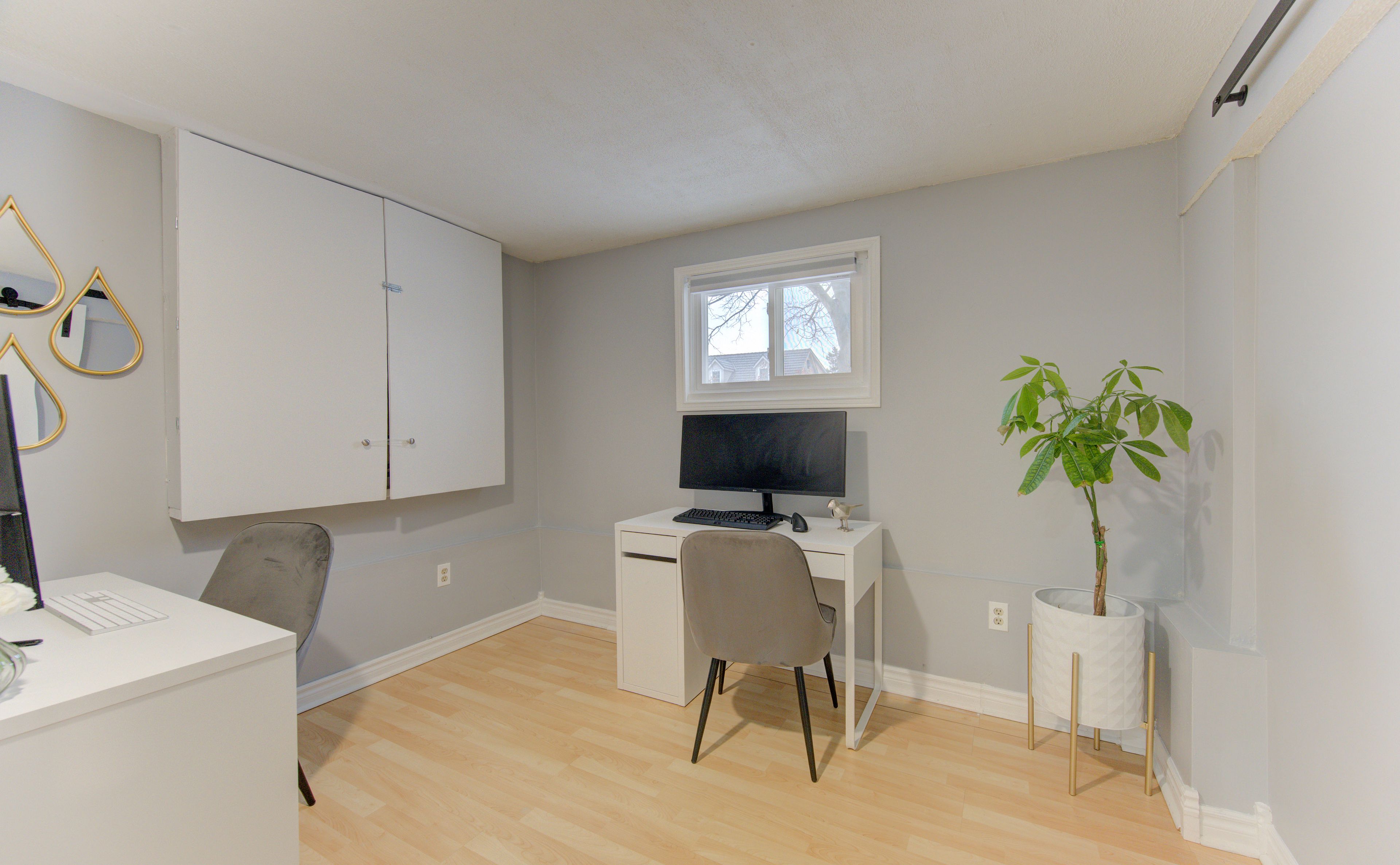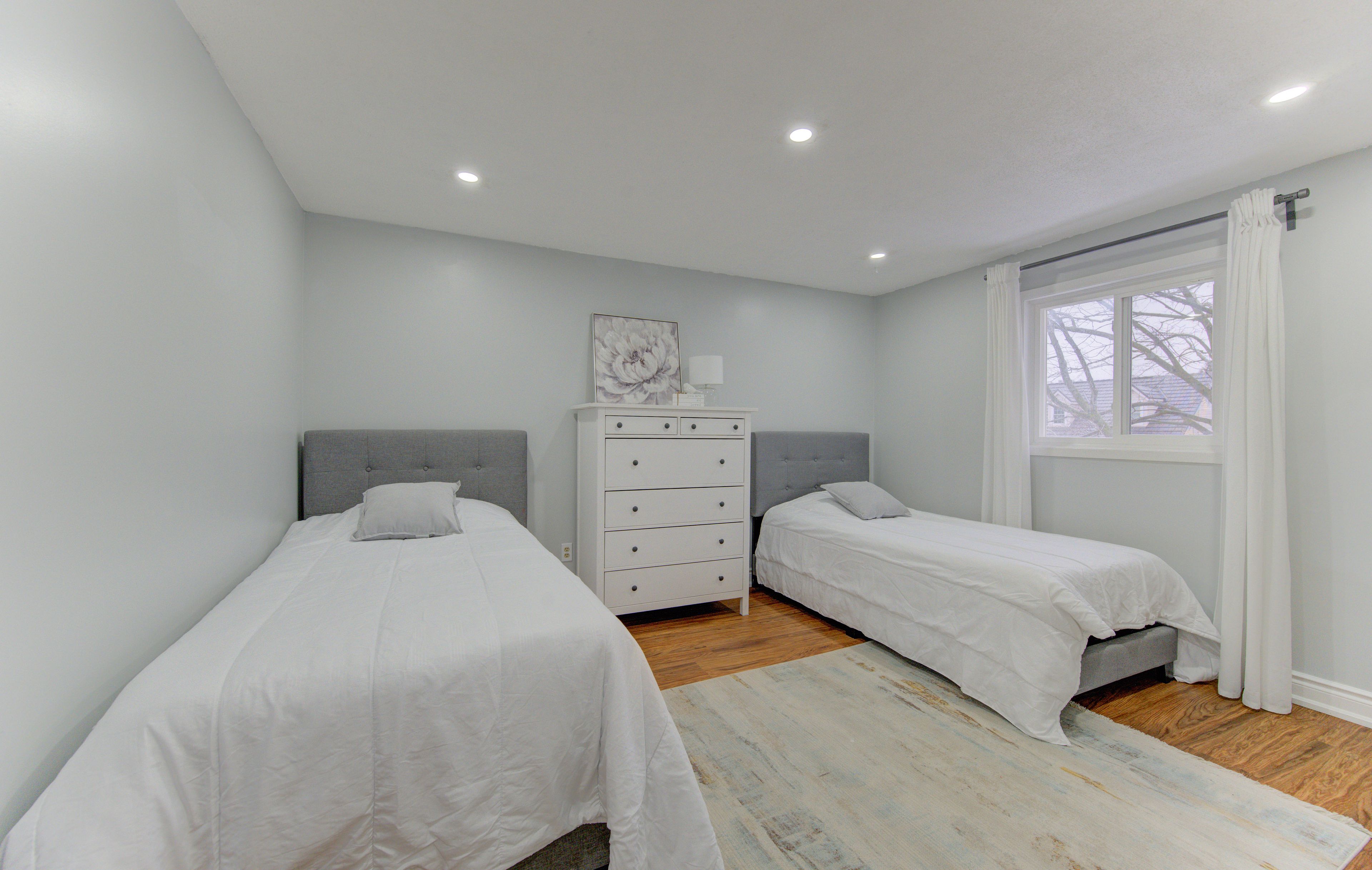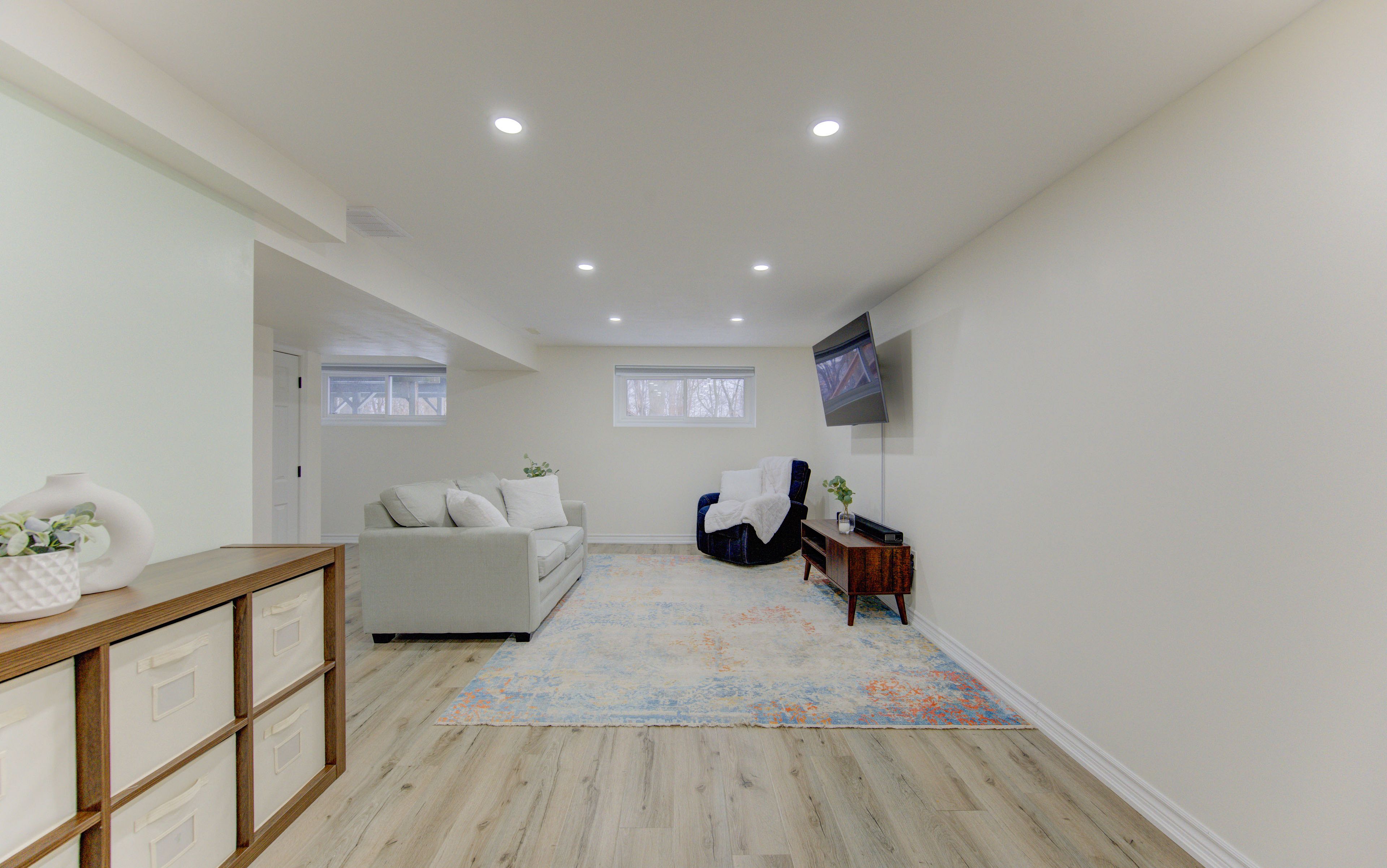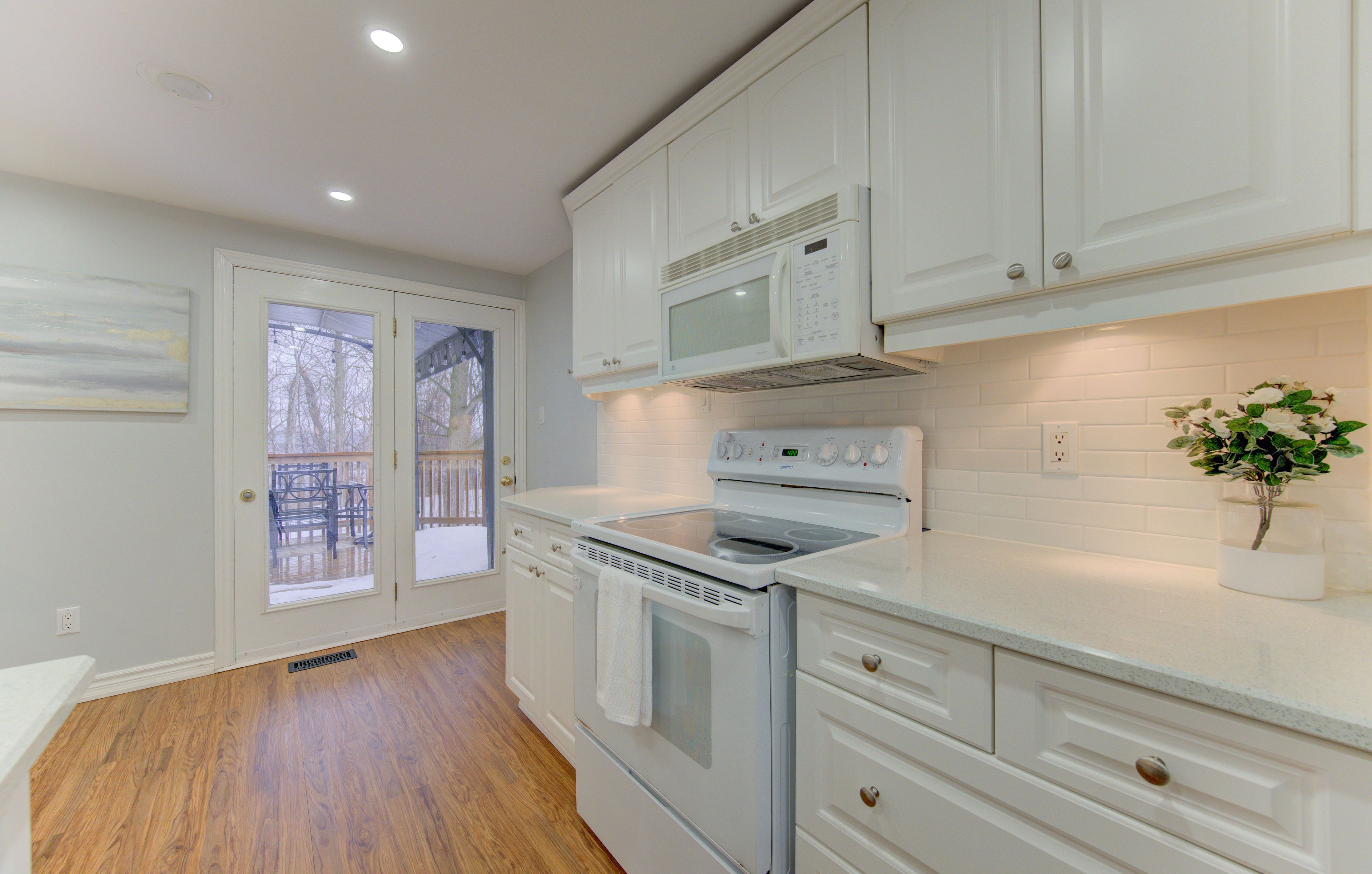 Welcome home to 414 woods lane, an elegant and spacious raised bungalow located in a family-friendly neighbourhood, just a short walk to parkway public school. With nearly 1900 sqft of finished living space, including a fully finished basement with a separate entrance from the garage, this move-in ready home offers excellent flexibility for families or multi-generational living. The main floor includes a bright living room and a beautifully updated eat-in kitchen with quartz countertops, ro system and ceramic backsplash, plus walkout to the back deck (2019) with a gas bbq line. This level also features 3 bedrooms and a modern 4 piece bath. Neutral decor, large windows and carpet-free living create a bright, welcoming feel throughout the home. The finished basement adds additional living space, including a comfortable family room with a gas fireplace, a 2 piece bath, a potential 4th bedroom or office, and plenty of storage. This home sits on a private lot with no rear neighbours. Outside you'll also find a single-car garage with an updated garage door (2018) and driveway, plus a rough-in and slab ready for a hot tub. Notable updates include roof (2018), furnace, air conditioner and water softener (2017), main flooring (2021), basement flooring (2019), windows (2019/2021), pot lighting, two sun tunnels/skylights, along with neutral decor and paint throughout. Located close to parks, walking trails, restaurants, shopping, schools, and public transit. Commuters will appreciate the convenient access to highway 401, just a 5 min drive away!