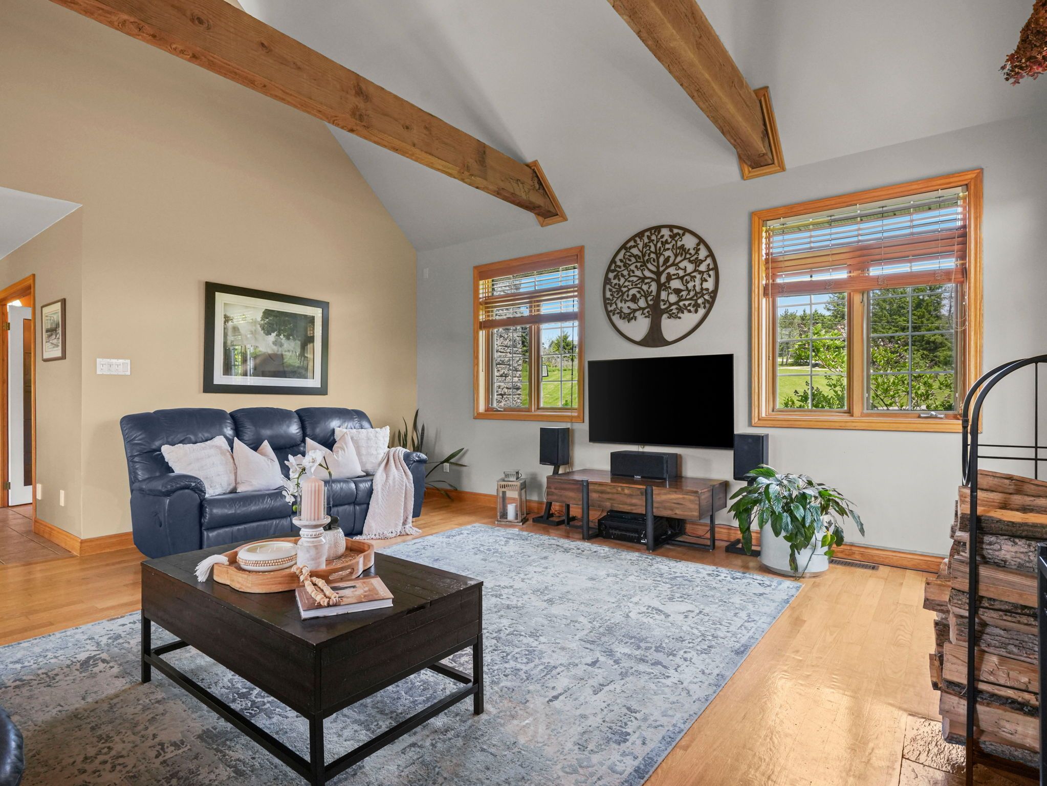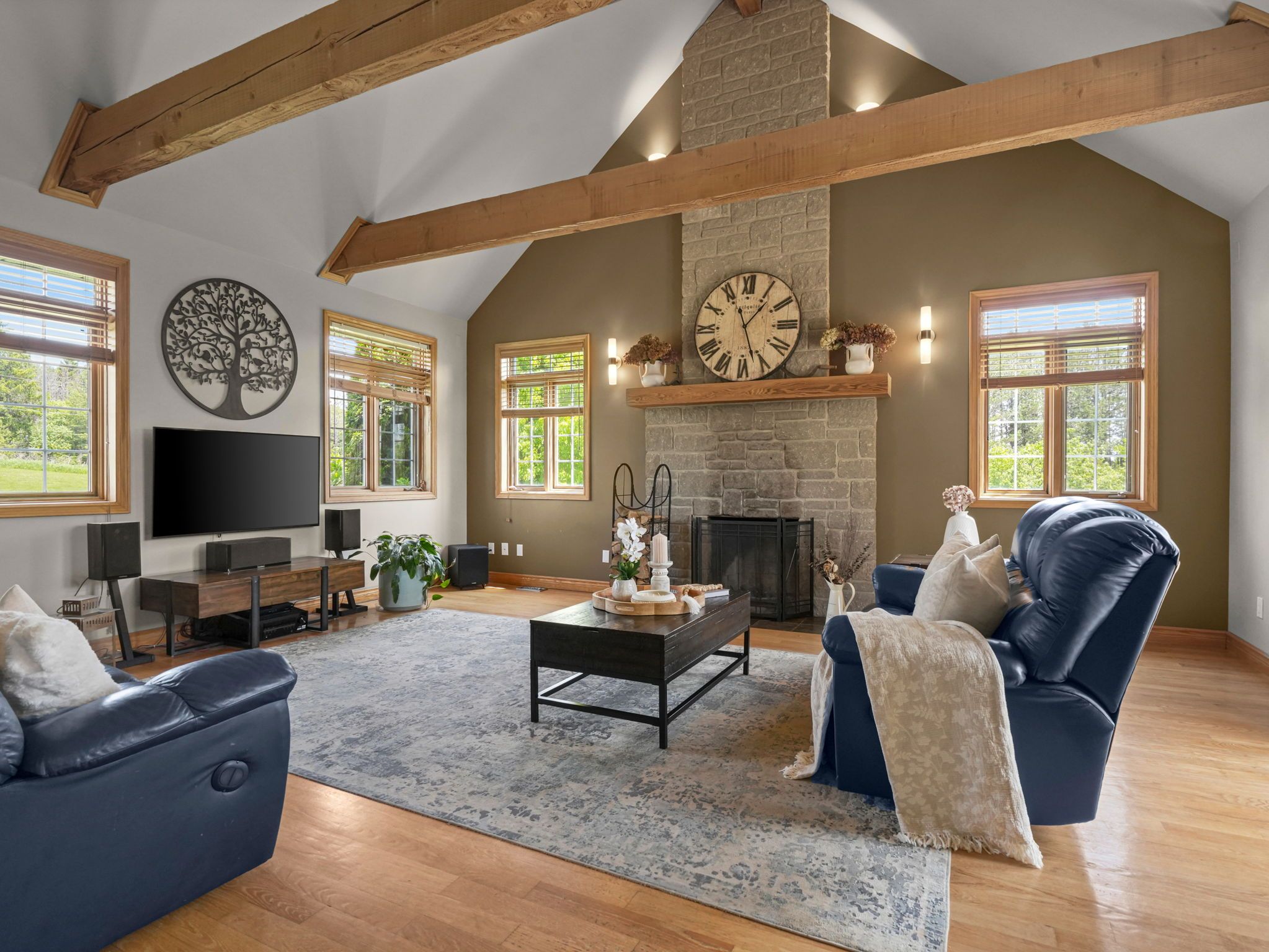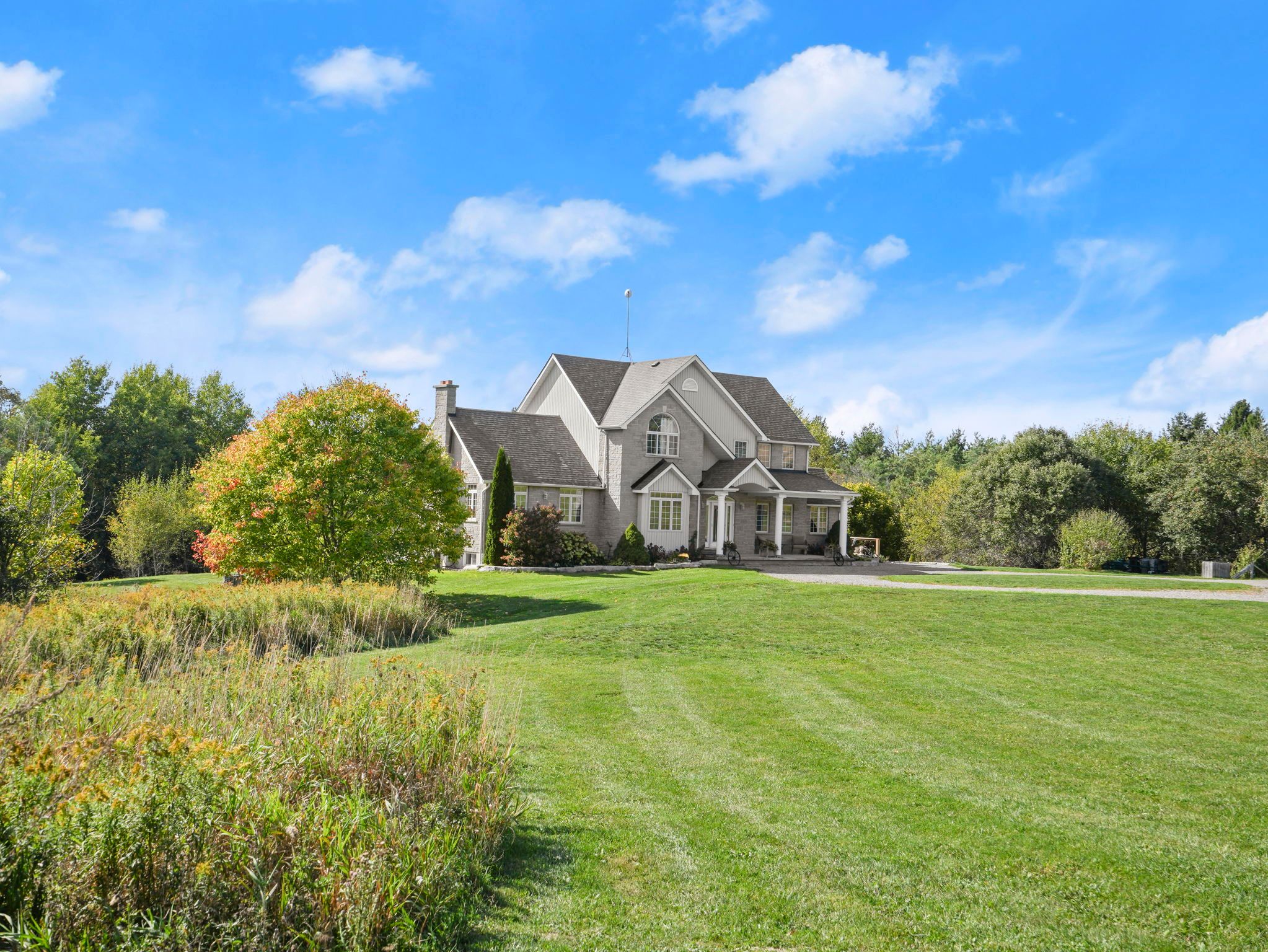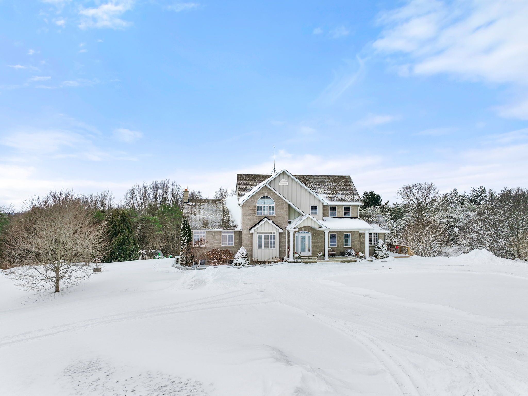Welcome to this beautiful family home, sitting on 40. 5 picturesque acres with the nottawasaga river flowing through the property. A true outdoor paradise, enjoy year-round entertainment - from long walks on your own private trails, cozy fires, swimming, kayaking or tubing down the river, to winter skating and snowmobiling. Start your mornings with coffee on the covered front porch and end your day watching sunsets from the peaceful back deck. Thoughtfully designed for multigenerational living, the home offers a spacious layout with tasteful finishes throughout. The main floor features a large kitchen with ample counter space, an island with cooktop stove, and a bright eat-in area that flows seamlessly to the back deck and the grand living room. Soaring cathedral ceilings with exposed wood beams and a stunning stone fireplace create an inviting gathering space. The dining room is a great flex space, whether it be dining, a playroom, or sitting area. Enjoy the convenience of a main floor office and laundry room. Upstairs, you'll find four generously sized bedrooms and a large shared bathroom. The primary suite includes a walk-in closet and a spacious 4-piece ensuite with a jacuzzi tub and walk-in shower. The partially finished basement features a complete in-law suite with its own private walkout entrance, an open-concept kitchen and living area, a large bedroom with access to another flexible space - perfect as an oversized walk-in closet, office, or second bedroom. The unfinished area in the basement offers a blank canvas to make it your own. Whether you're seeking space to grow, entertain, or simply soak in nature's beauty, this property offers the perfect blend of comfort, functionality, and outdoor adventure.