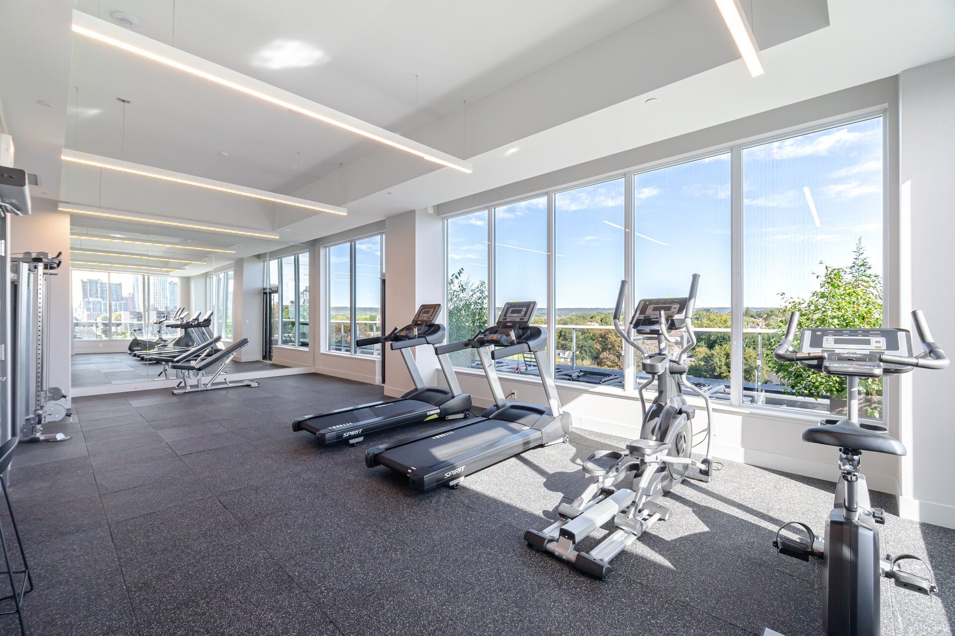 • Functional open-concept studio maximizes space and natural light with large windows.