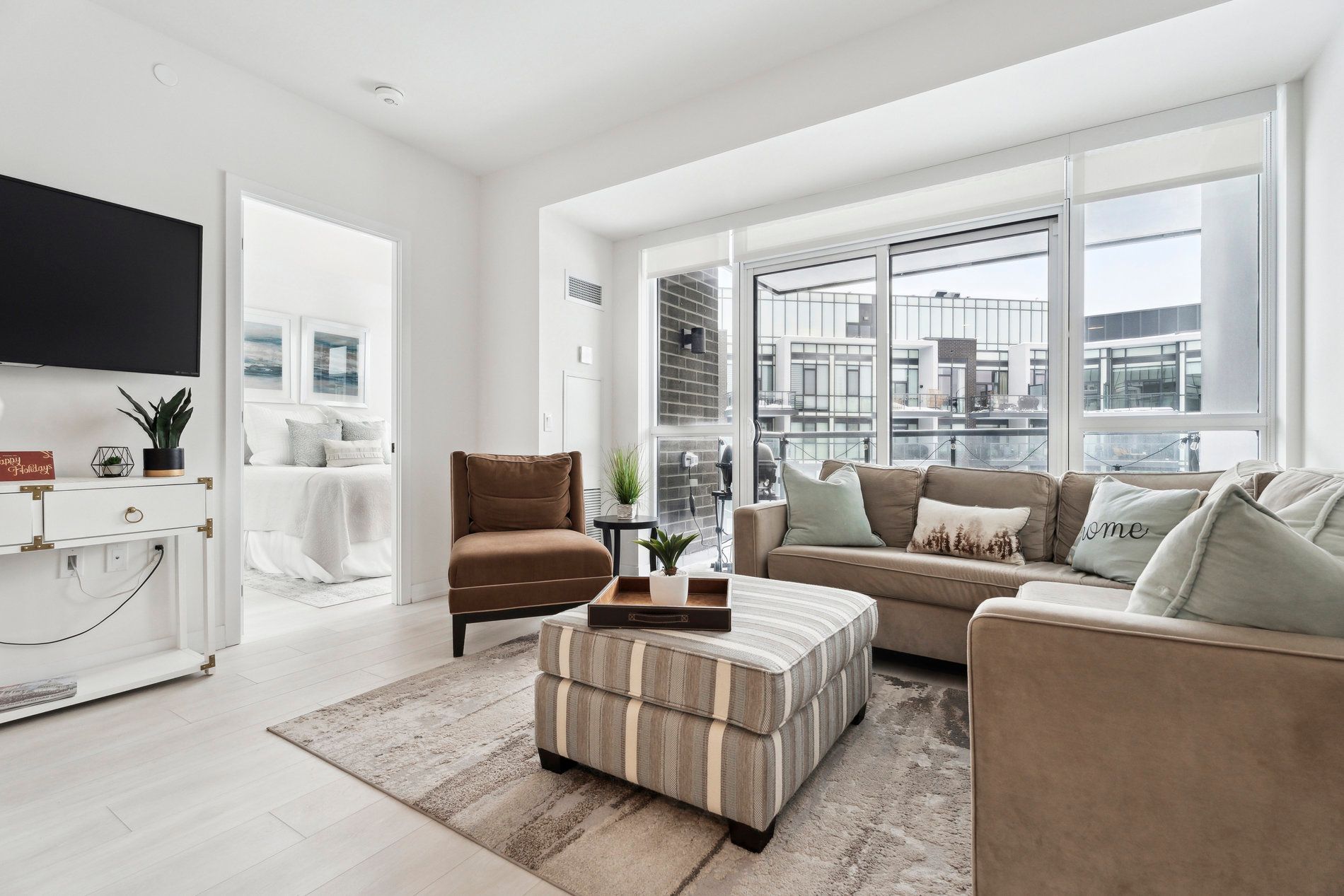 Welcome to resort-style living at friday harbour resort. Experience luxury lakeside living in this beautifully appointed 2-bedroom, 2-bathroom condo located on the 3rd floor with serene courtyard views overlooking the year-round hot tub and outdoor pool. This bright and airy suite features floor-to-ceiling windows, flooding the space with natural light and creating an inviting, open ambiance. The thoughtfully designed layout offers both comfort and functionality, perfect for professionals, couples, or retirees. Step out onto your private balcony, ideal for morning coffee, evening wine, or summer bbqs, while enjoying peaceful resort-style surroundings. Modern kitchen and open-concept living space is cozy and inviting. This unit can be leased furnished or possibly unfurnished. Live where others vacation, enjoy access to walking trails, waterfront, restaurants, shops, golf, and year-round amenities just steps from your door. A perfect blend of comfort, convenience, and lifestyle.