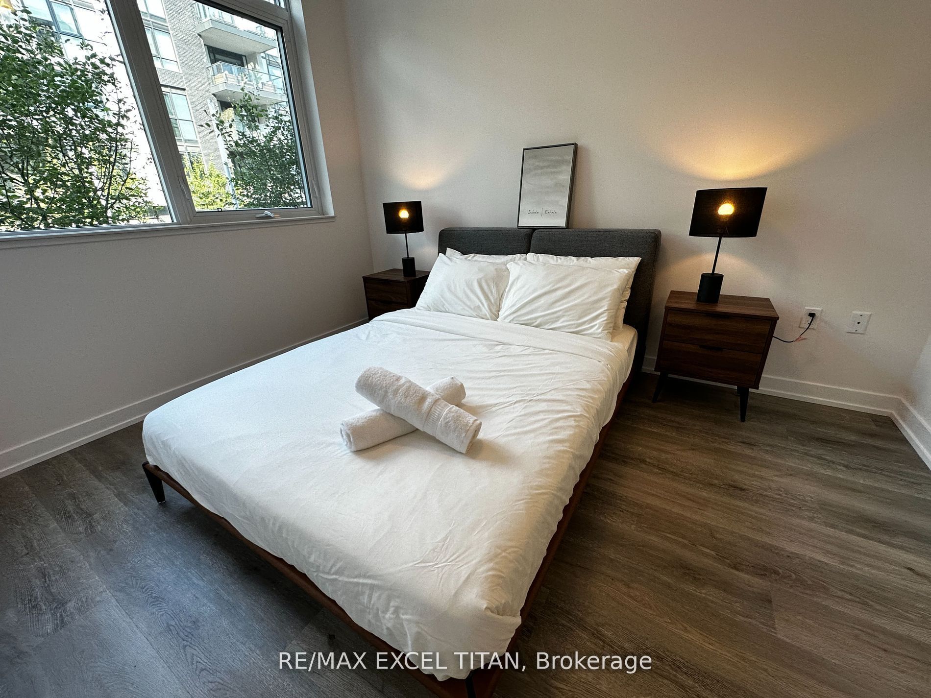 Beautiful furnished 2-bedroom condo wt parking & locker for lease at friday harbour, innisfil-barrie. This stunning ground-floor 2-bedroom, 2-bathroom furnished condo offering resort-style living at friday harbour. This spacious 830 sq. Ft. Unit features a desirable split-bedroom layout, modern finishes, and floor-to-ceiling windows that bring in plenty of natural light. Enjoy an open-concept living and dining area with a walkout to a private patio overlooking the patio -perfect for relaxing or entertaining. The fully equipped modern kitchen includes high-end, smart appliances. The primary bedroom features a walk-in closet and a 3-piece ensuite with serene patio views. The second bedroom also offers a beautiful view and ample closet space. Additional highlights include designer-selected hardware and furnishings, ensuite laundry, generous storage, and an electric bbq. Internet is included. Located just a 2-minute walk to the central boardwalk, this condo offers convenient access to lcbo, restaurants, shops, a juice bar, yoga studio, and more.