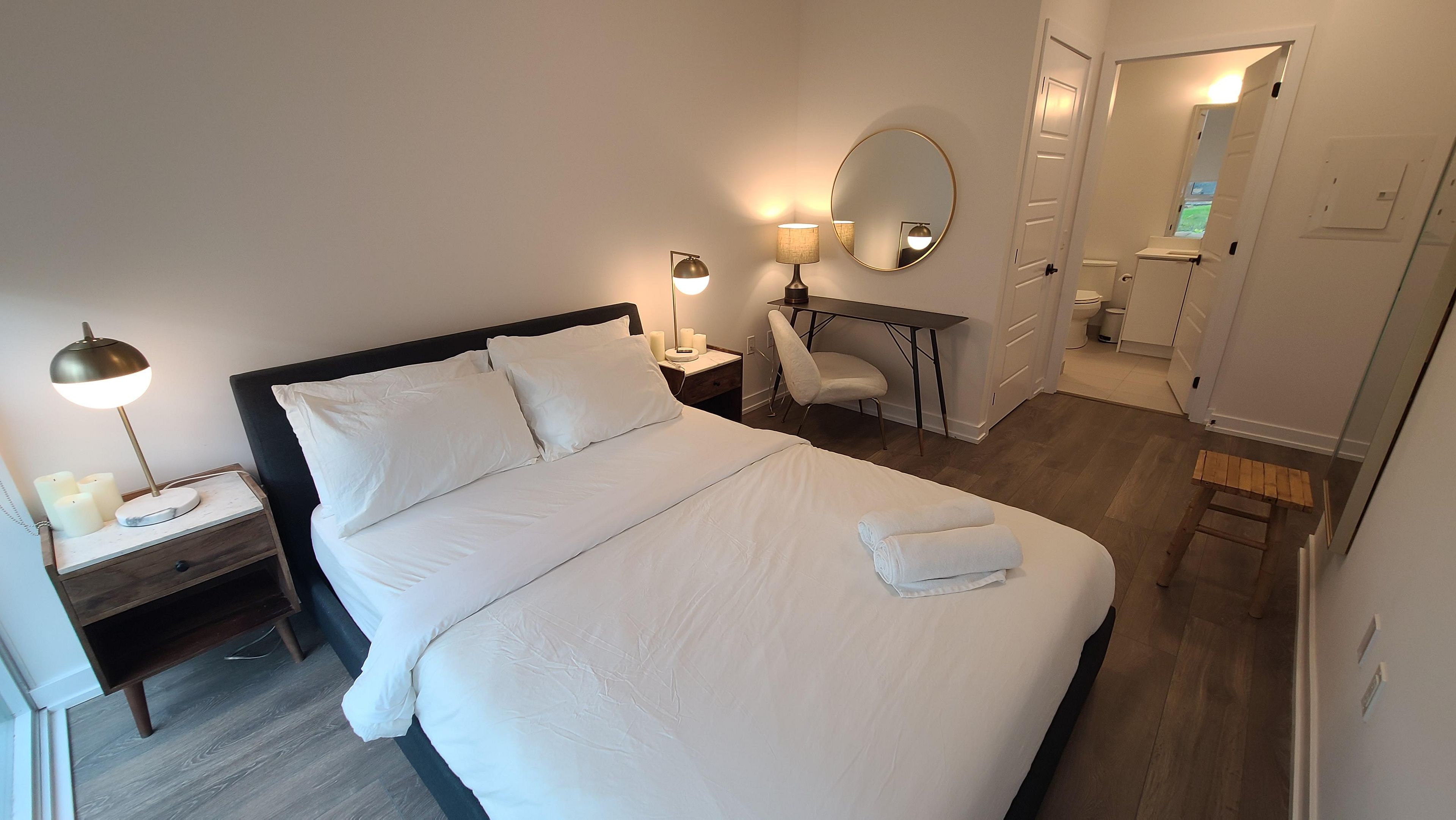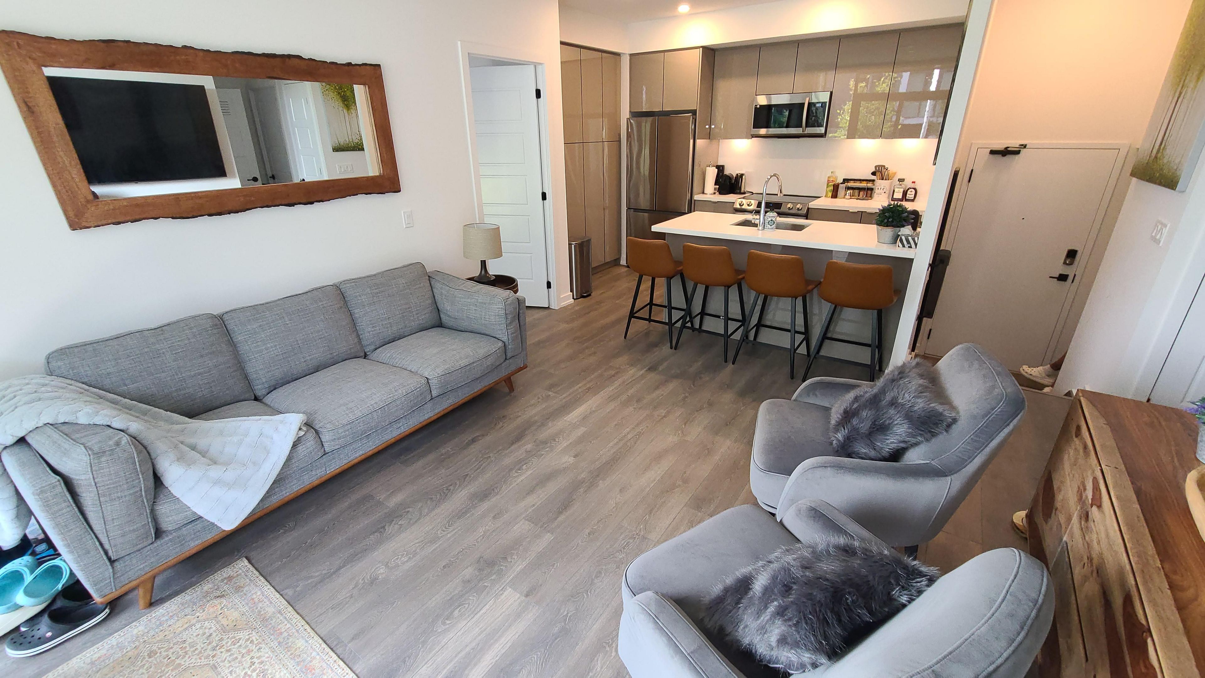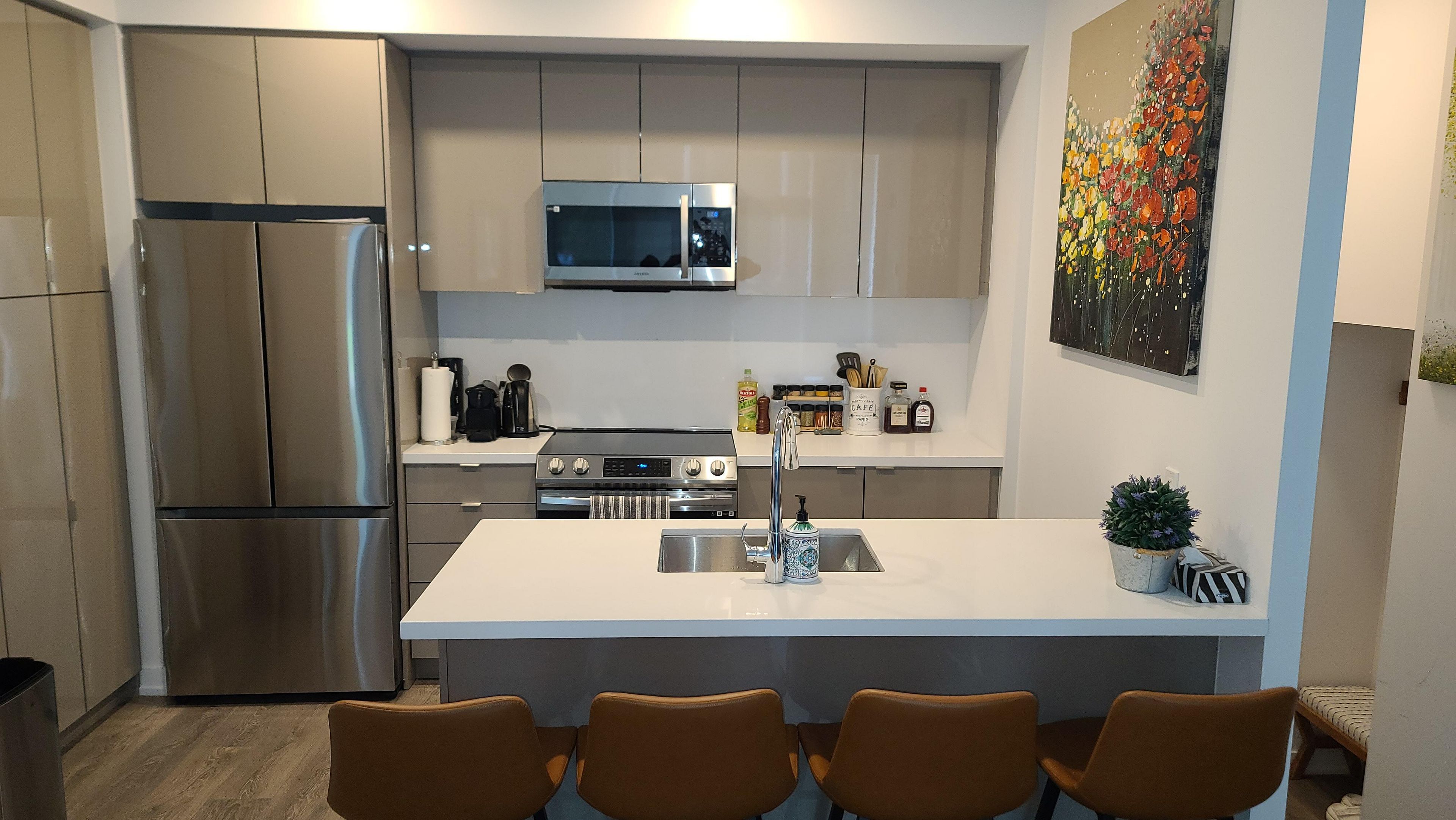 • Fully furnished two-bedroom, two-bathroom unit with stylish finishes.