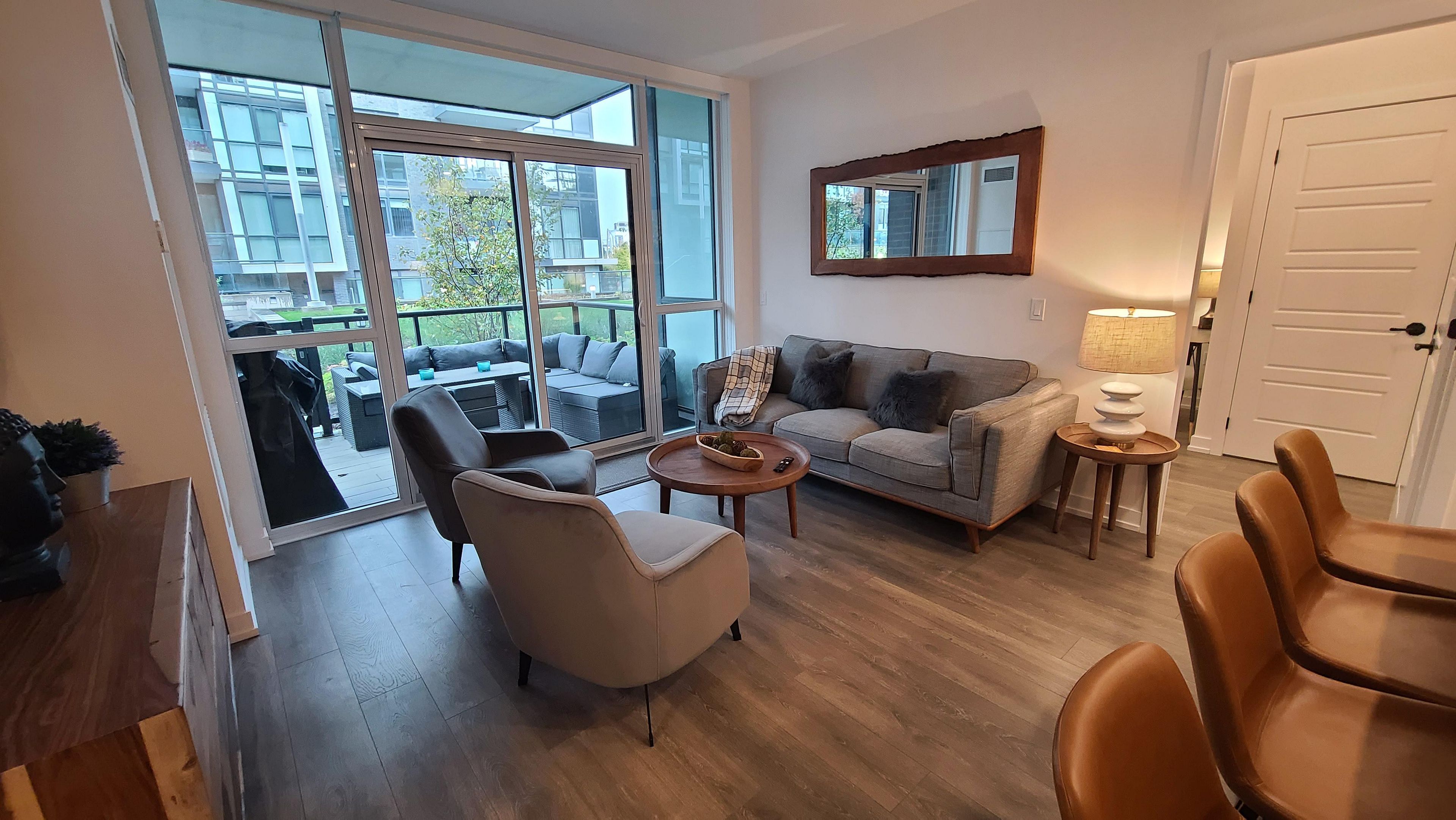 Step into luxury living at friday harbour resort. This premium ground-level garden walk-out suite at high point offers a bright, open living space featuring 10-foot ceilings, large windows, and a seamless transition to a spacious outdoor living and dining area. This fully furnished two-bedroom, two-bathroom unit is designed with stylish finishes throughout, including custom walk-in closets with organizers and upgraded blinds. The property also includes one underground parking space conveniently located near the suite. As a resident of high point, you will have access to premium amenities such as pools, hot tub, lounge areas, dog spa and more. Experience the friday harbour lifestyle with unparalleled comfort and convenience, featuring direct garden access to the boardwalk, pier, restaurants, starbucks, lcbo, lake club, and farmers' markets. This unit is fully furnished. Free internet. Utilities extra-hydro/water/gas- one bill from innpower. Available april 18th onwards for short term rentals only.
