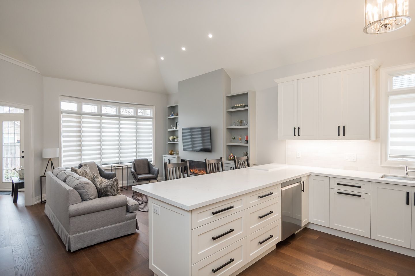 Newly renovated from top to bottom in 2024, this stunning bungaloft in one of millcroft's most serene enclaves is completely turn-key. Enjoy spacious main floor living with hardwood flooring, smooth ceilings, pot lighting, upgraded fixtures, designer hardware, and a custom electric fireplace with millwork surround. Soaring lofted ceilings and expansive rear windows fill the home with natural light, creating a bright and welcoming atmosphere. The custom kitchen features white cabinetry, quartz countertops, a custom hood vent, all stainless steel appliances (2024), and an oversized island with breakfast bar seating. The front den is the perfect space for a home office, quiet retreat, or guest room. The main floor primary suite includes a beautifully renovated ensuite with a custom glass shower, double vanity, designer tile, and access to a private sunroom. The professionally finished lower level adds valuable living space, upgraded 3-piece bathroom, vinyl flooring, and a large storage area, all waiting for your personal touches. Additional highlights include a double car garage, parking for four vehicles, a spacious front patio, open balcony accessible from the loft bedroom, main floor laundry, and a gas bbq hookup. Ideally located just steps to top-rated schools and parks, and minutes to the 407, qew, and appleby go, 4155 stonebridge cres. Offers true lock-and-leave living.
