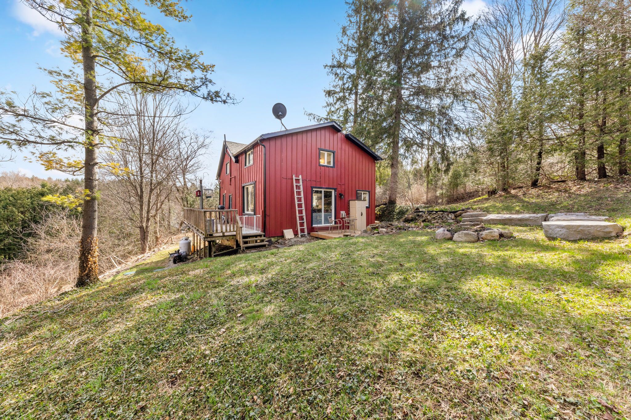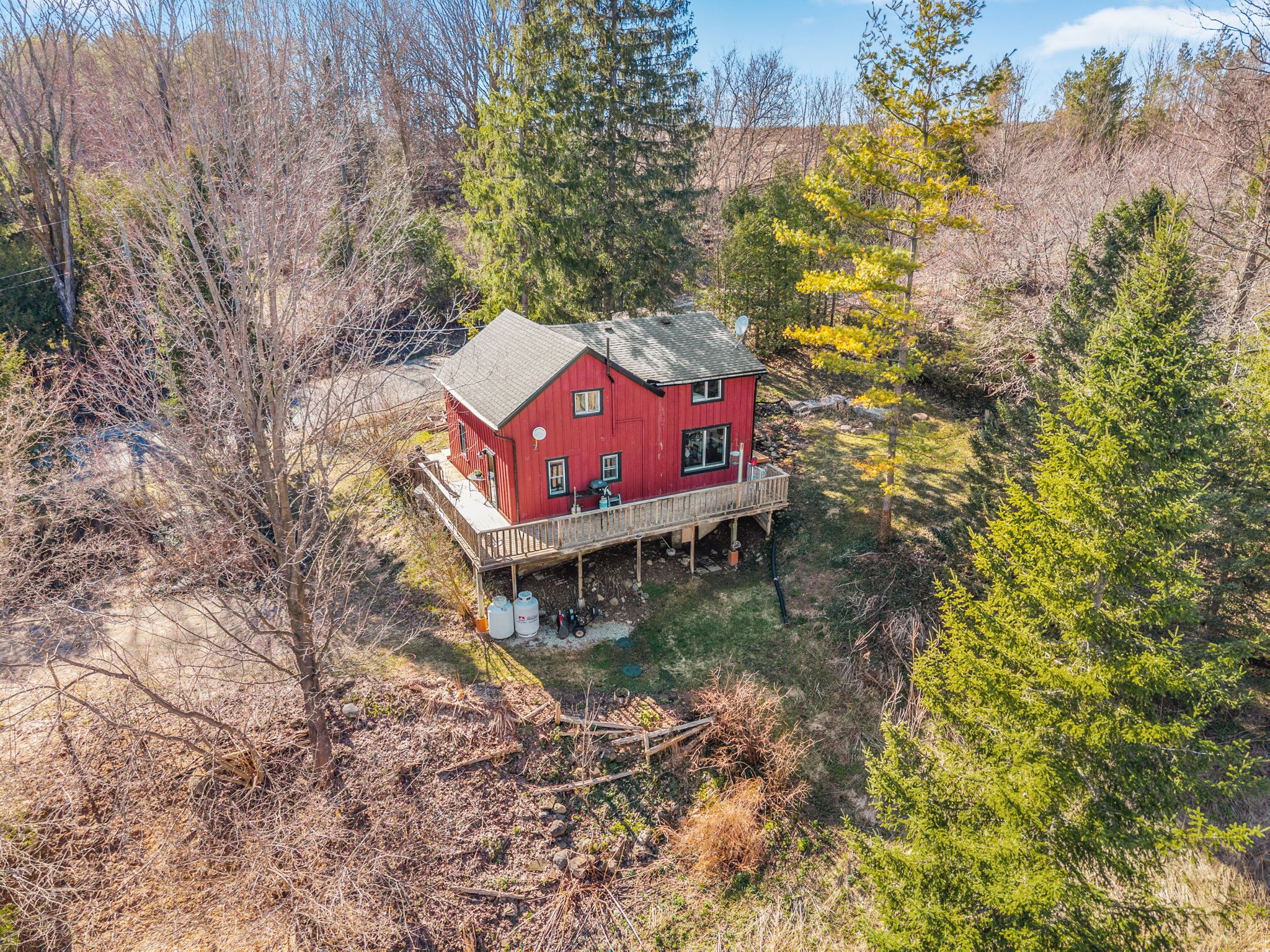Countryside retreat set on nearly 3/4 of an acre in the charming village of redwing - close to ski hills, beaches, golf courses and an extensive network of cycling routes and hiking trails. Enjoy your morning coffee from your wraparound porch overlooking mature trees and beautifully established peonies, lilacs, and wildflowers. This storybook home features rustic elements including exposed beams, board and baton siding and a practical open concept main floor, while maintaining modern-day comforts including a newer dishwasher, propane fireplace, large kitchen island & ro water treatment. The main level offers a convenient mudroom entry and a large kitchen area open to the living and dining areas plus a 3-piece bathroom with laundry which adds to the home's functionality. Upstairs, you'll find three comfortable bedrooms plus a versatile den-ideal for a home office, nursery, or additional storage-along with a well-appointed 3-piece bathroom featuring a relaxing soaker tub. You'll never tire of watching a great diversity of migratory birds from your oversized windows in the living and dining area - filling the home with an abundance of natural light. The unfinished basement offers excellent storage space, including room for gardening equipment and cold storage, with easy access from both the mudroom and exterior. Home is serviced by a septic system (2019), a drilled well, on-demand boiler with radiant heat on the main floor, hydro, telephone and los internet. Whether you're sipping your morning coffee on the porch, exploring nearby trails, or simply enjoying the tranquility of the countryside, this home offers a serene escape where every day feels like a retreat.