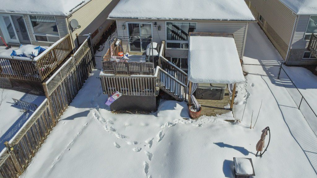 • Multi-tiered deck overlooks a fully fenced backyard, great for kids and pets.
