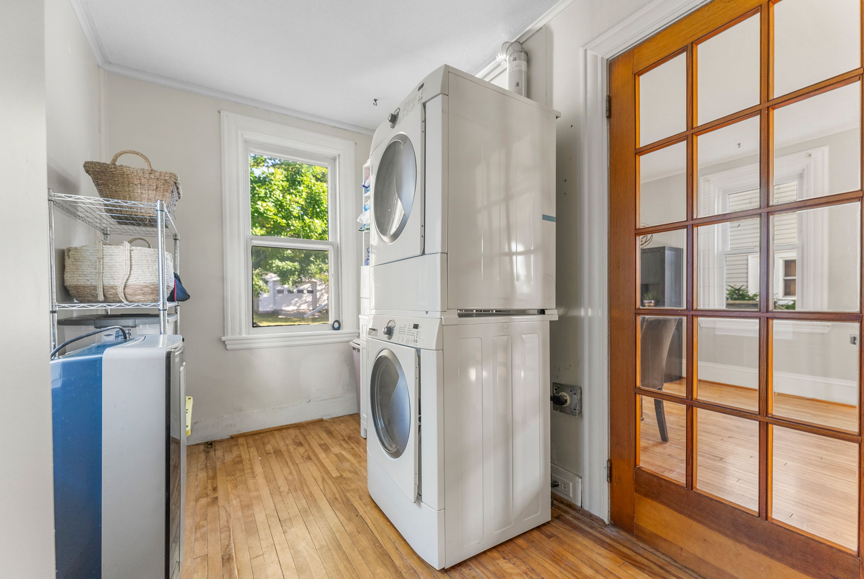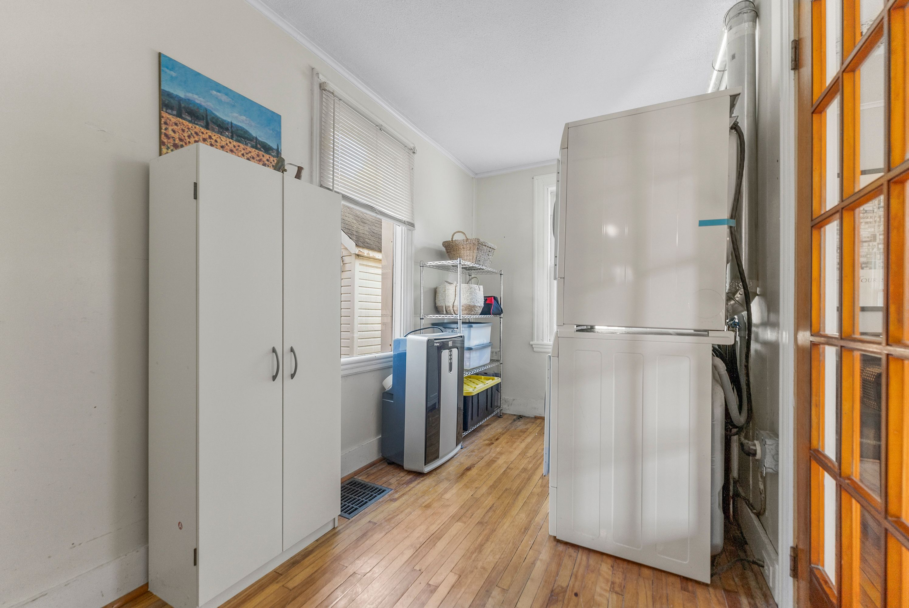 • Original hardwood floors and cozy woodstove enhance the living space.