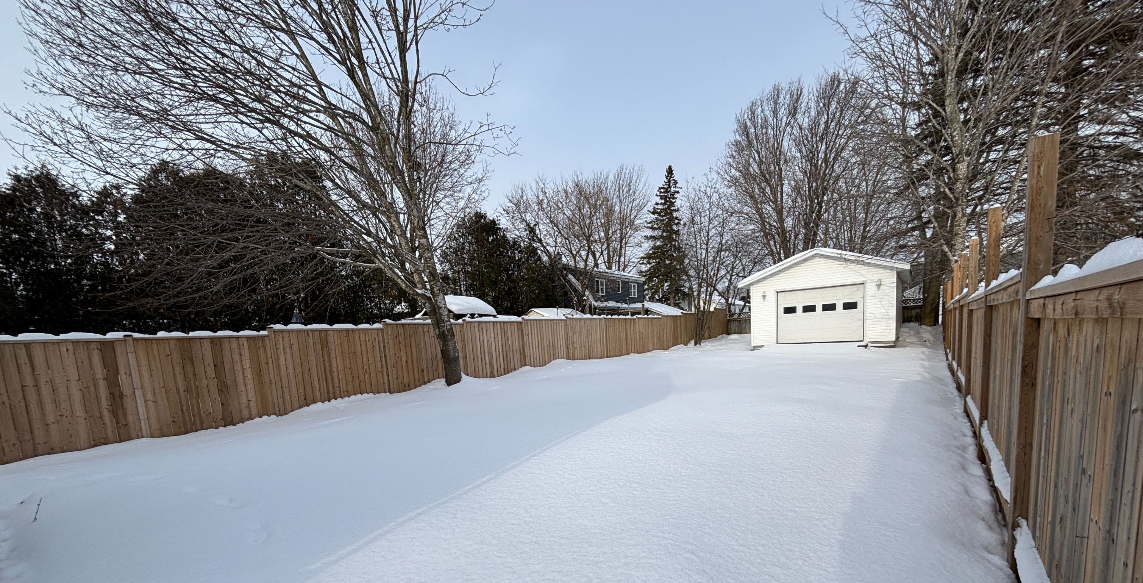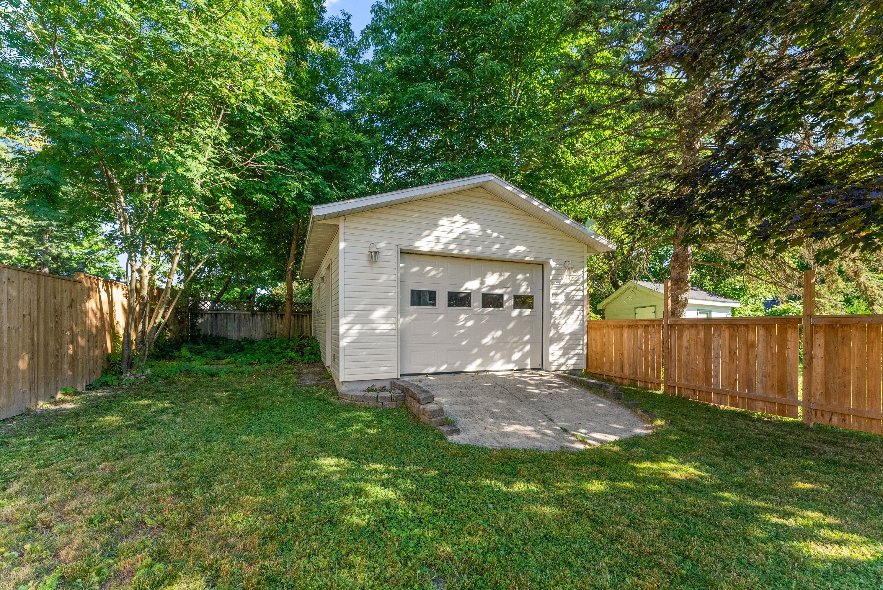• Spacious fenced yard and oversized detached garage for workshop use.