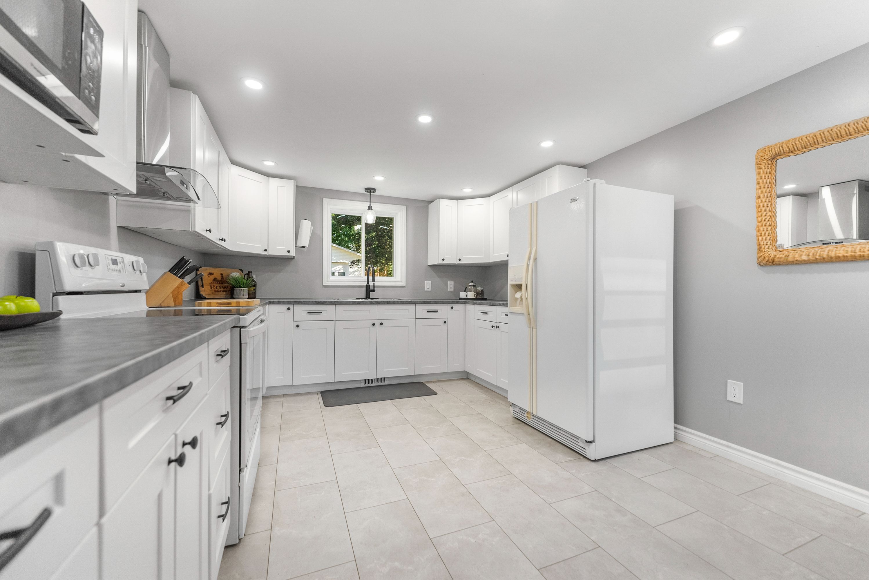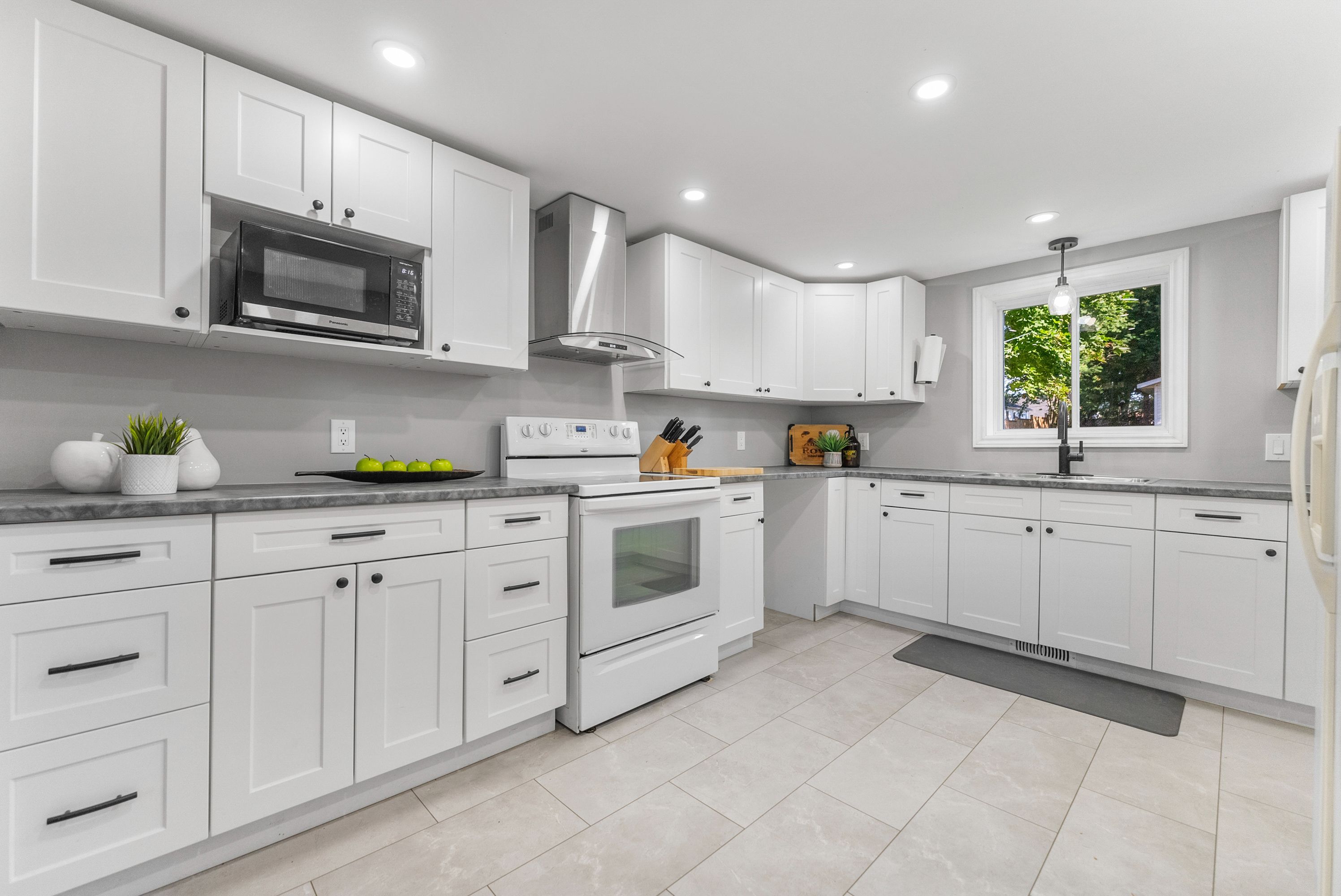• Bright, updated kitchen with extensive cabinetry and tasteful countertops.