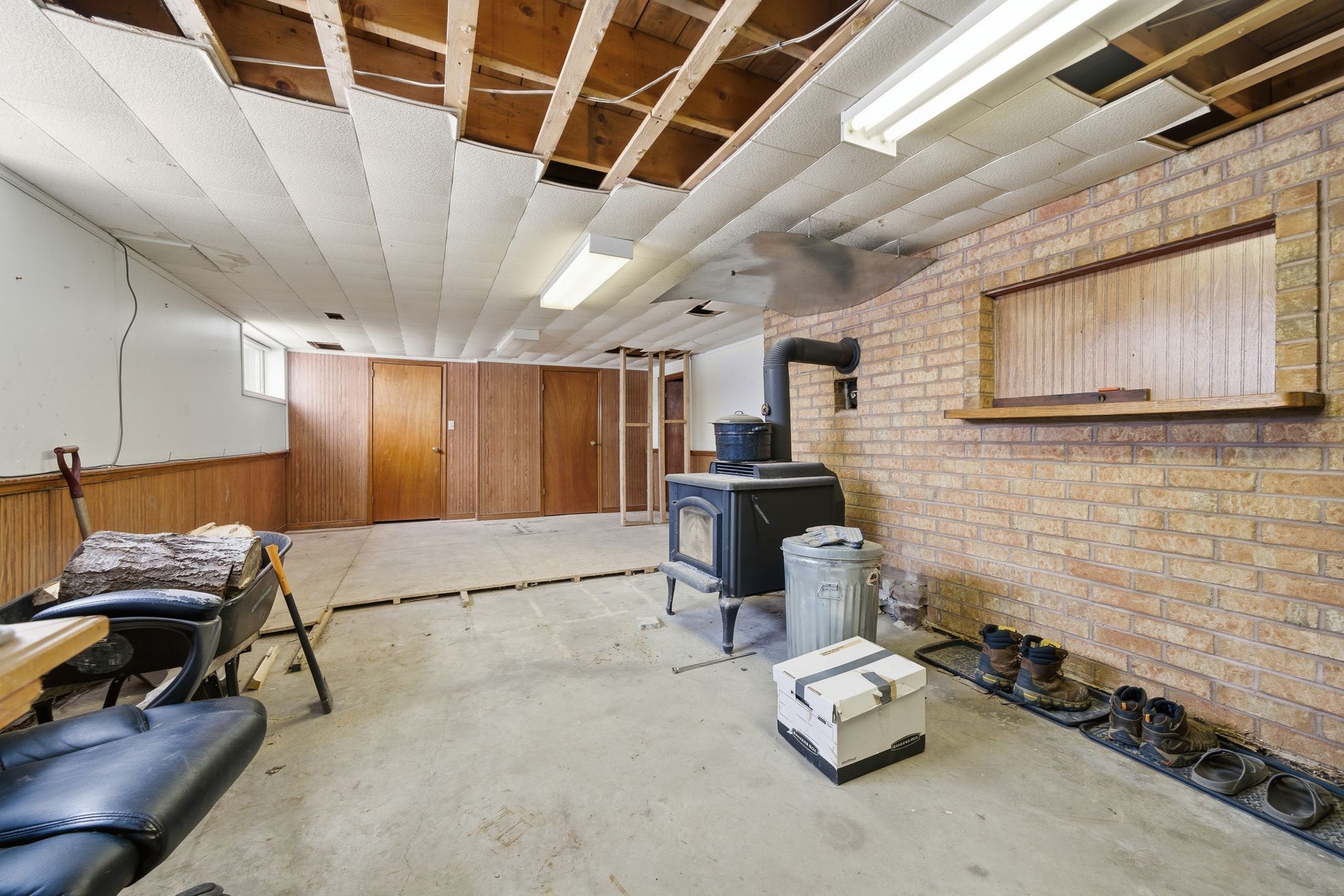 • Flexible space with wood stove, perfect for a sitting area or playroom.