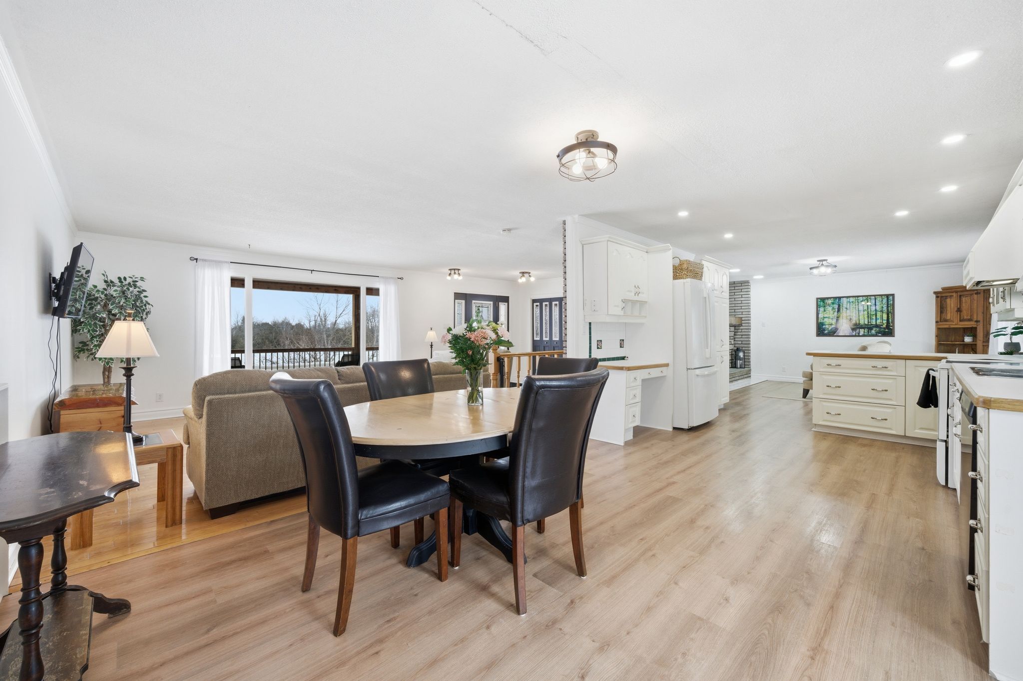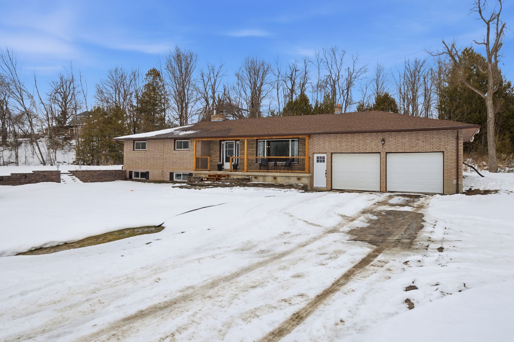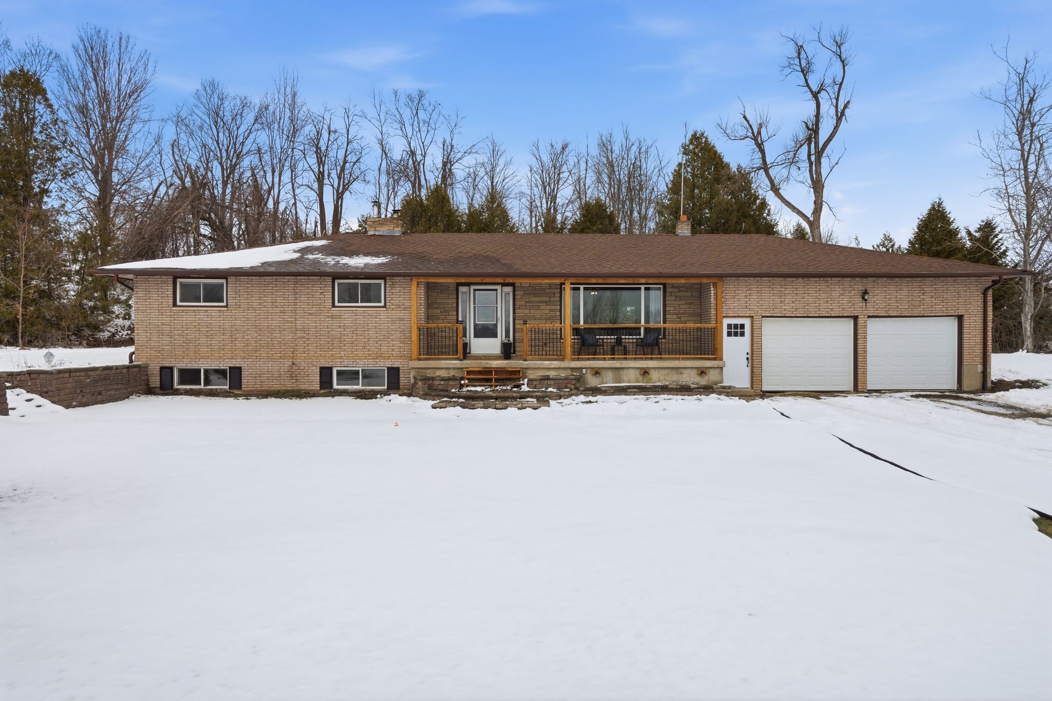 Welcome to 416 gospel road with 1,720 sq ft of finished living space. Spacious foyer from elevated covered front porch invites you into this well thought out plan with generous room sizes & an abundance of natural sunlight throughout. Tiled entry with coat closet is open to the south facing living room & connected to large dining area with double french doors to rear. Plenty of kitchen cabinetry with stained glass feature adding character & charm to this functional workspace. The peninsula island overlooks a great flex space offering many use options. Currently enjoyed as a comfortable sitting area with warm airtight wood stove & sliding doors to take in this peaceful view. The function continues into the stylish large mudroom providing another closet, main floor laundry & access from the 520 sq ft attached double garage with 12' ceiling height. Rear yard access here + bright office with more closet space. This area would also accommodate storage or a great children's play room. Three bedrooms on this main floor nicely accommodates family living with large updated full bath. The unfinished basement provides an additional 1,512 sq feet if you're looking for a project and a way to potentially add equity in your home investment. Heating options here with the forced air propane furnace and a large basement wood stove, often used to heat the home. Additional basement mechanicals include a water softener, uv with filter & 200 amp breaker panel. The exterior grants beautiful countryside landscape views with yard space for entertaining and play. The property continues into the rear wooded area, adding more privacy and separation or relax on the front porch & watch the deer pass by. Ideally situated just 15 minutes to the heart of campbellford or the quaint village of stirling & within convenient proximity to the trans canada trail offering rural recreational access.