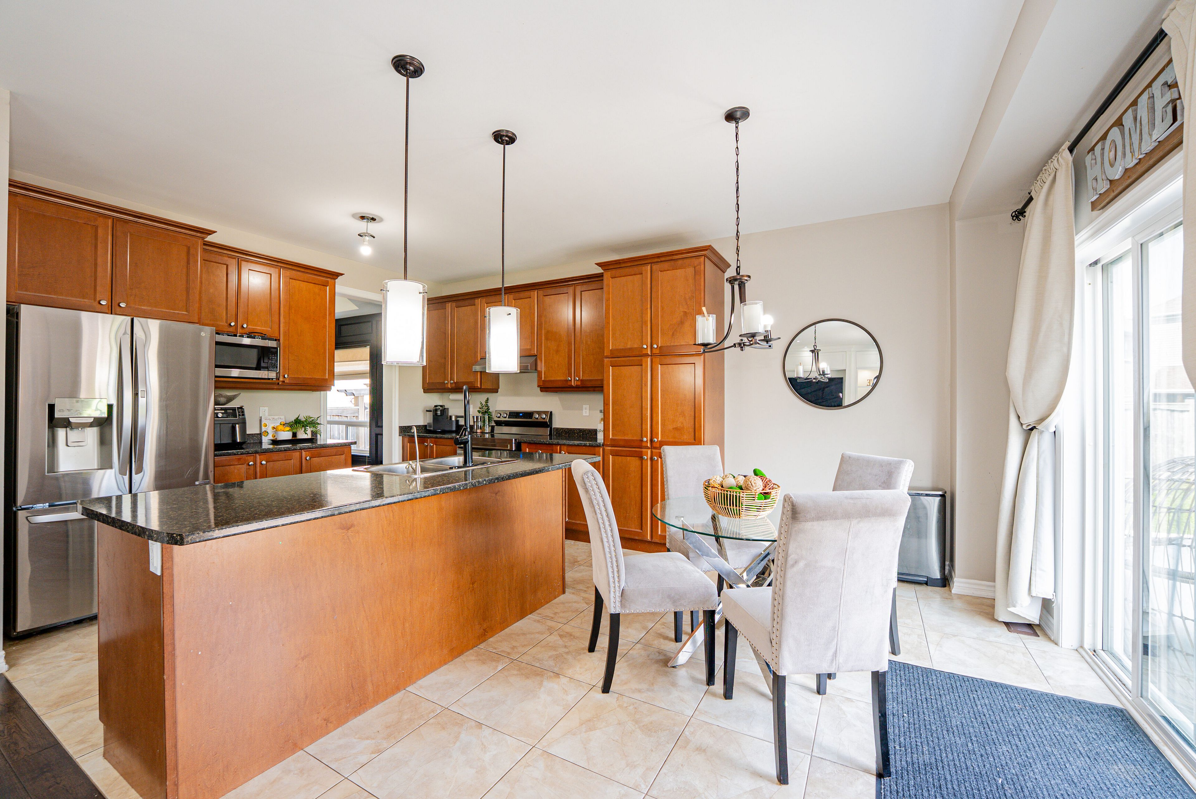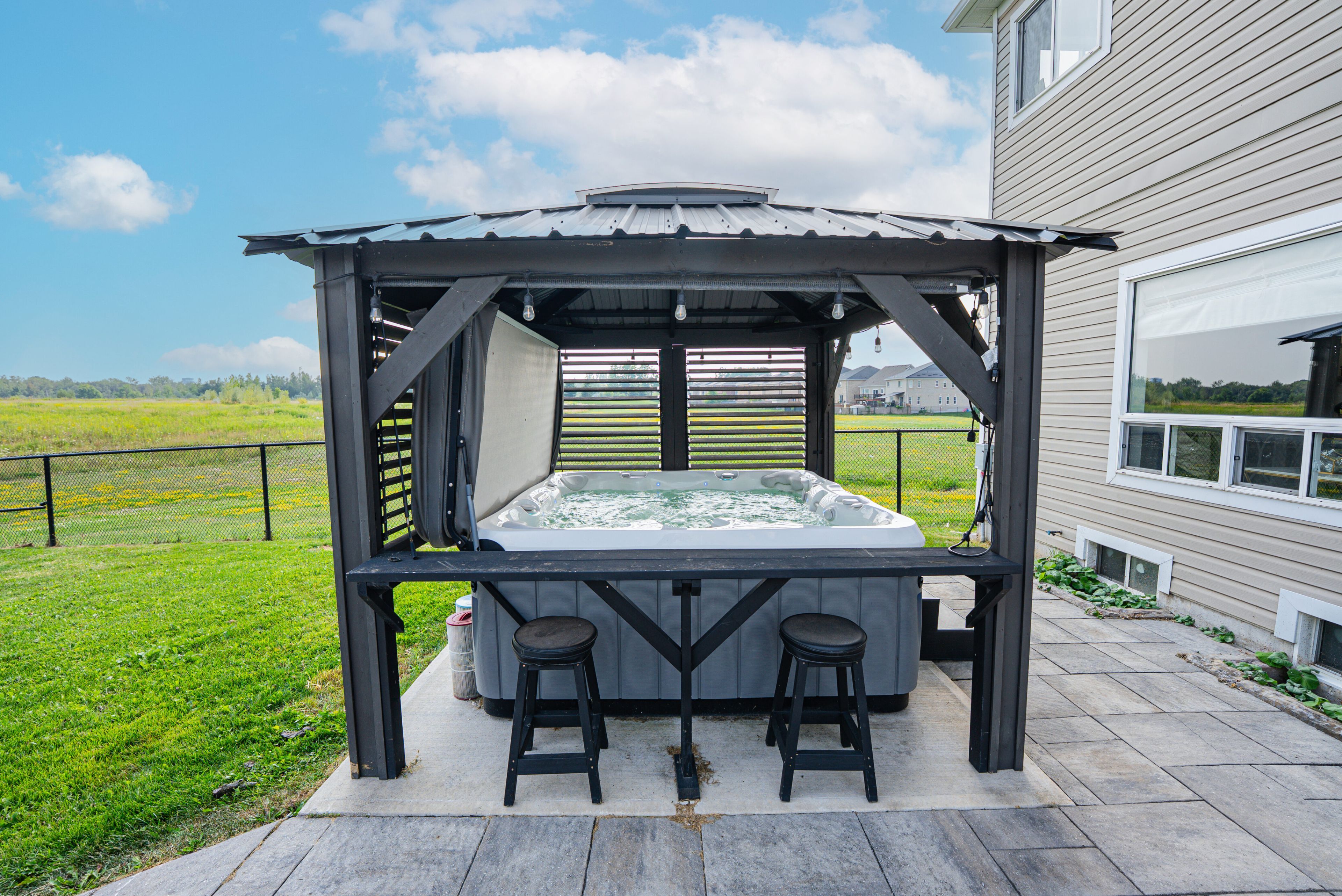 • Beautifully landscaped backyard with outdoor kitchen and hot tub.