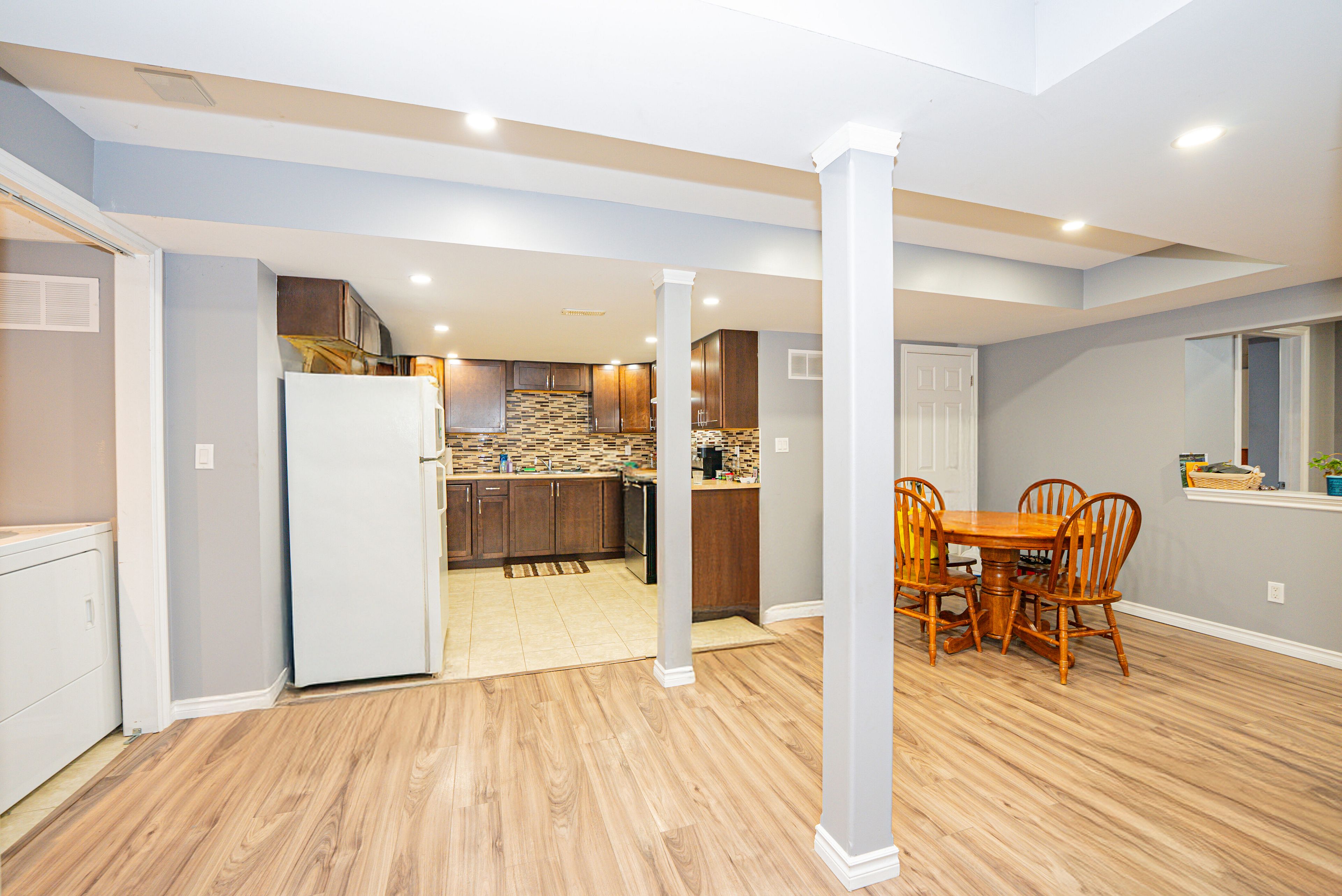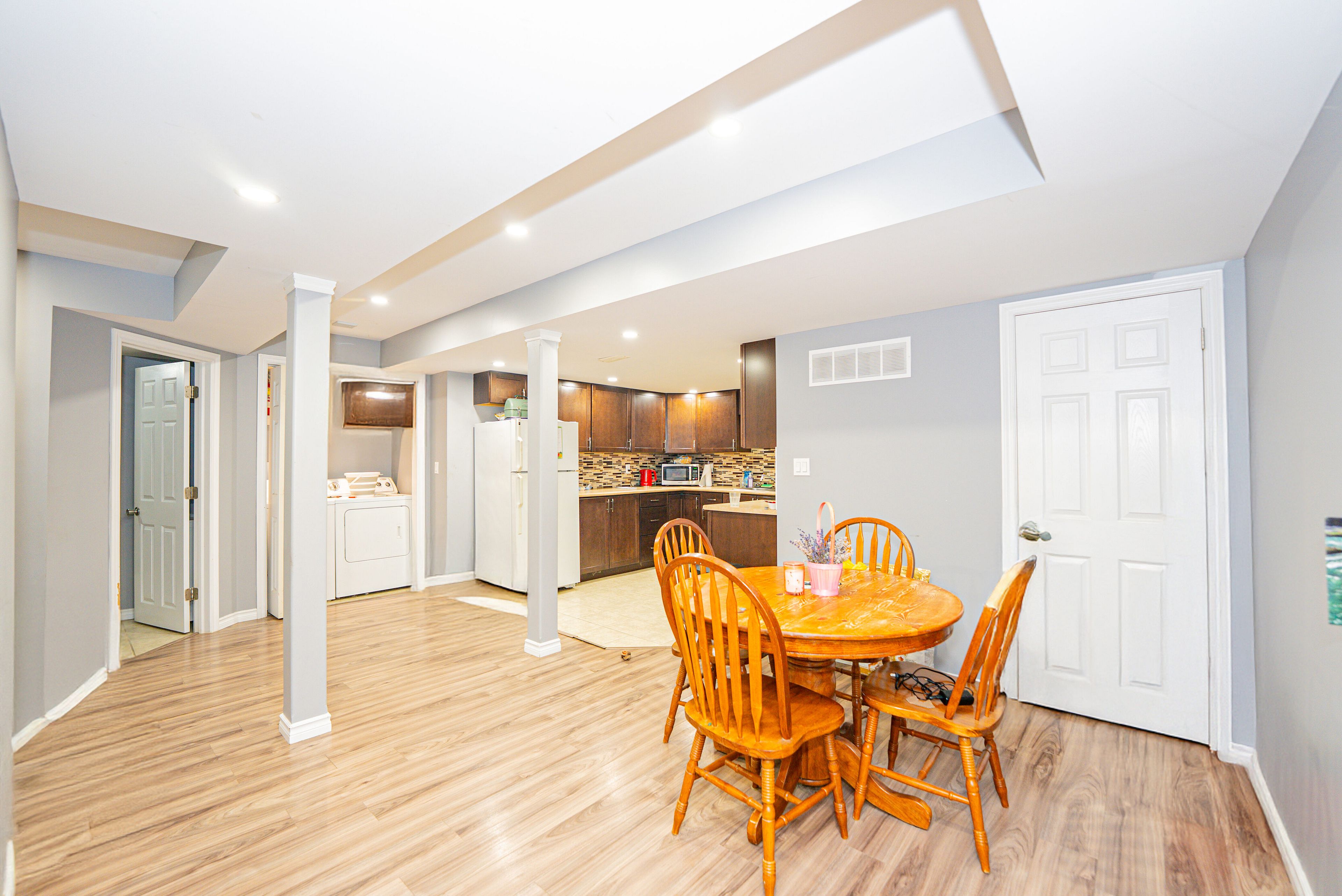 • Fully finished basement with in-law suite and separate living spaces.