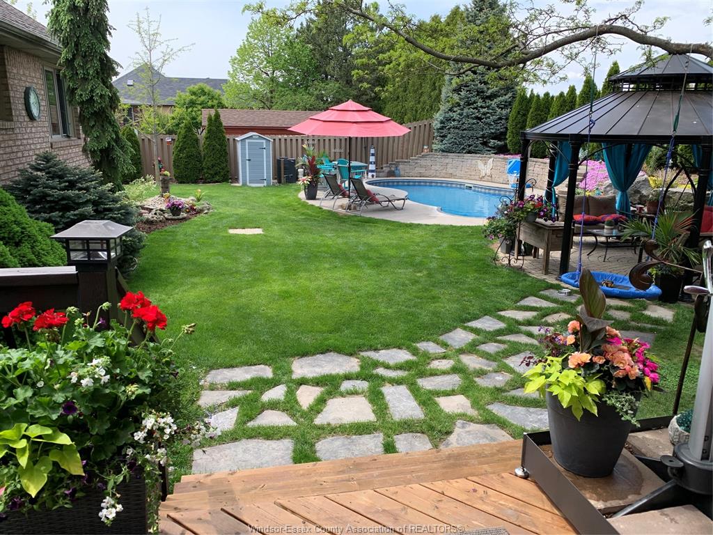 • Private outdoor oasis with heated saltwater pool, gazebo, and lounging areas.
