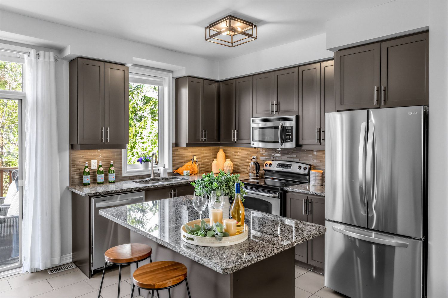 Bright and spacious, beautifully upgraded branthaven luxury townhome located in the desirable millcroft community. This home offers 3 bedrooms and 2. 5 bathrooms with a functional and stylish layout. The main level features a versatile third bedroom with a 4-piece bathroom, convenient inside access to the garage, and a walkout to the private backyard wooden deck. The second level offers 9-ft ceilings and an open-concept living and dining area with hardwood floors and pot lights, creating a bright and welcoming space. The spacious kitchen includes a dinette area, centre island, stainless steel appliances, granite countertops, and extended cabinetry, with a walkout to an elevated private deck-perfect for entertaining or enjoying morning coffee. Convenient third-level laundry includes a front-load washer and dryer. The upper level also features an updated bathroom with a separate tub and shower, upgraded lighting throughout, and generous bedroom space. Wood staircases, engineered hardwood flooring, and the main level deck were updated, along with an upgraded powder room vanity. The home backs onto a private, treed common area, providing added privacy and a peaceful setting. Low condo road maintenance fees. Situated in burlington's highly sought-after millcroft neighbourhood, known for its tree-lined streets, executive homes, and the renowned millcroft golf course. Close to top-rated schools, tansley woods community centre, shopping, restaurants, and with easy access to highways 403, 407, and the qew, appleby go for convenient commuting to toronto, oakville, and hamilton.