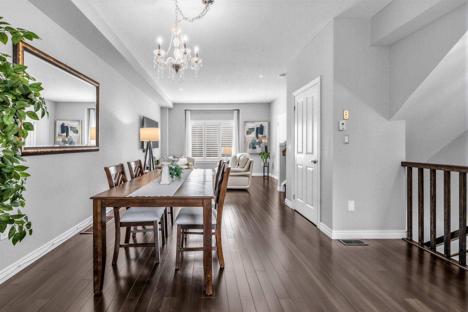 • Open-concept living and dining area with hardwood floors and 9-ft ceilings.