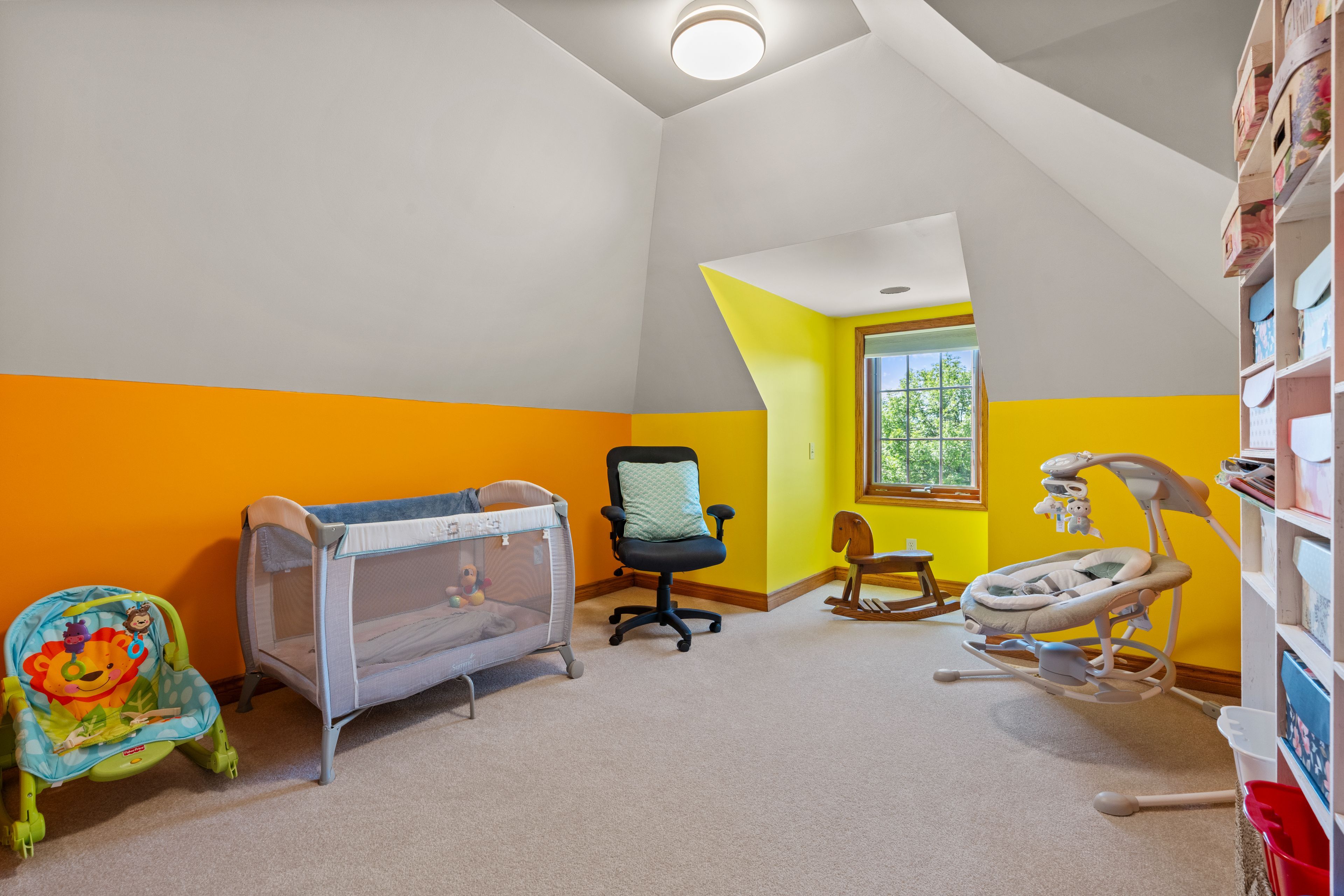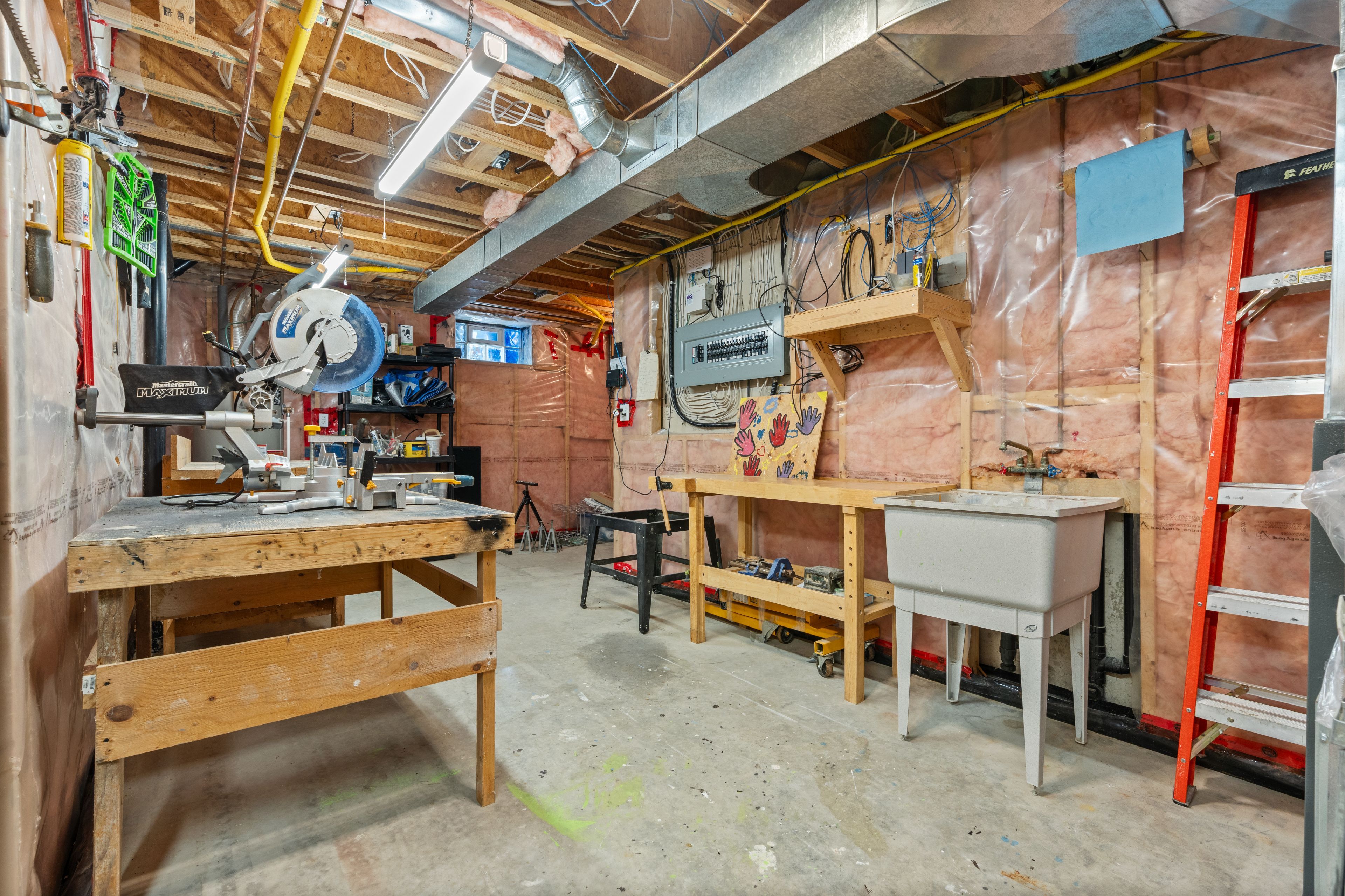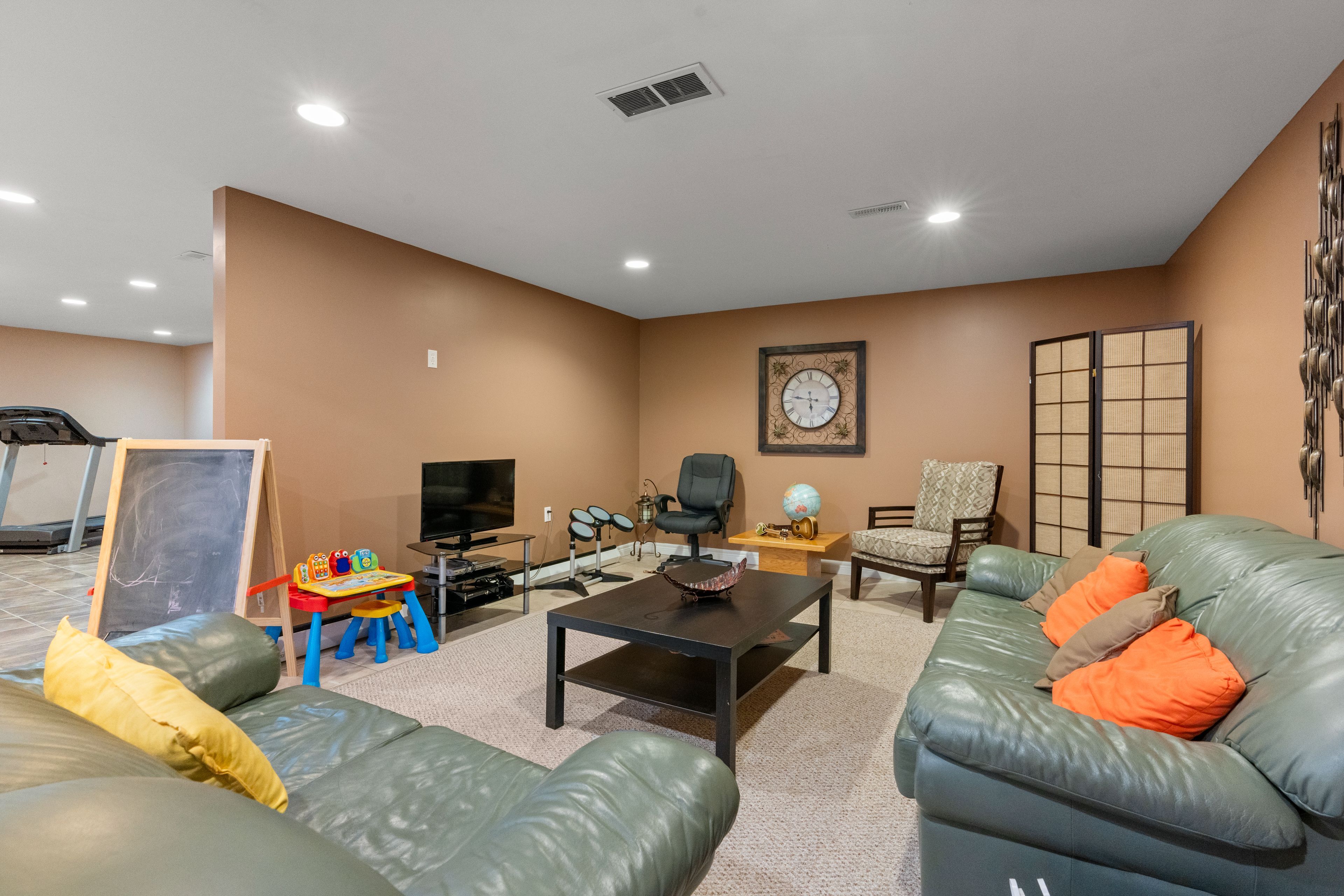• Partially finished basement with recreational space and a gym.