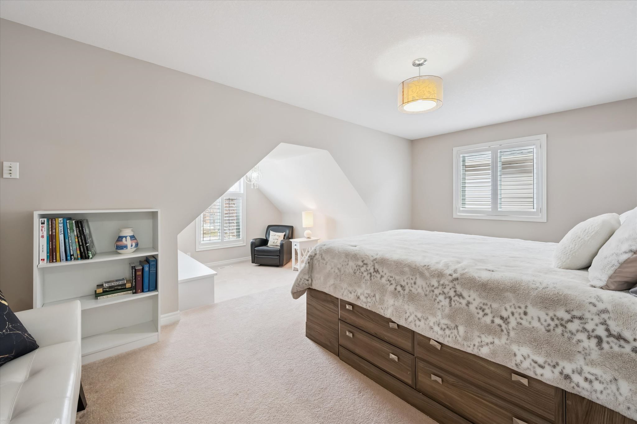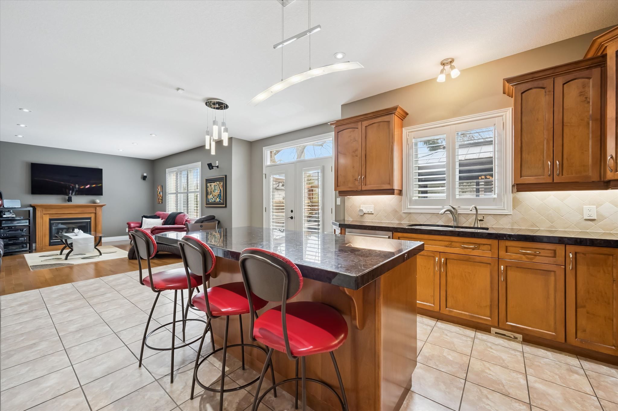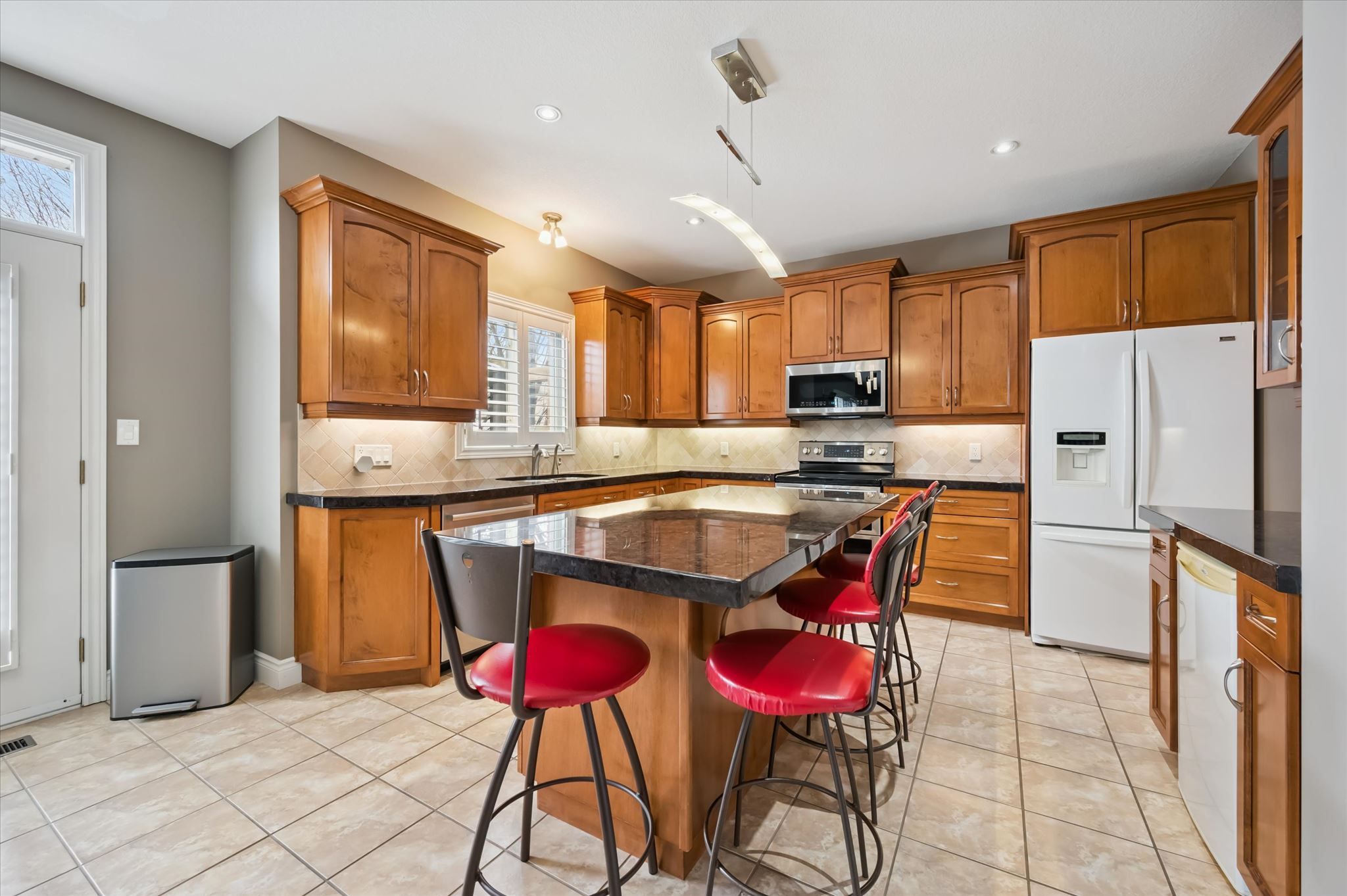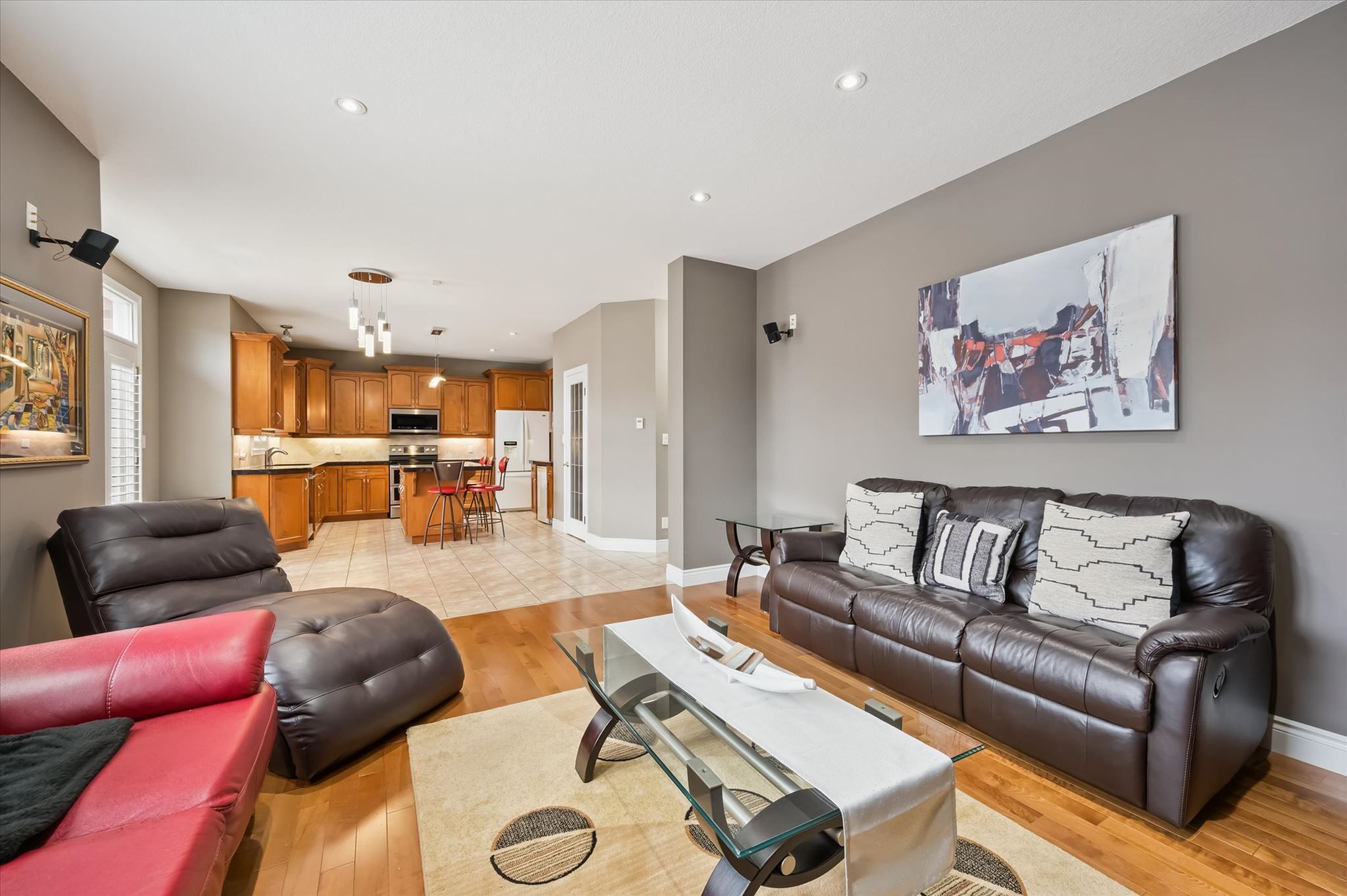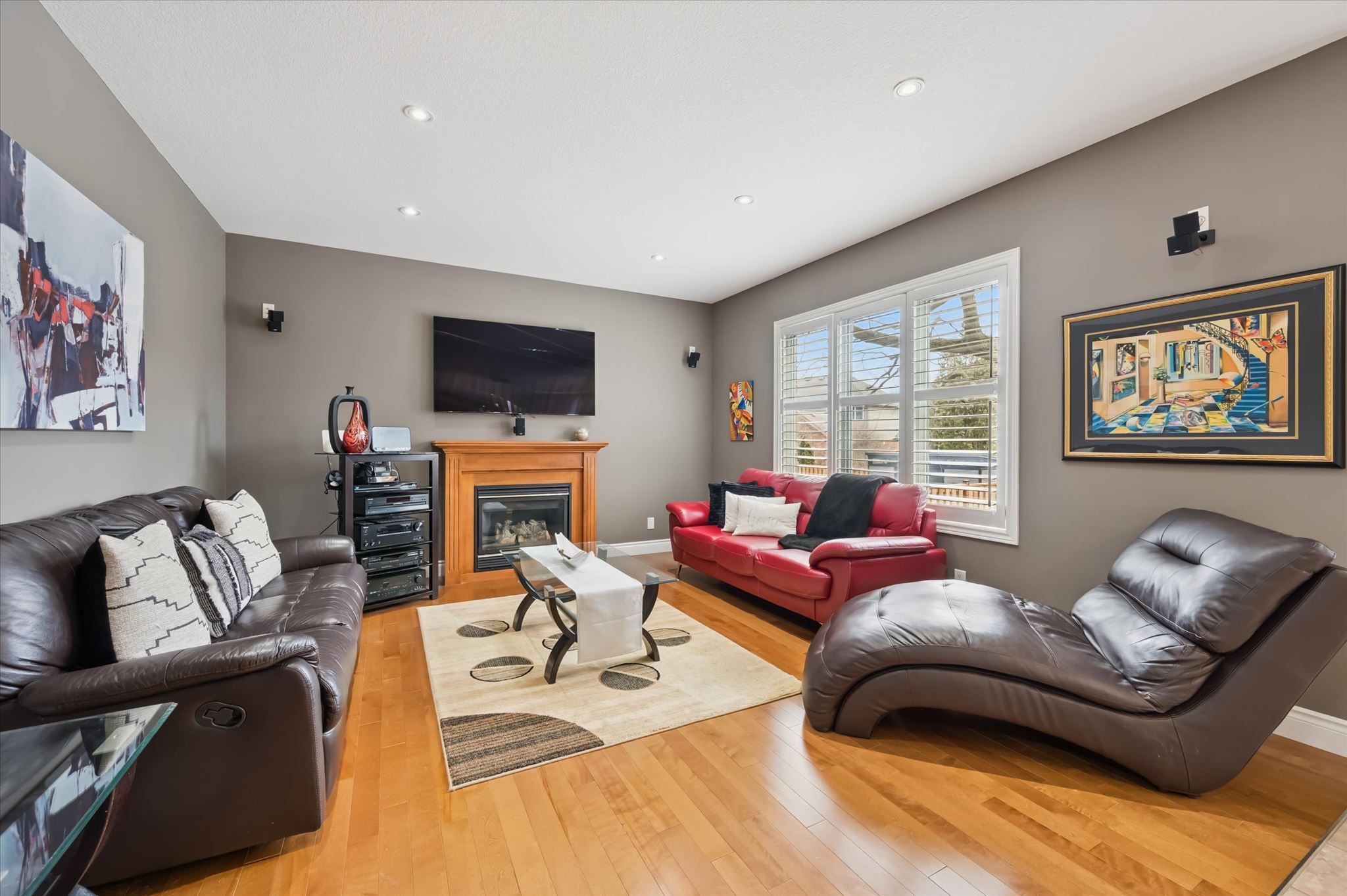 Welcome to 417 palamino place, a well maintained and extensively upgraded home in a highly sought after neighbourhood. Offering 2,768 sq ft of well designed living space, this 4 bedroom property features a main level with hardwood flooring, combined living and dining areas and a separate open concept family room with a fireplace and pot lights. The upgraded kitchen is both functional and refined, complete with granite countertops, centre island, heated floors, and a breakfast area with a walkout to the backyard deck. Built in speakers also extend throughout the main floor, garage, and deck. The upper level offers 4 great sized bedrooms, including a primary with a walk in closet, recessed ceiling, and private 5 piece ensuite. Two additional bedrooms include walk in closets, while the fourth is extra large with a bonus sitting area. The unfinished basement offers a clean, open layout, providing excellent potential for future living space. The garage has also been thoughtfully finished, with durable epoxy flooring and custom cabinetry for organized, functional storage. Extensive landscaping enhances the home's curb appeal, while the private backyard is designed for entertaining, complete with a gazebo and an arctic spa 6 person saltwater hot tub. Ideally situated on a quiet cul-de-sac. 200 amp service. Newer furnace, water softener, and garage door.