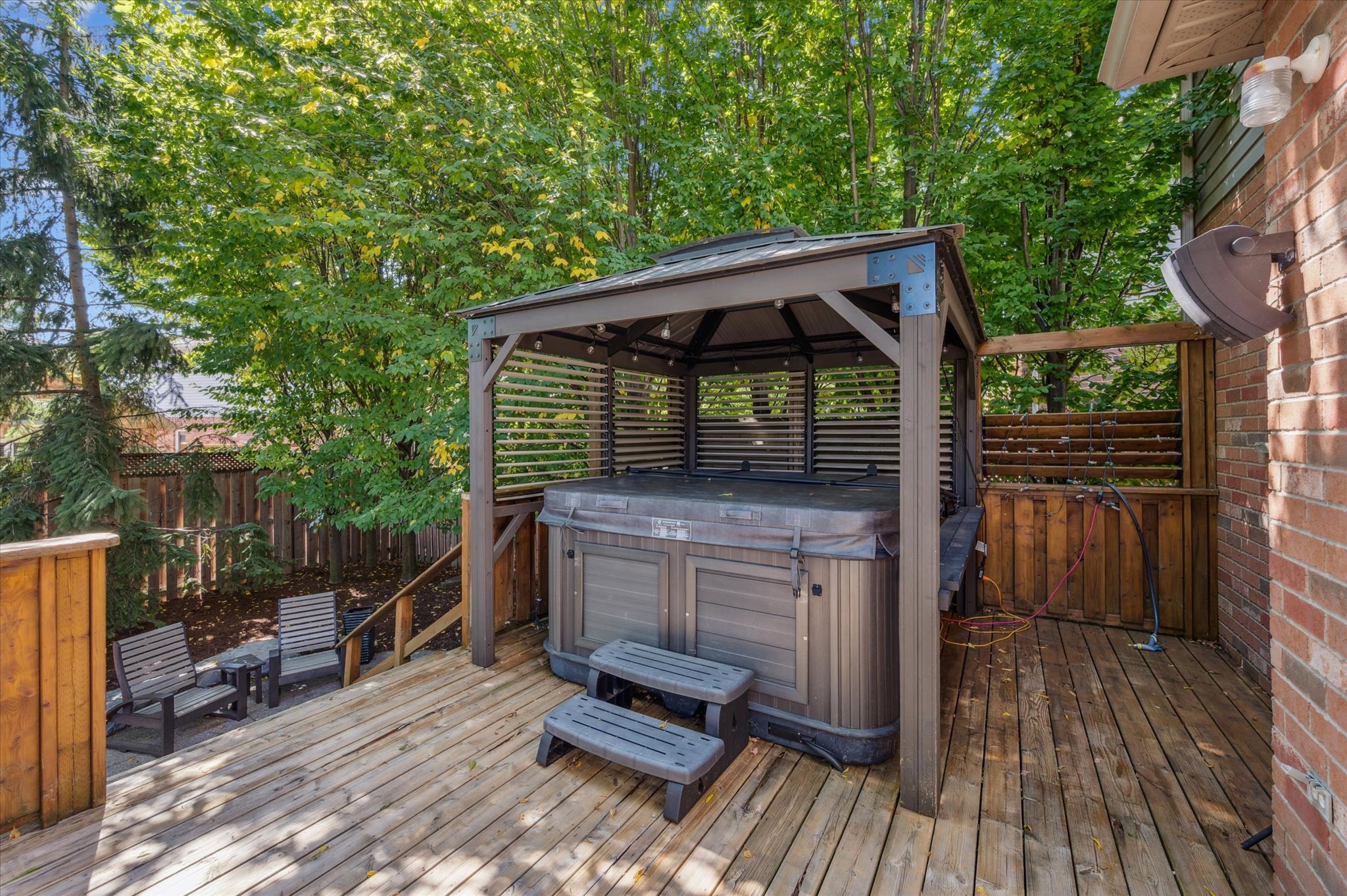 • Private backyard equipped with a gazebo and saltwater hot tub.