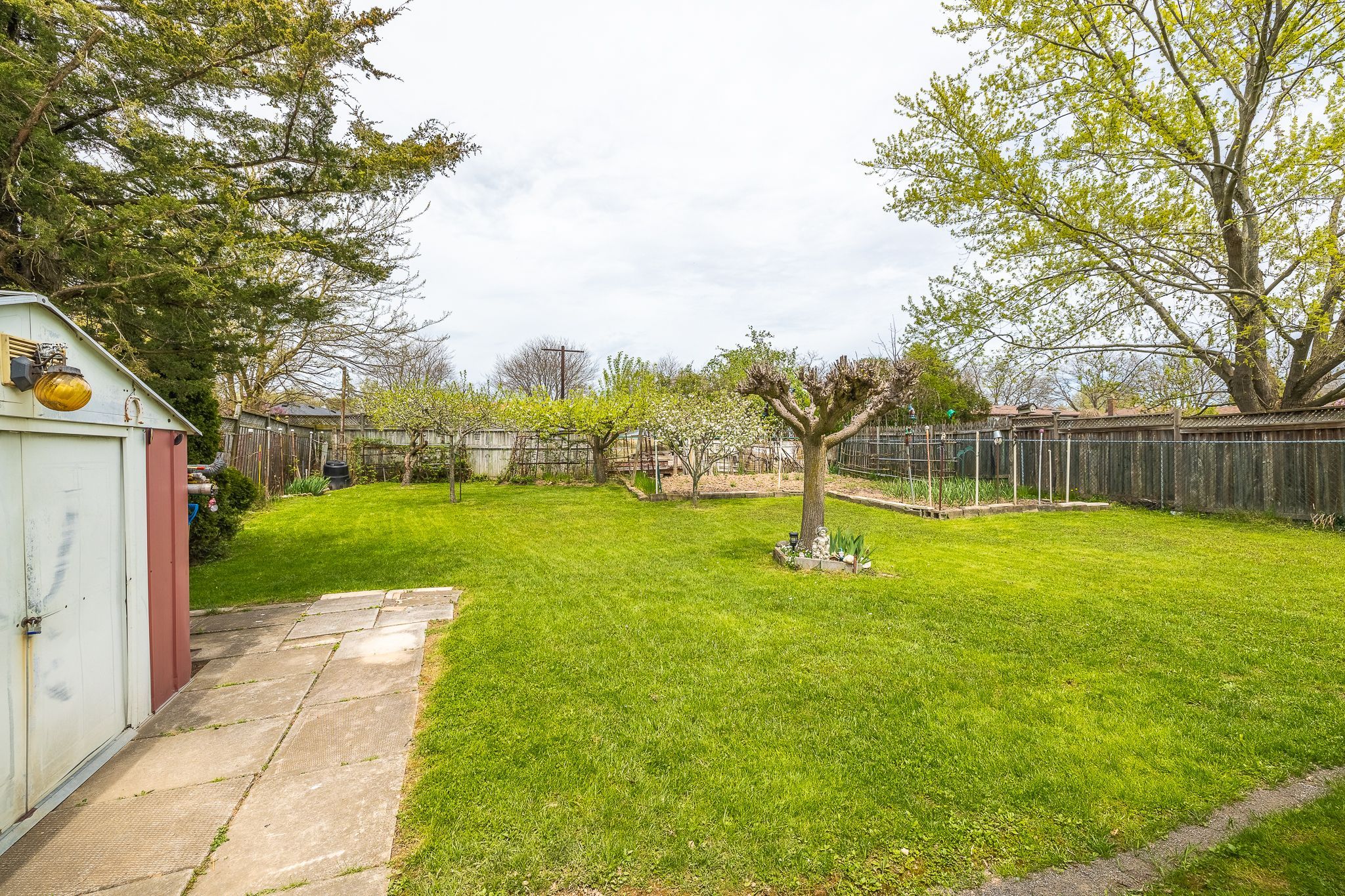 Spacious, meticulously clean 3 bedroom brick/metal siding back-spit with a single attached garage and large rear yard equipped with a vegetable garden. Layout consists of 3 upper level bedrooms, 4 pc bath and extra closets/storage. Main floor features an eat-in kitchen, dining room with built-in cabinets, living room, and a sliding door to a covered concrete patio (9'8" x 13'6") with an entrance to the garage. Lower level includes a second open concept kitchen, rec room with brick gas natural fireplace and 3 pc bath. The lower level has a separate walkout to the beautiful backyard with plenty of green space, huge garden and shed. Includes an extra 560sq. Ft of living space. Basement laundry, workshop storage and cold storage. Shingles replaced in 2019, hot water heater owned, 100 amp electrical. Located in a great neighbourhood! Close to schools, shopping, restaurants, access to qew and much more! Walking distance to shopping, bus stops, etc.. This home is full of character that you don't want to miss!