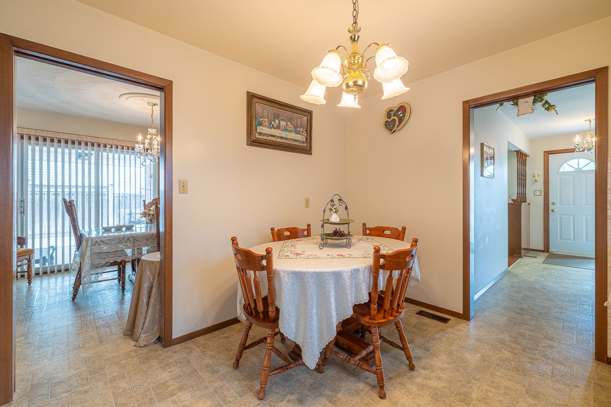 • Main floor includes eat-in kitchen, dining room, and living room.