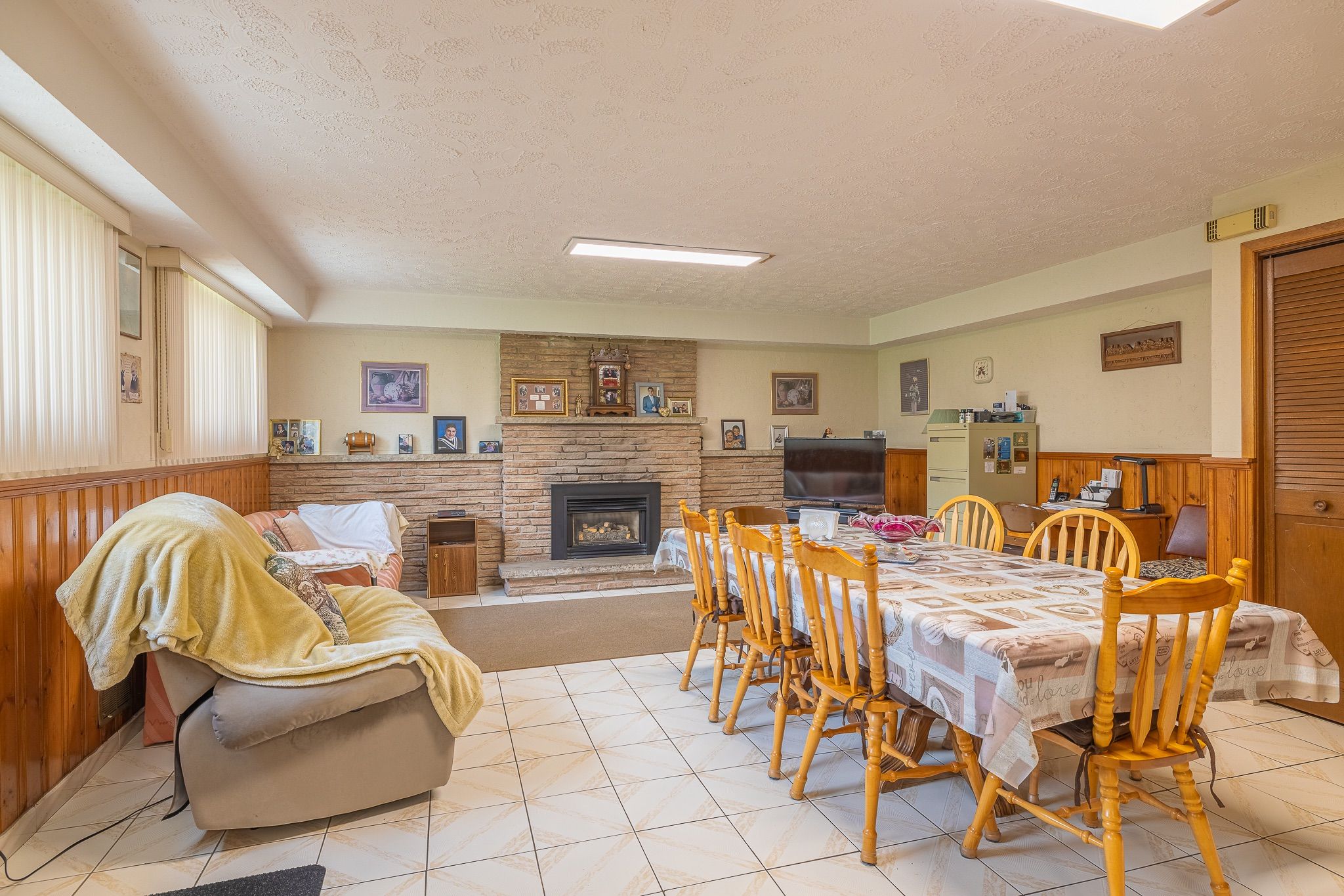 • Lower level offers a second kitchen and rec room with a gas fireplace.