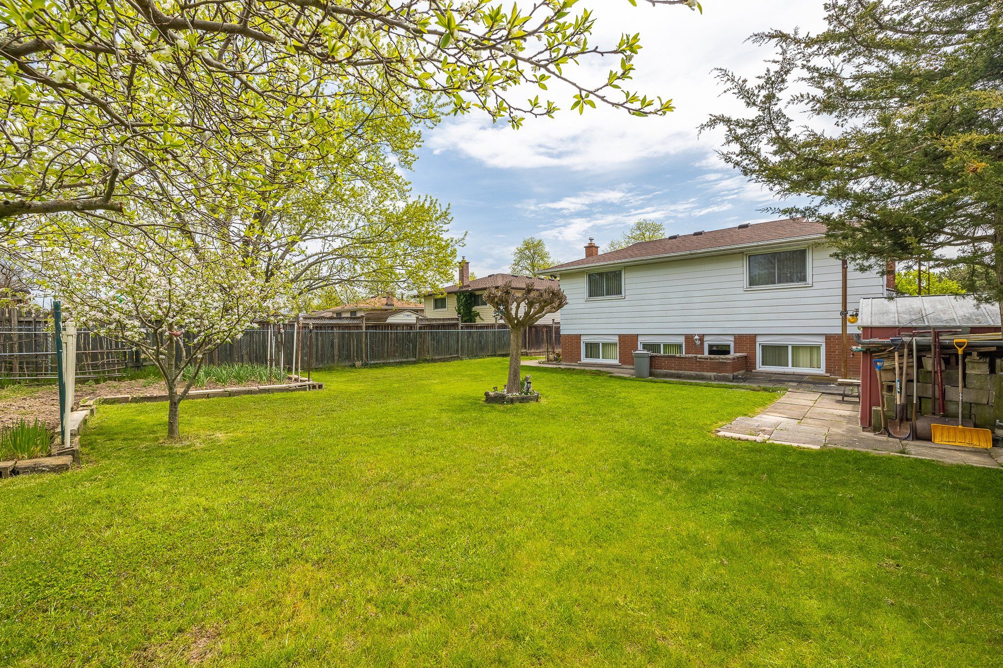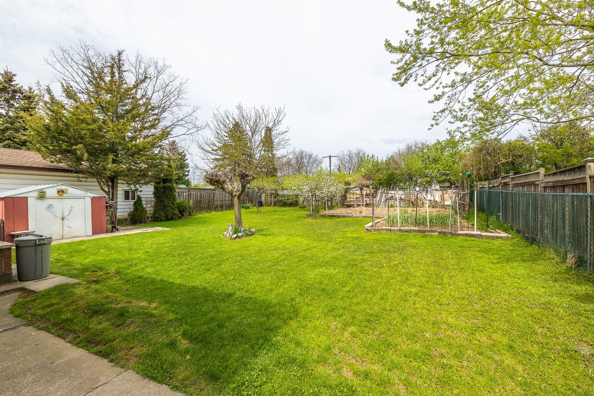 • Large rear yard featuring a vegetable garden and plenty of green space.