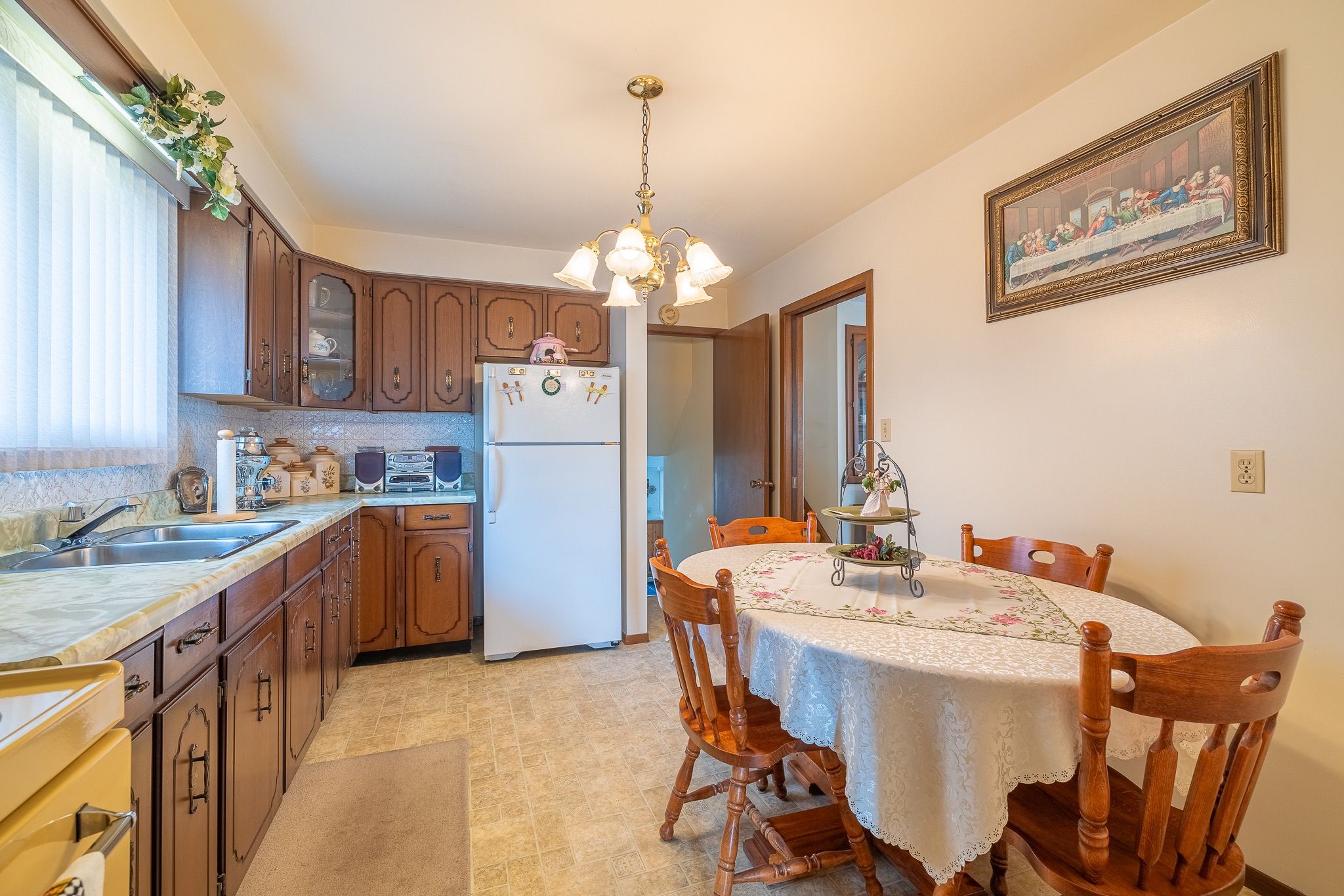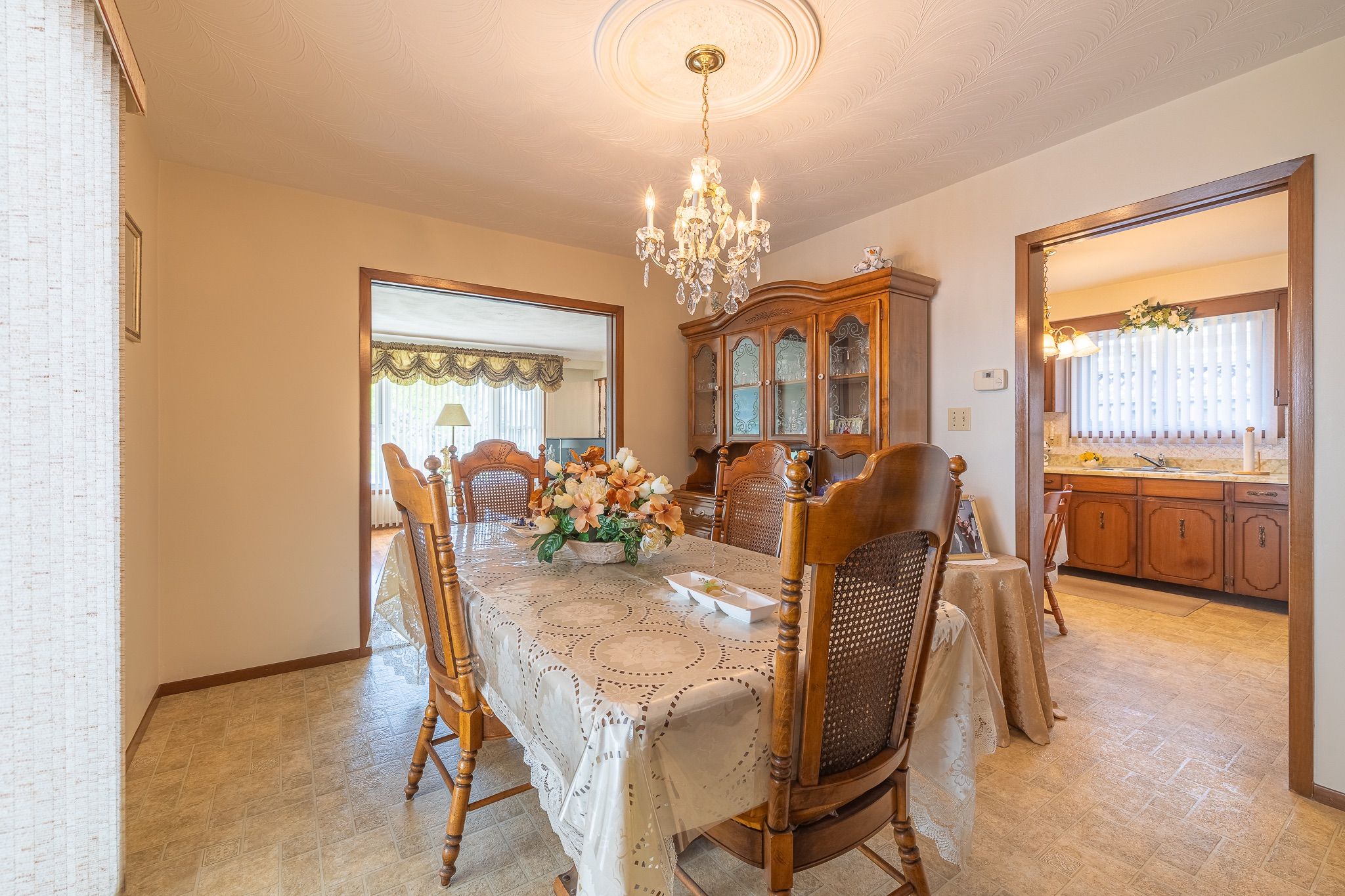 • Main floor includes a cozy eat-in kitchen and dining room with built-in cabinets.