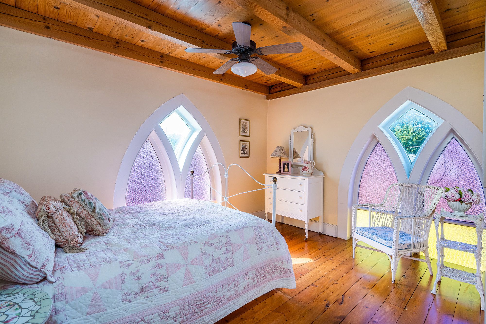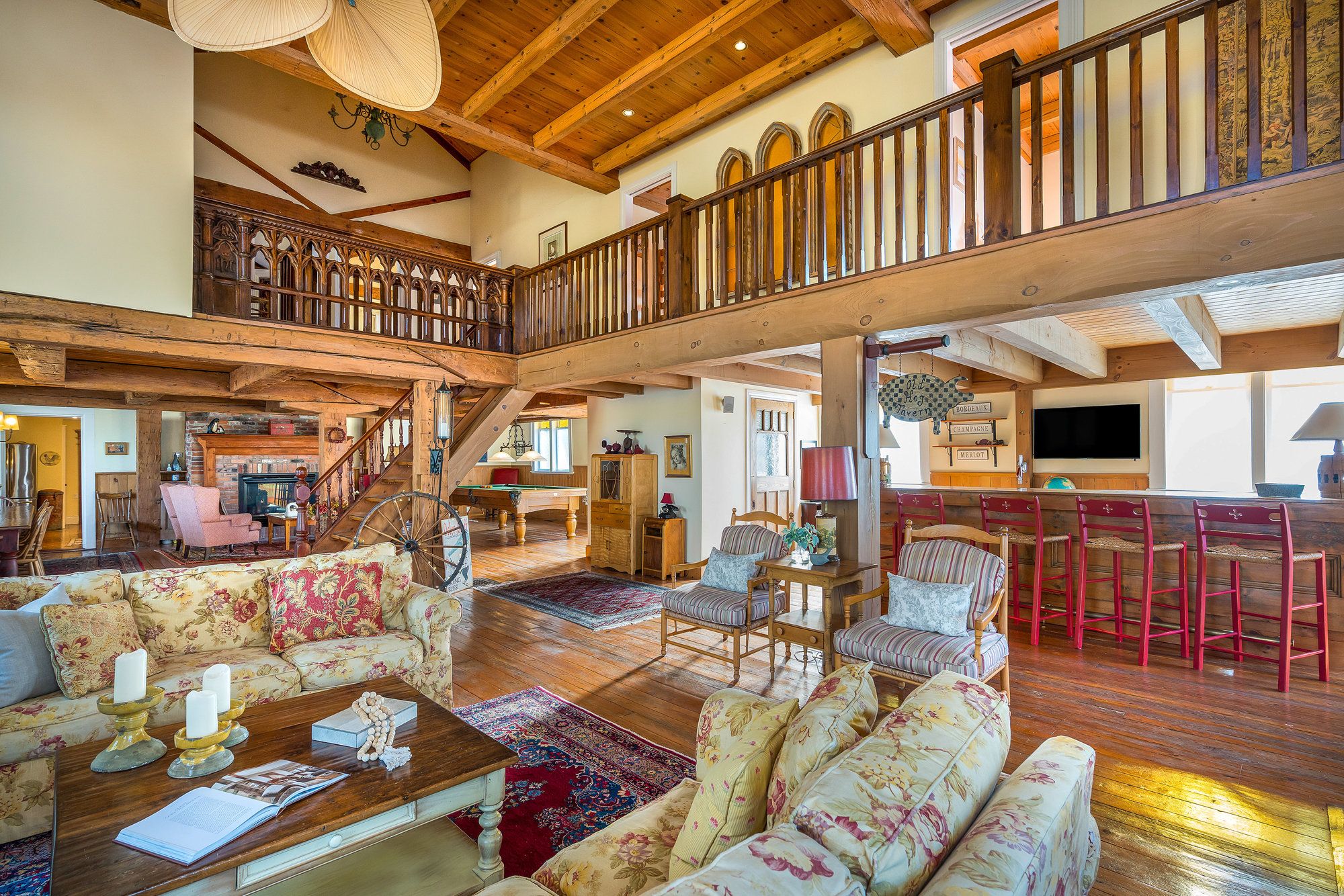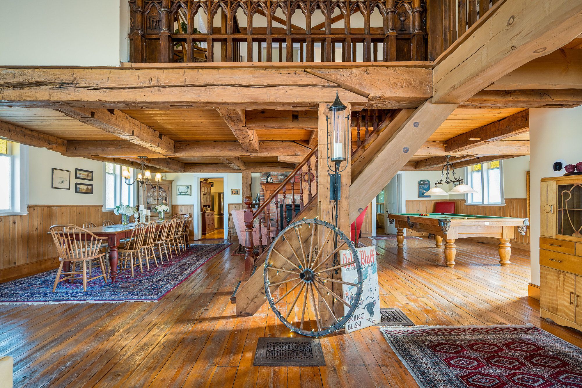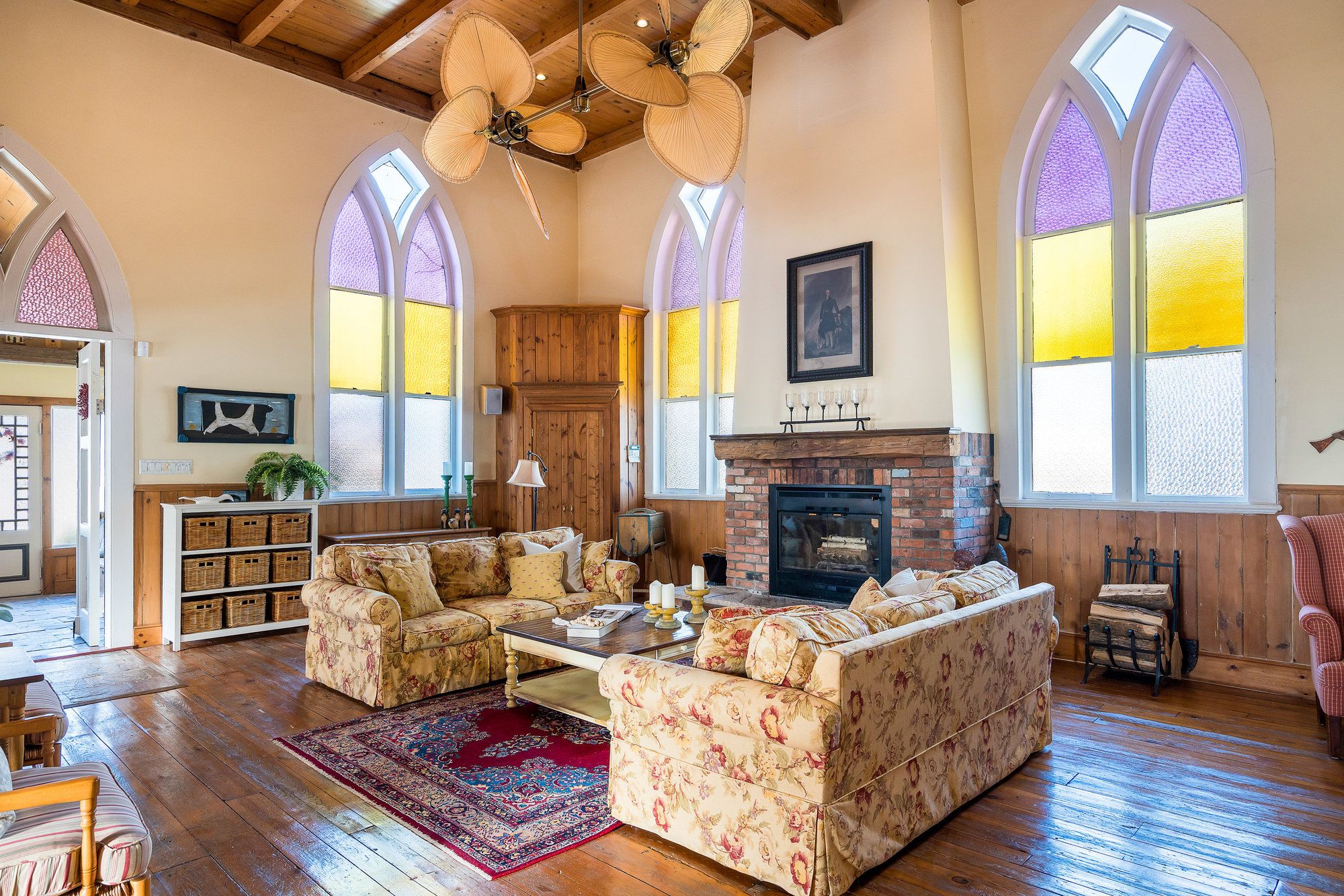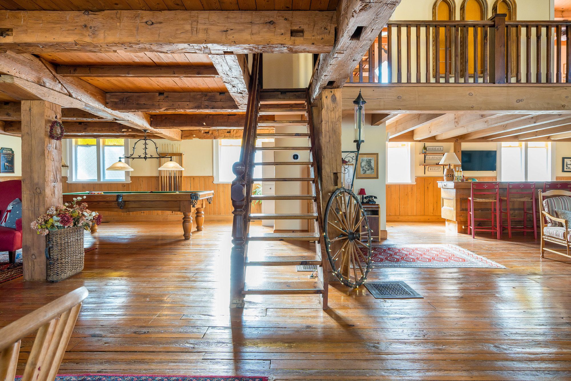 When you step inside this unique, renovated 1897 church, you can't help but imagine the fabulous holidays your family and friends would enjoy here. On the main street of the charming village of nottawa, this is a home meant for gathering. This rare opportunity is absolutely full of thoughtful touches and decor lavished on it by its current owners, and all those touches are included in the sale. Furnishings, linens, rugs, art, lamps, antiques, even the dishes, all come with the house so moving in will be easy. Your family will enjoy the restful and restorative atmosphere of the main floor with the soft light of stained glass. The sprawling living space under post and beam cathedral ceilings has a chalet like feel. It features a primary seating area in front of a wood burning fireplace with a wonderful long and welcoming bar for entertaining. The bar itself was recovered from an old general store. An adjoining space houses another seating area in front of a gas fireplace and a large billiards table. The dining table seats 14 so no card tables will be necessary. Each space is wide open yet beautifully defined with a combination of historic details and new improvements. You will have room for all your guests in the five upstairs bedrooms, all stylishly decorated and all enjoying the comforting glow of stained glass windows. The main floor den has a pull out sofa bed and an ensuite bathroom for additional sleeping quarters. It is a home to wander in, explore, and bask in its warmth and coziness. Outside, a large backyard deck allows space for an oversized bbq and an enormous hot tub, all under a beautiful canopy of mature trees. Multiple sheds for storage and potting make maintenance easy -- and even the garden equipment is included.