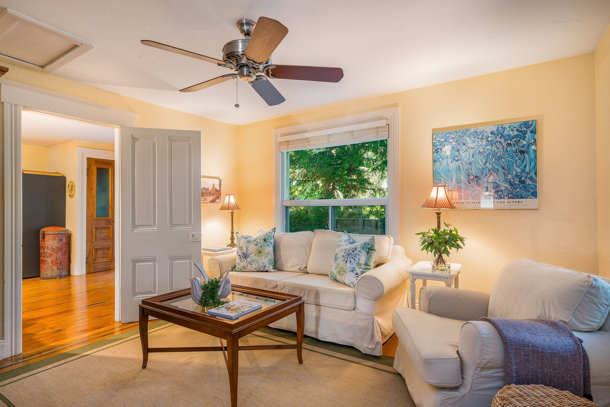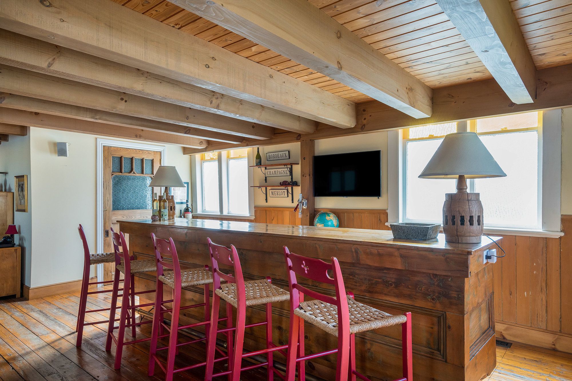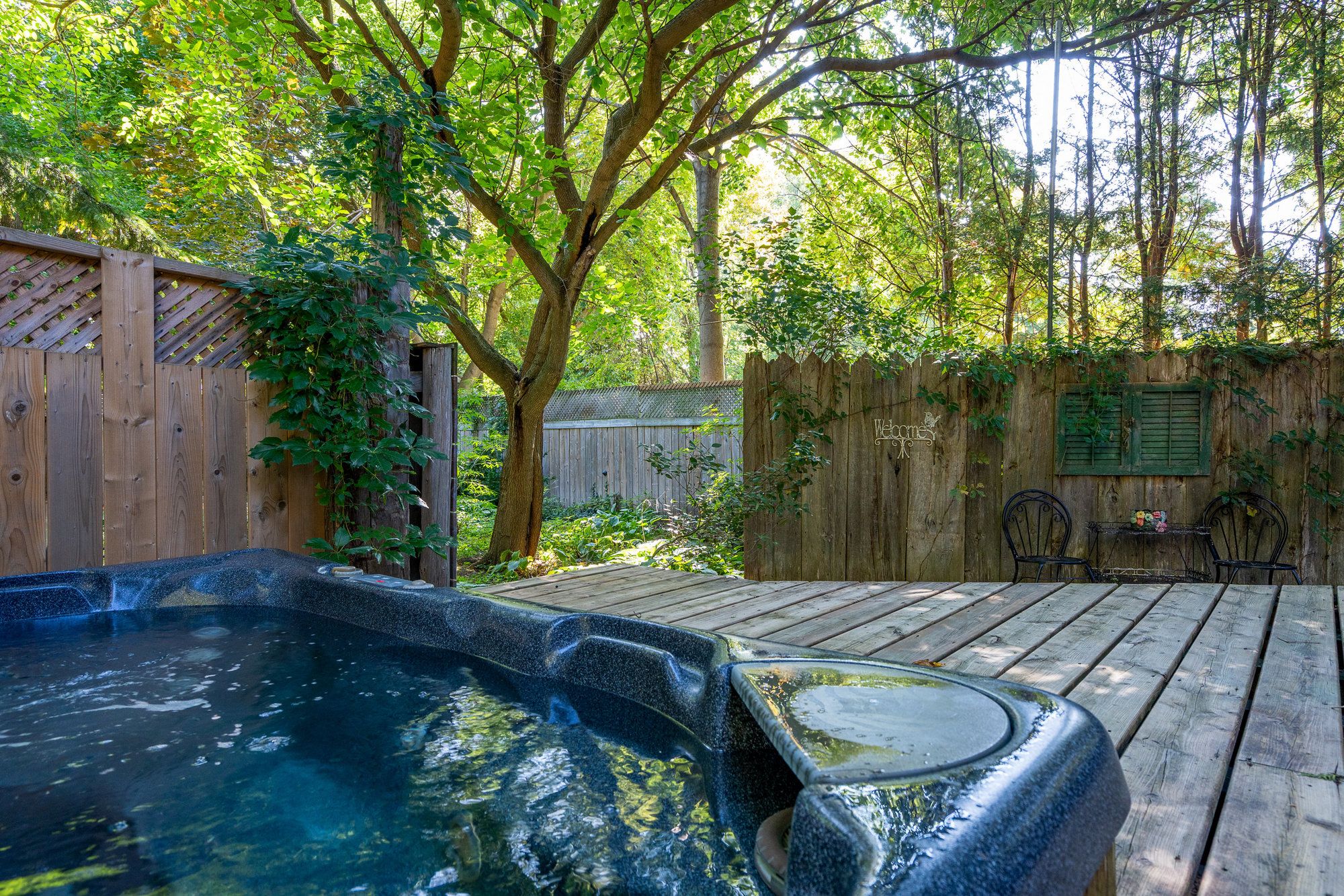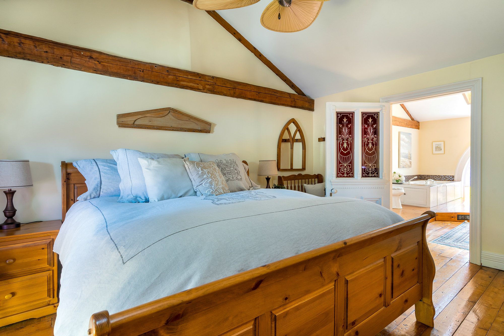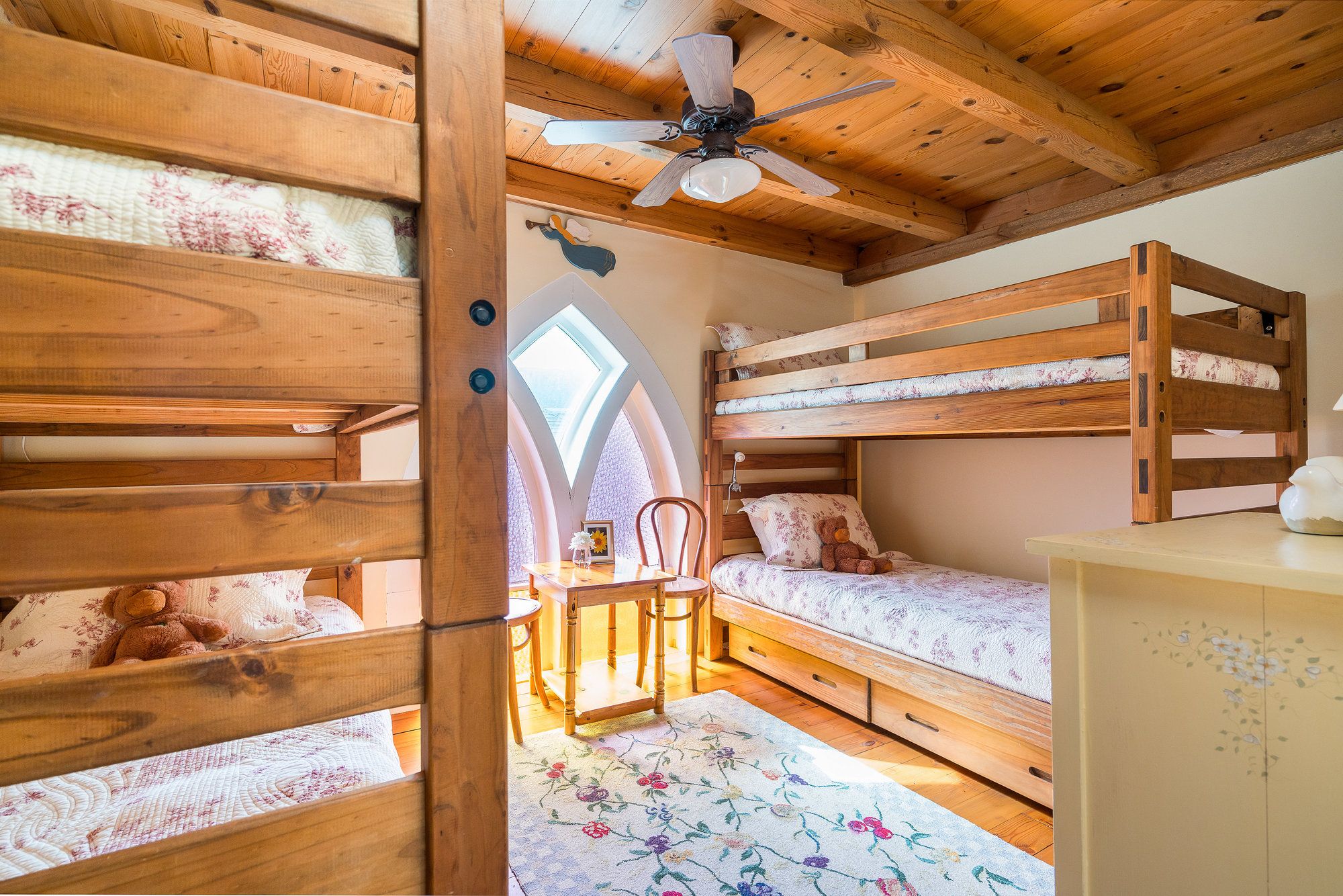 When you step inside this unique, renovated 1897 church, you can't help but imagine the fabulous holidays your family and friends would enjoy here. On the main street of the charming village of nottawa, this is a home meant for gathering. This rare opportunity is absolutely full of thoughtful touches and decor lavished on it by its current owners, and all those touches are included in the sale. Furnishings, linens, rugs, art, lamps, antiques, even the dishes, all come with the house so moving in will be easy. Your family will enjoy the restful and restorative atmosphere of the main floor with the soft light of stained glass. The sprawling living space under post and beam cathedral ceilings has a chalet like feel. It features a primary seating area in front of a wood burning fireplace with a wonderful long and welcoming bar for entertaining. The bar itself was recovered from an old general store. An adjoining space houses another seating area in front of a gas fireplace and a large billiards table. The dining table seats 14 so no card tables will be necessary. Each space is wide open yet beautifully defined with a combination of historic details and new improvements. You will have room for all your guests in the five upstairs bedrooms, all stylishly decorated and all enjoying the comforting glow of stained glass windows. The main floor den has a pull out sofa bed and an ensuite bathroom for additional sleeping quarters. It is a home to wander in, explore, and bask in its warmth and coziness. Outside, a large backyard deck allows space for an oversized bbq and an enormous hot tub, all under a beautiful canopy of mature trees. Multiple sheds for storage and potting make maintenance easy -- and even the garden equipment is included.