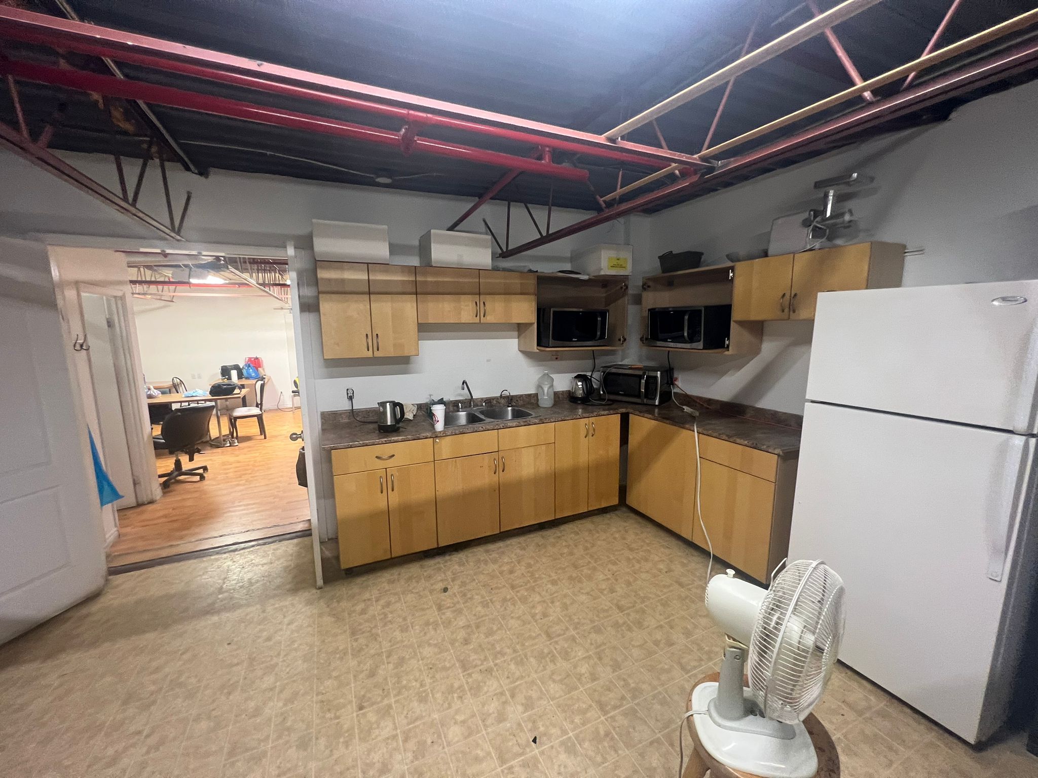 • Features office area, mezzanine, three washrooms, and kitchenette.