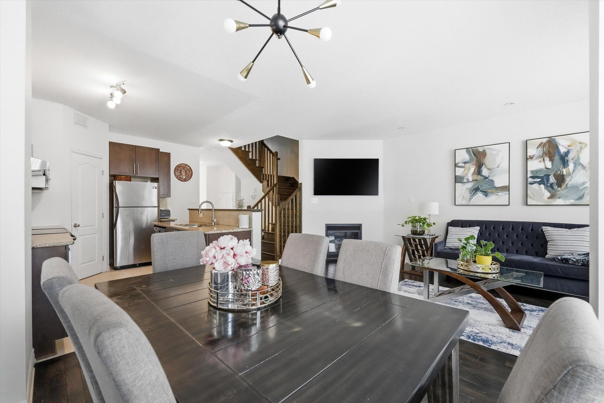 Welcome to 418 rochefort circle! This stunning 3-bedroom, 3-bathroom semi-detached with no front neighbours is the one you've been waiting for. Located on a quiet street just minutes from all amenities and within walking distance to parks, ponds, stores and bus stop, this home offers the perfect blend of comfort and convenience. Beautiful curb appeal with a stone façade welcomes you into the inviting foyer with large closet, inside access to the garage and a convenient powder room before entering the open-concept main floor featuring gleaming hardwood floors and 9 ft ceilings. The sun-filled living room showcases a cozy gas fireplace and large window bringing in plenty of natural light. The kitchen features rich cabinetry, granite countertops, tile flooring, stylish backsplash, a center island, stainless steel appliances and a walk-in pantry. The dedicated dining area overlooks both the kitchen and living room and is highlighted by gorgeous custom california shutters at the patio doors leading to the fully fenced backyard with concrete sitting area and ample green space for kids and pets. Up the beautiful upgraded wooden staircase you'll find the sleeping quarters with a generous primary bedroom featuring a walk-in closet and 3-piece ensuite, along with two additional bedrooms, a full bathroom and convenient second-floor laundry. The finished basement offers a versatile family room, perfect for a recreation space or playroom, along with plenty of storage.