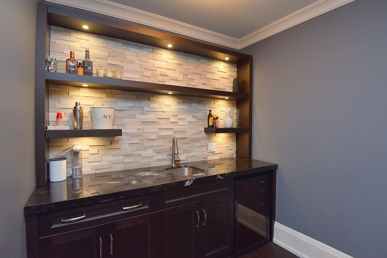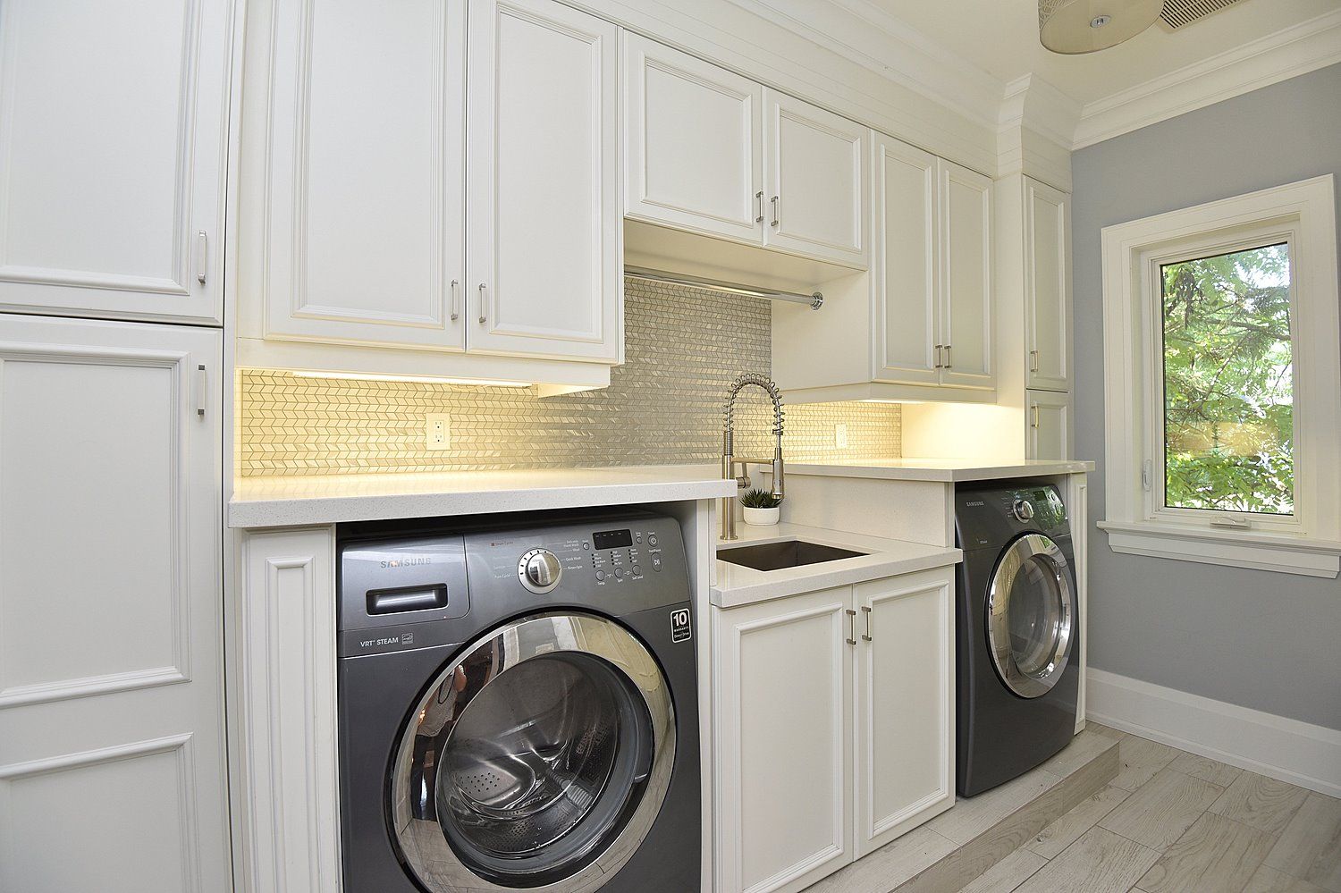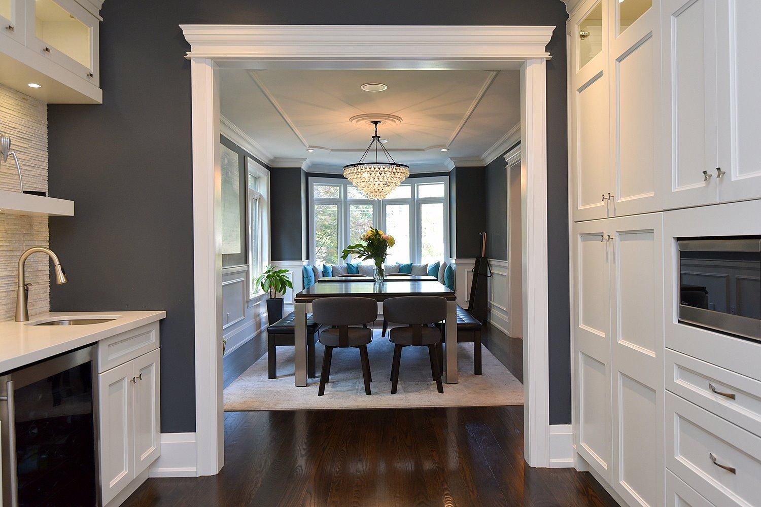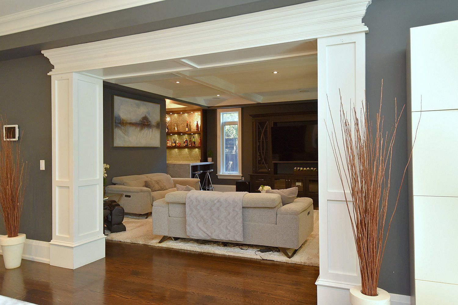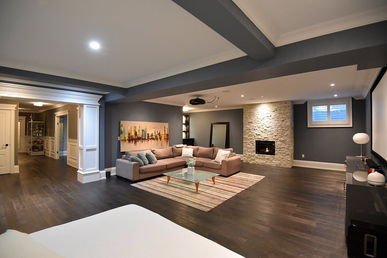 • Fully finished lower level includes a home theater, gym, and climate-controlled wine cellar.