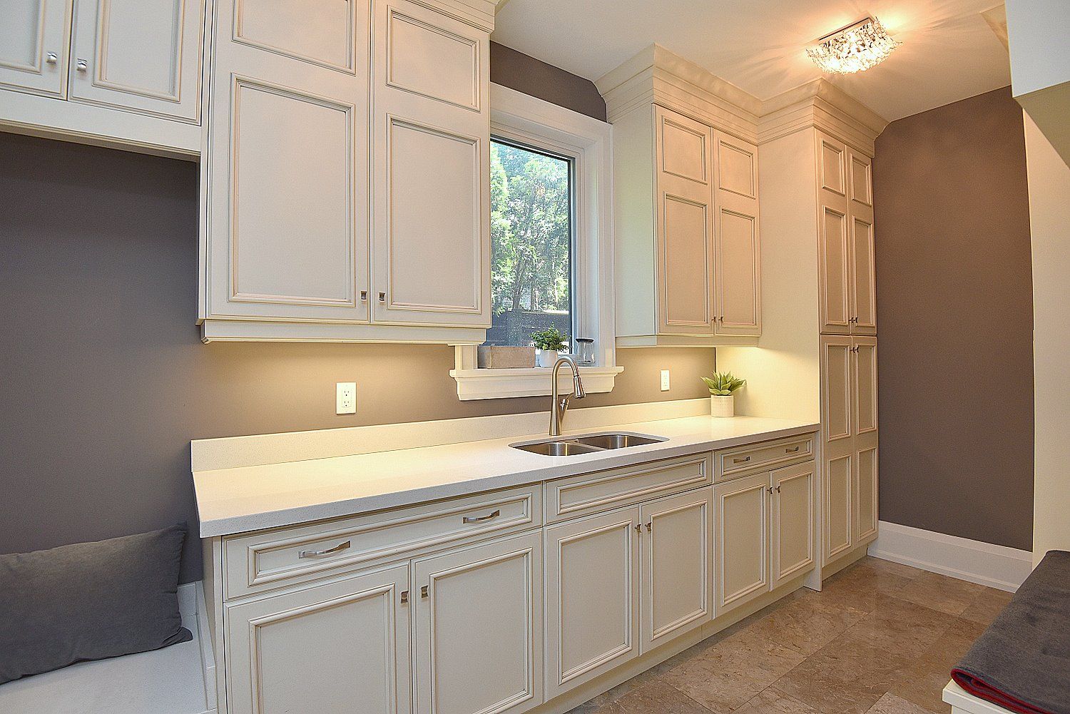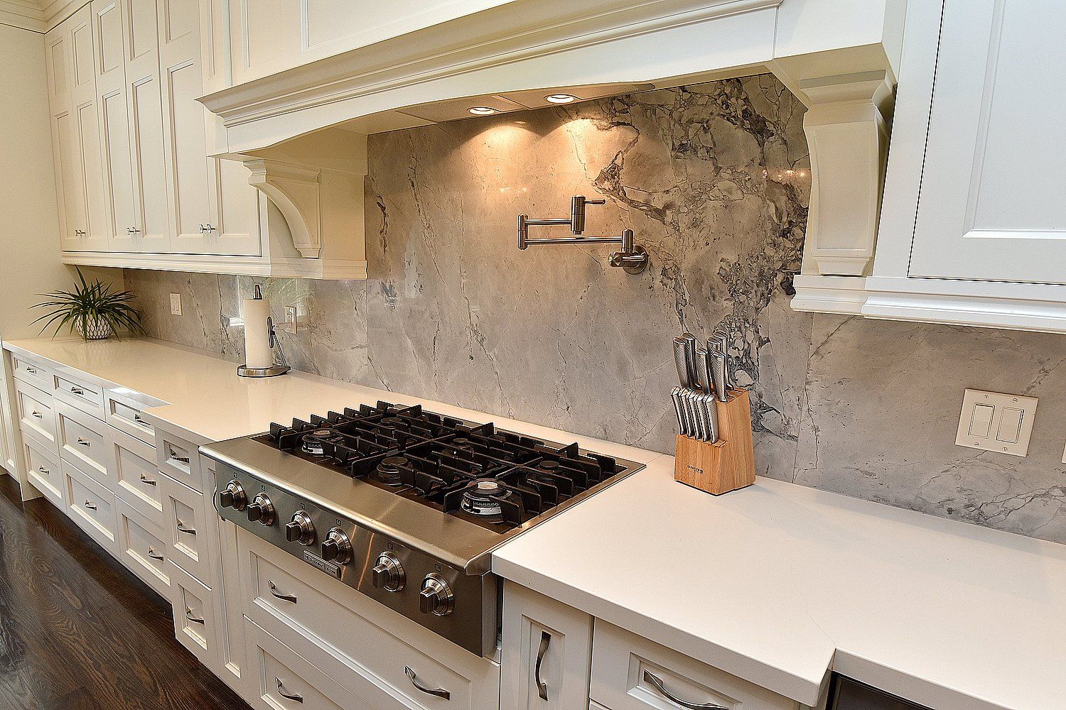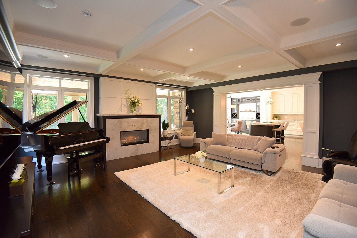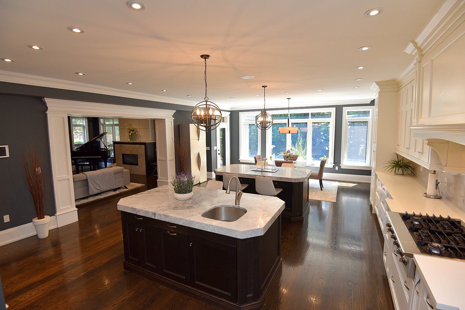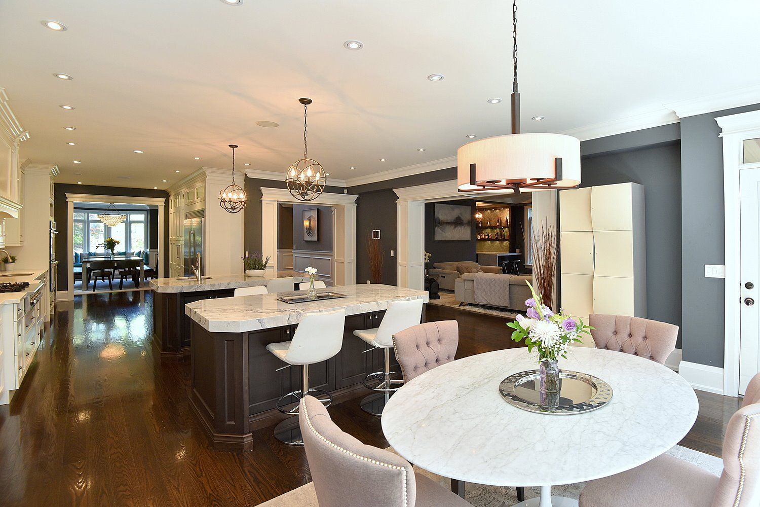 • Chef's kitchen with high-end appliances and seating for nine at two oversized islands.