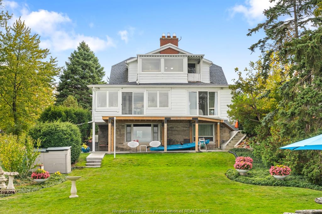 Iconic waterfront living on riverside drive’s prestigious “golden mile,” offering a rare opportunity with income potential and truly breathtaking views. This unique property is currently set up as a duplex with additional in-law suite potential, making it ideal for multi-generational living or investors. The lower level offers a self-contained 1 bedroom, 1 bathroom suite with kitchen, formal dining, and a family room with fireplace. The main and lower units share a lower-level laundry area, having separate access to maintain privacy for each space. The main floor has been meticulously renovated and features 2 bedrooms and 2 bathrooms, including a private 2-piece ensuite, along with a stunning kitchen, dining area, living room with fireplace, and beautifully finished living spaces overlooking the river. The upper level offers a separate entrance to a 1 bedroom, 1 bathroom suite complete with its own laundry, kitchen with breakfast nook, spacious living and dining areas, sunroom, and balcony. Each level captures incredible, unobstructed views of the detroit river. Enjoy passing ships, vibrant sunsets and sunrises, and seasonal views of belle isle. Additional features include access to a private park adjacent to the property and a unique historic safe that adds character and charm. A truly special property offering lifestyle, flexibility, and long-term value in one of windsor’s most sought-after waterfront locations.