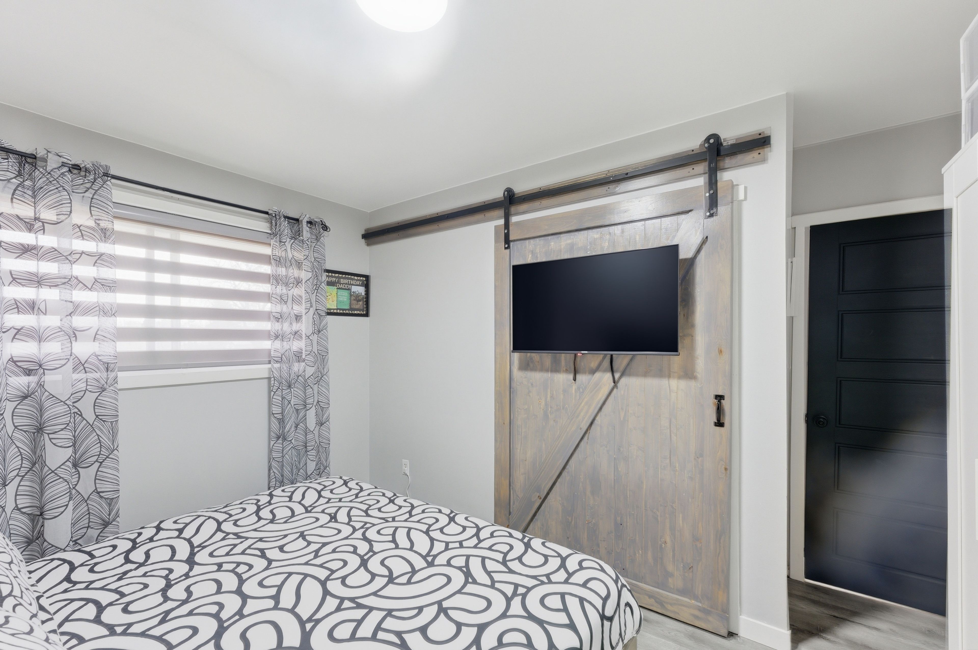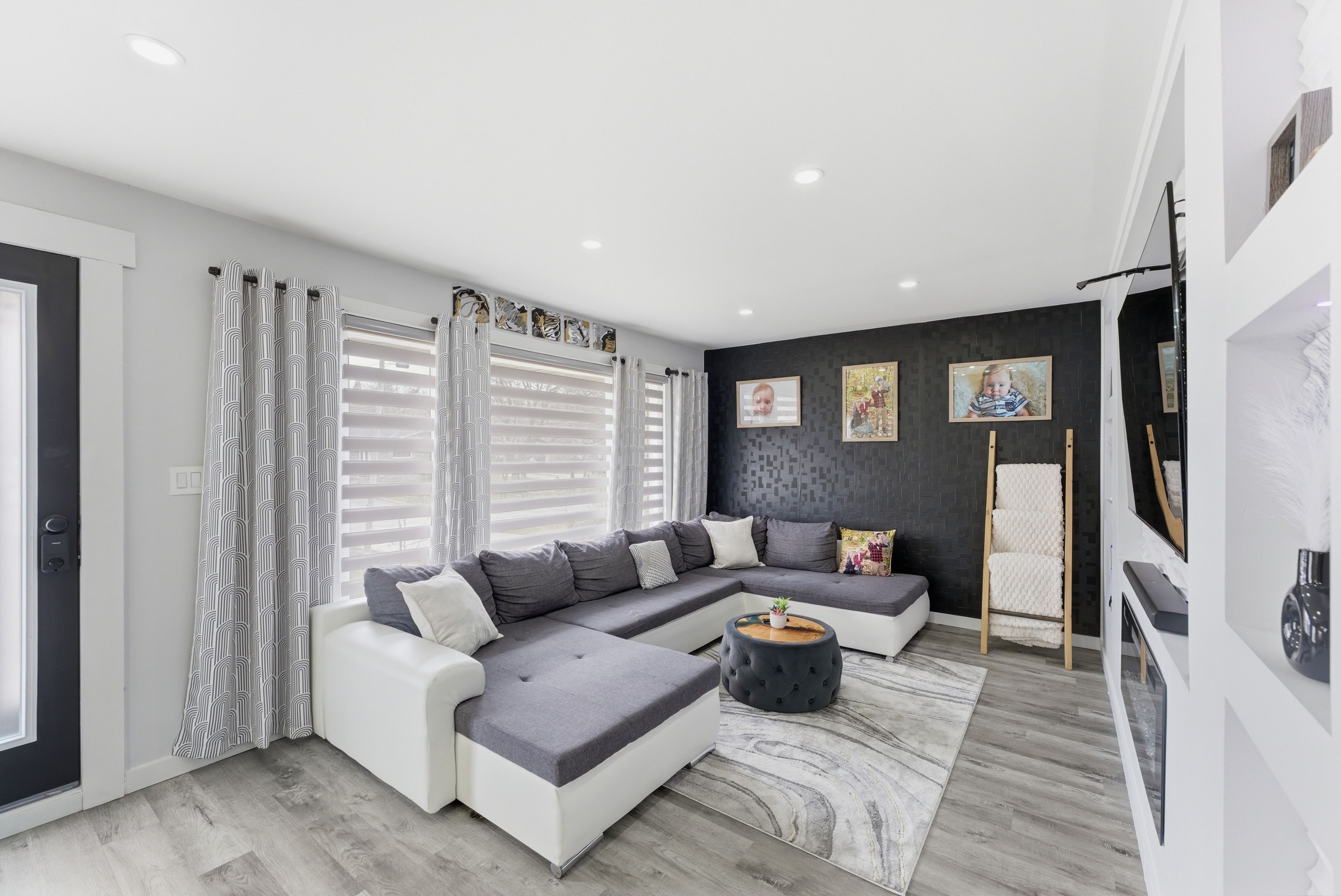 Welcome to 4183 glenwood - a stylishly updated 3+1 bedroom, 2 bathroom bungalow with absolutely nothing left to do but move in. Renovated top to bottom with modern finishes throughout, this home has roughly 2000 sqft of living space and offers a bright open-concept layout where the kitchen flows seamlessly into the dining and living space, perfect for both everyday living and entertaining. The living room is highlighted by a gorgeous custom media wall and stunning feature walls that add warmth, character, and a high-end designer feel throughout the home. Downstairs, the fully finished basement offers a separate entrance and a well-appointed in-law suite - with second kitchen, bedroom and 3 pc bath, making it ideal for extended family or potential additional income - along with a cozy wood-burning stove that adds charm and comfort. The oversized attached 1. 5 car garage provides excellent storage and workspace, complete with a built-in workbench. Step outside to a covered patio overlooking a generous pool-shaped lot, complete with garden beds and a large shed, offering plenty of space to design your dream backyard oasis. Located just down the street from parks, schools in a quiet, family-friendly neighbourhood and close to all major amenities, this home truly checks all the boxes and is absolutely worth a visit!