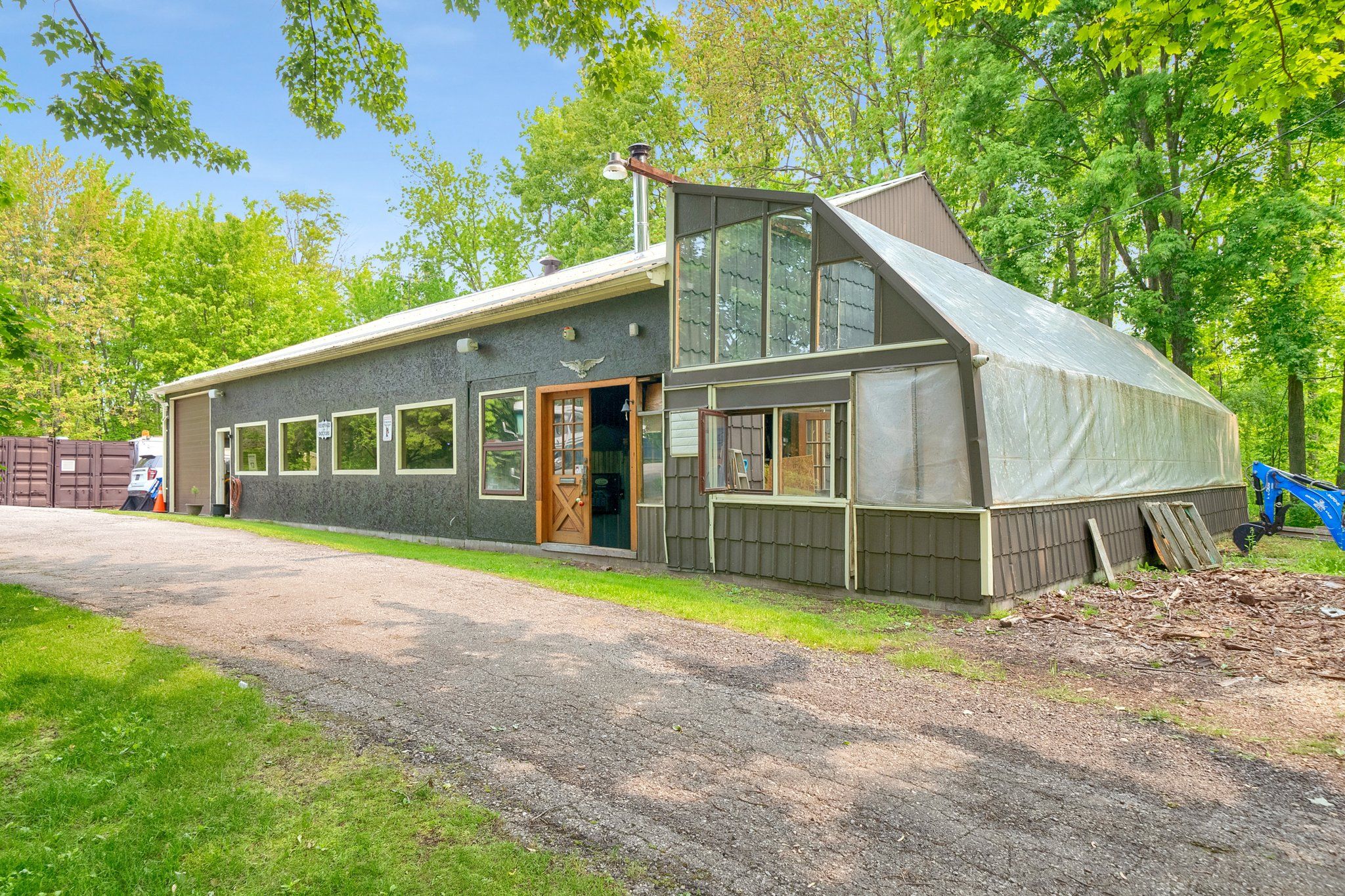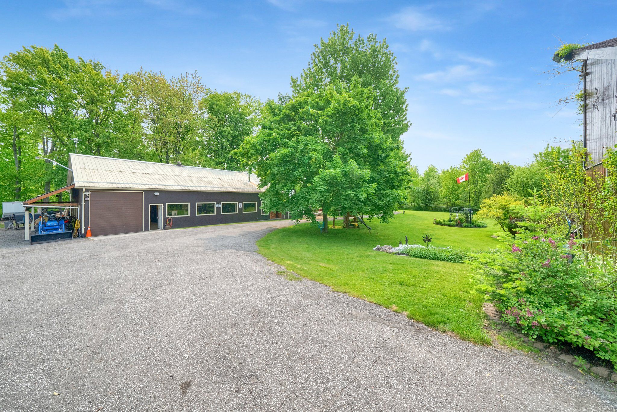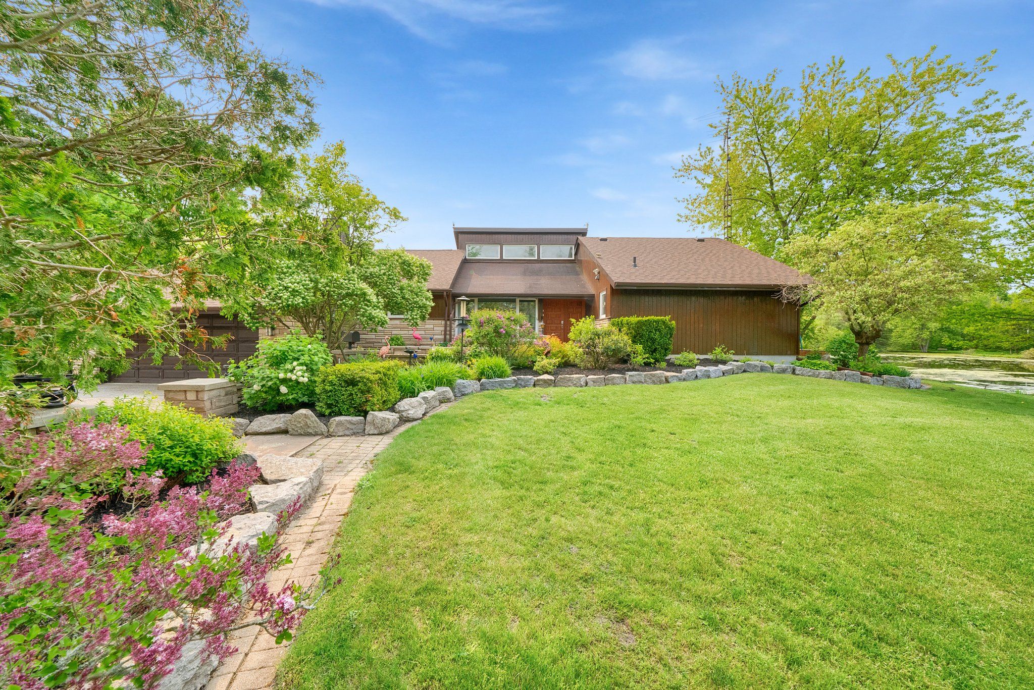 Please watch virtual tour! Private 22-acre estate with architecturally striking viceroy home and commercial-caliber shop. Perfect quiet country location yet only minutes to 401 and 407. Set well back from the road at the end of a long private drive, this stunning viceroy bungalow offers approximately 3,500 sq ft of bright, vaulted living space. A spectacular 2-acre spring-fed pond, complete with its own island, creates a truly idyllic setting. The spacious primary suite features a private ensuite and walkout to a deck overlooking the water. Vaulted ceilings, skylights, and expansive windows flood the home with natural light. Strikingly impressive heated porcelain floors run through the foyer, hallway, kitchen, and dining areas. The kitchen is equipped with high-end appliances including a jenn-air downdraft cooktop. Main floor laundry adds convenience. Step out to a huge multi-level deck with tiki bar and integrated heated pool, designed for entertaining and summer relaxation. The bright walkout lower level offers additional living space, workshop area, and excellent in-law suite potential. Geo-thermal heating and cooling provide efficient year-round comfort. Strong drilled well with uv system. High and dry construction with no sump pump required. Massive 40' x 50' heated shop featuring 15' ceilings, vehicle hoist, 1,000 sq ft mezzanine, two 10' overhead doors, and wood/propane furnace. Serviced with 100-amp electrical. Seller currently operates a 3-phase equipment setup. Attached 12' x 40' greenhouse. A rare opportunity combining private rural luxury with serious contractor or trades capability, all just 5 minutes to hwy 401 and under an hour to downtown toronto. Fibe high speed internet, work from paradise.